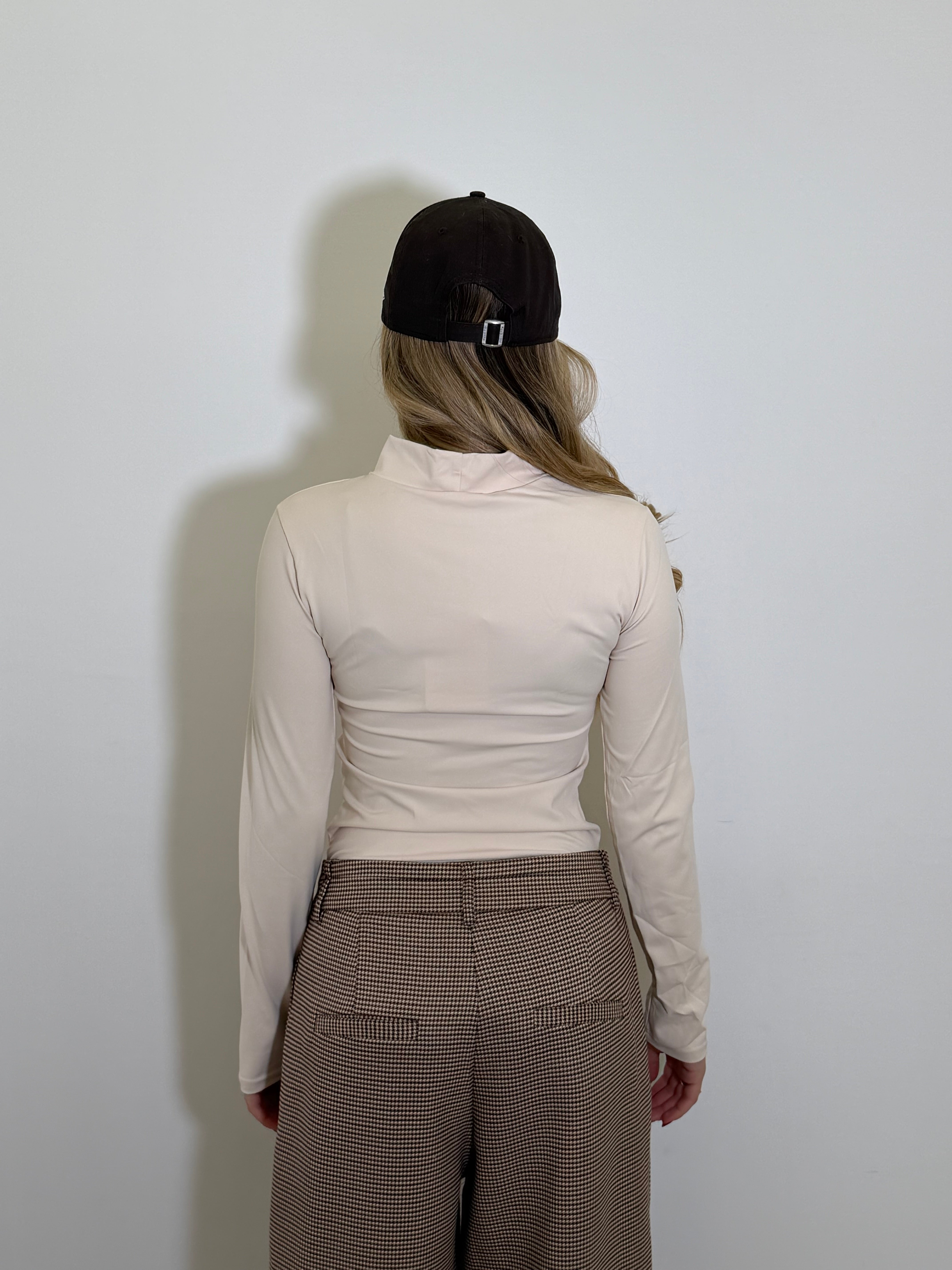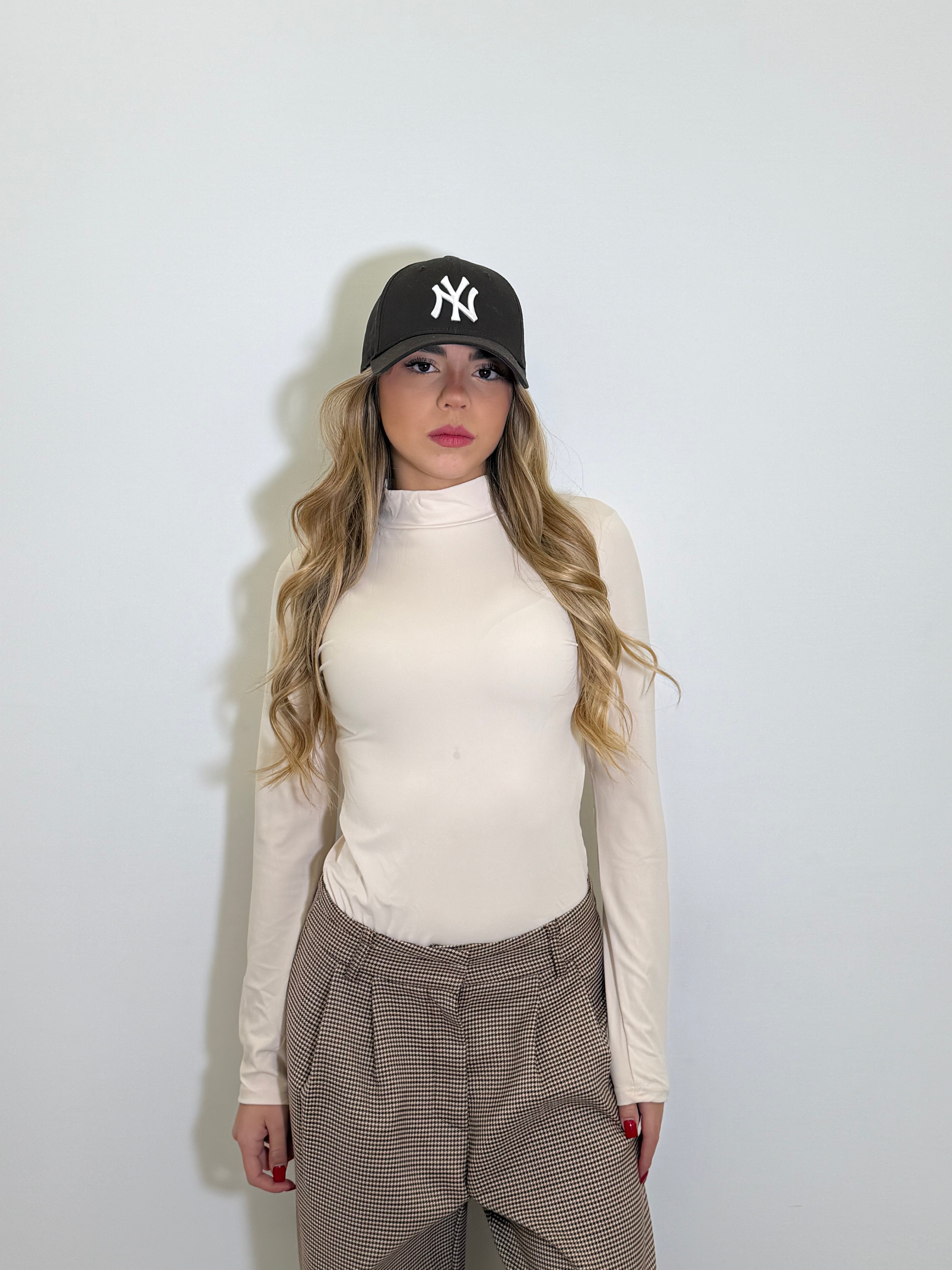 Body in lycra modellante, collo alto tessuto elastico.