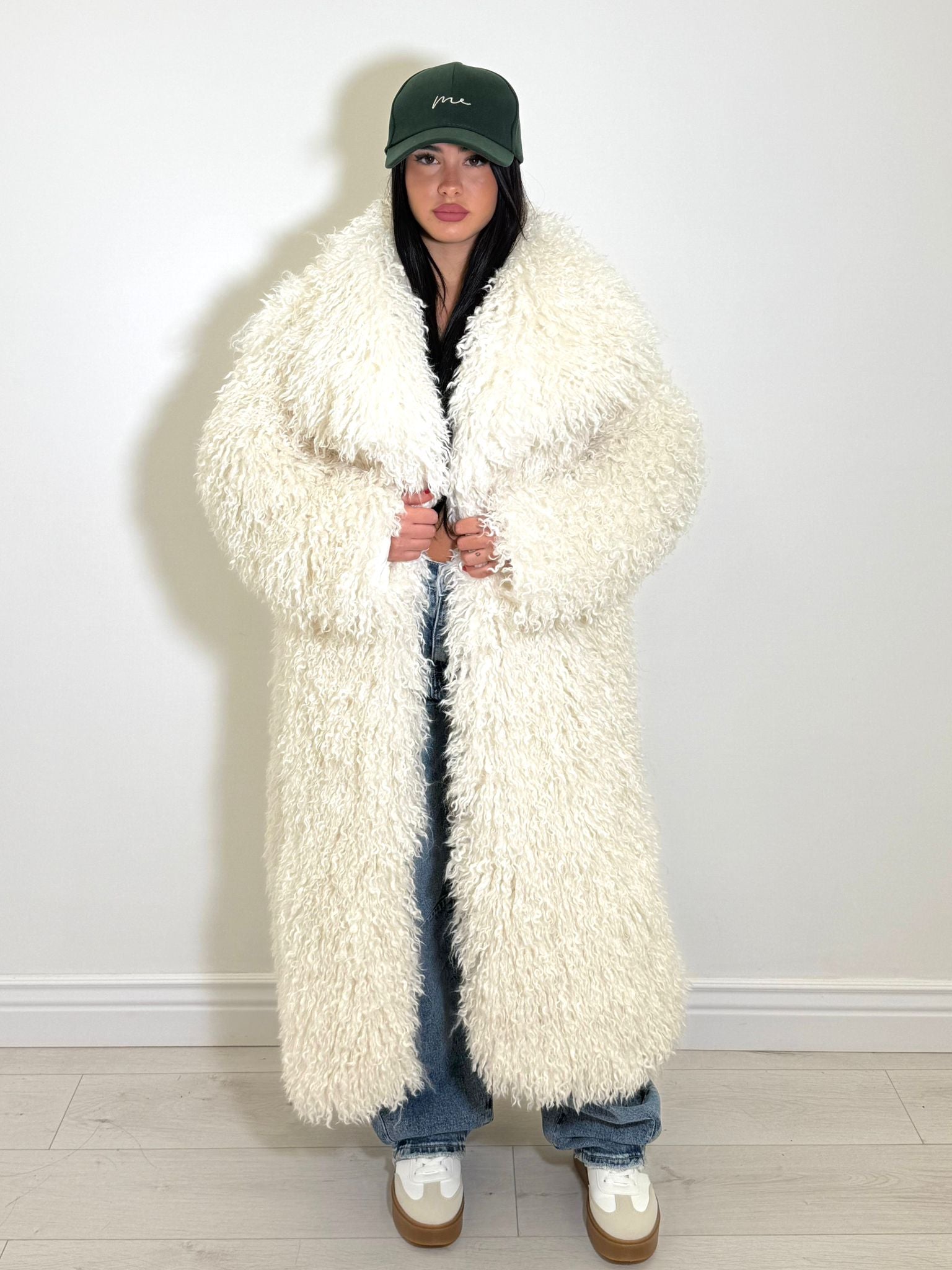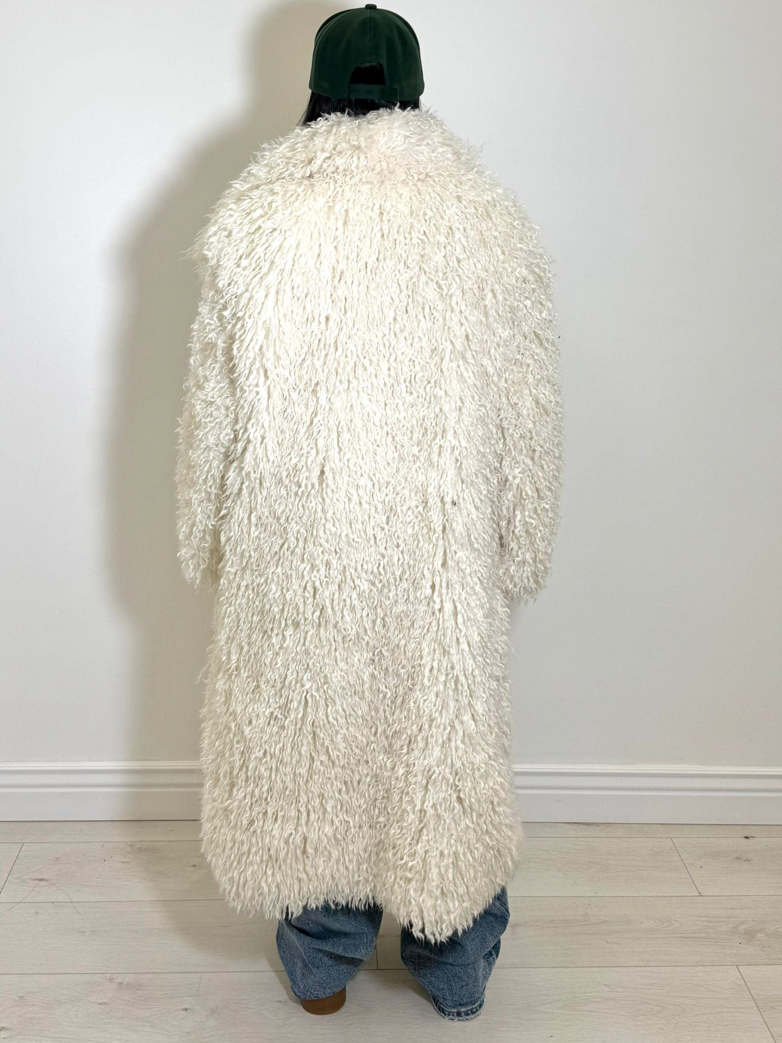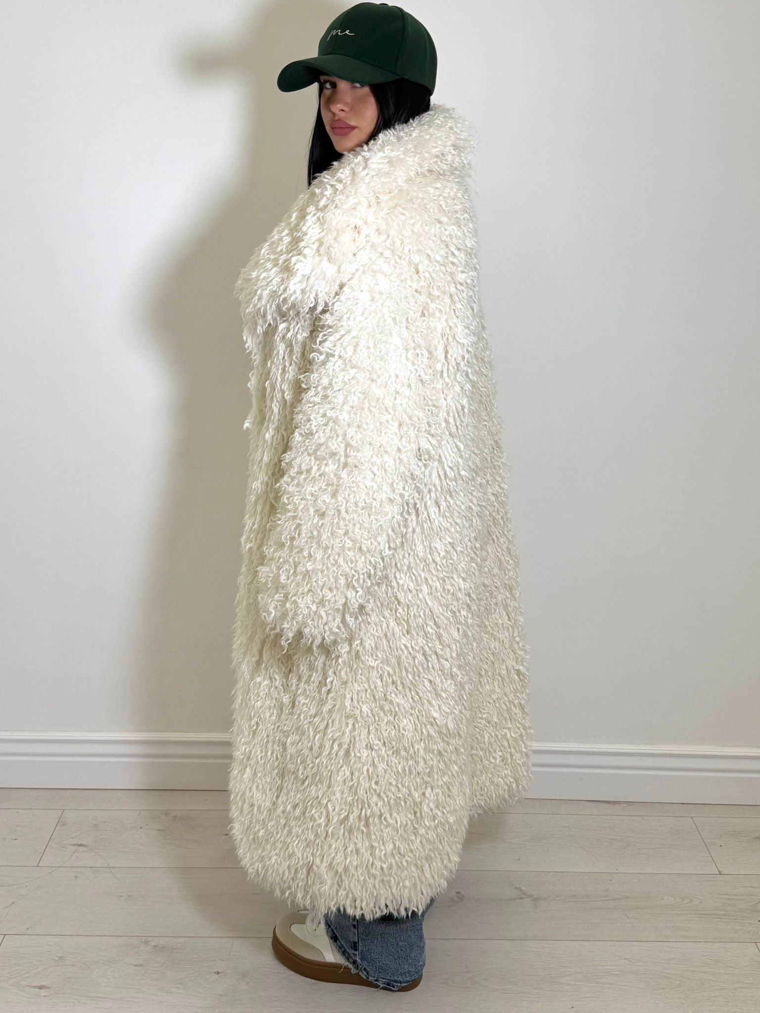 Eco- pelliccia lunga a maniche lunghe, effetto riccio e voluminoso, effetto shearling/agnellino sintetico.