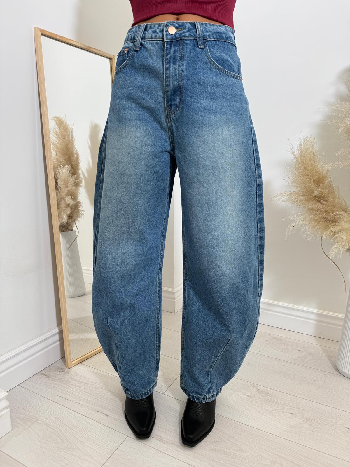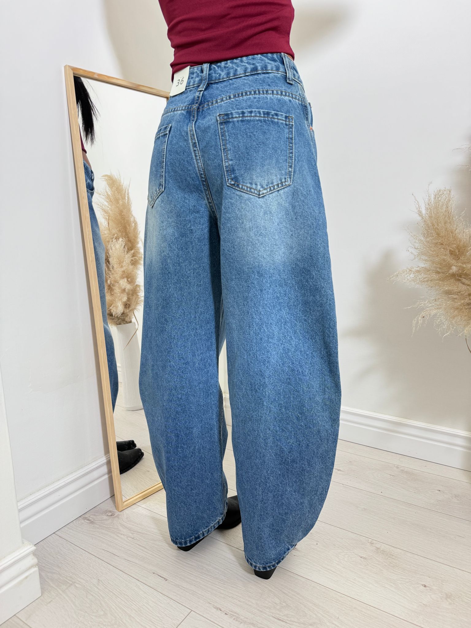 Jeans in tela fissa, modello balloon con elastico in vita.