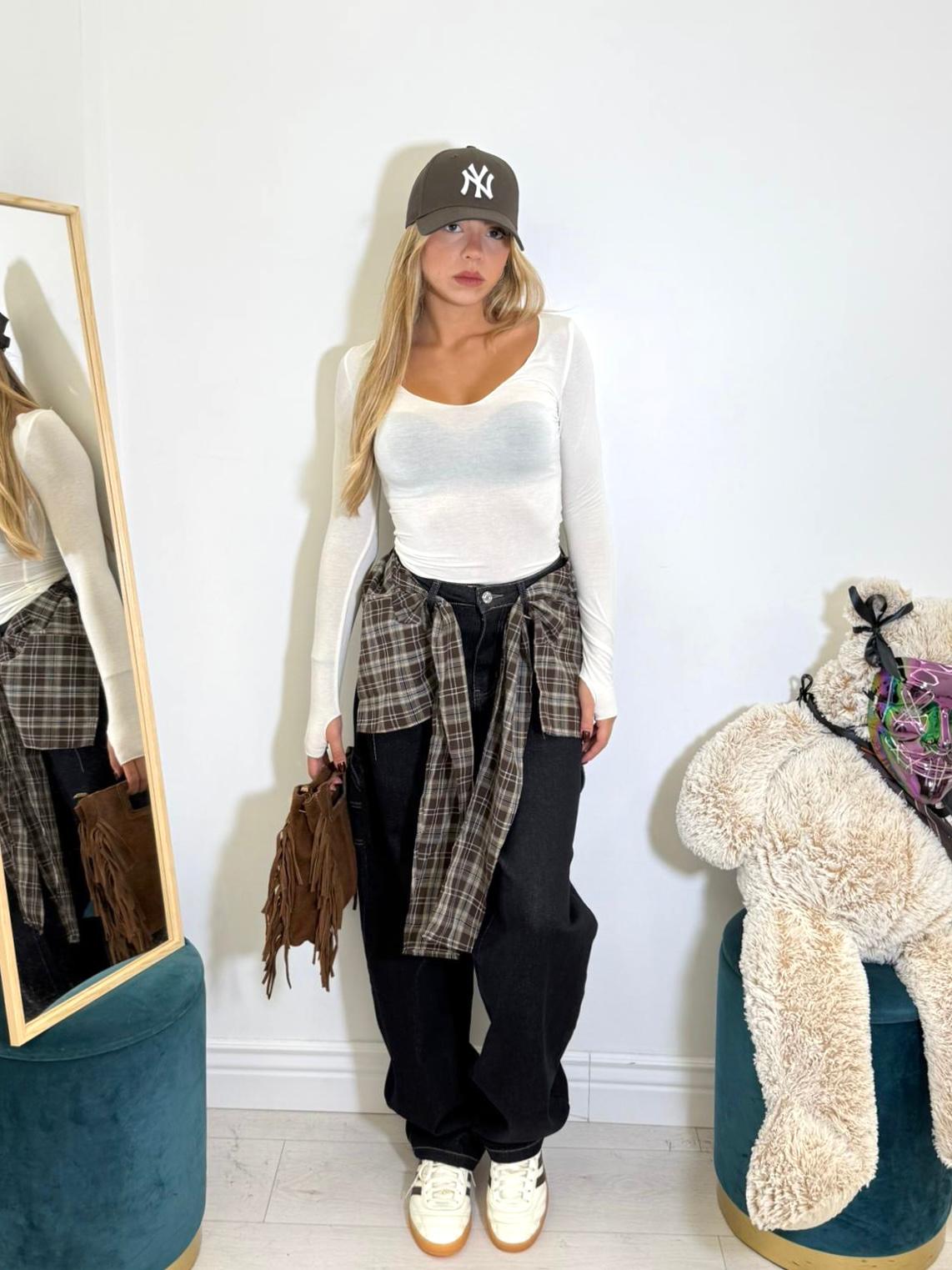 Jeans cargo in tela fissa con camicia abbinata nei passanti.
