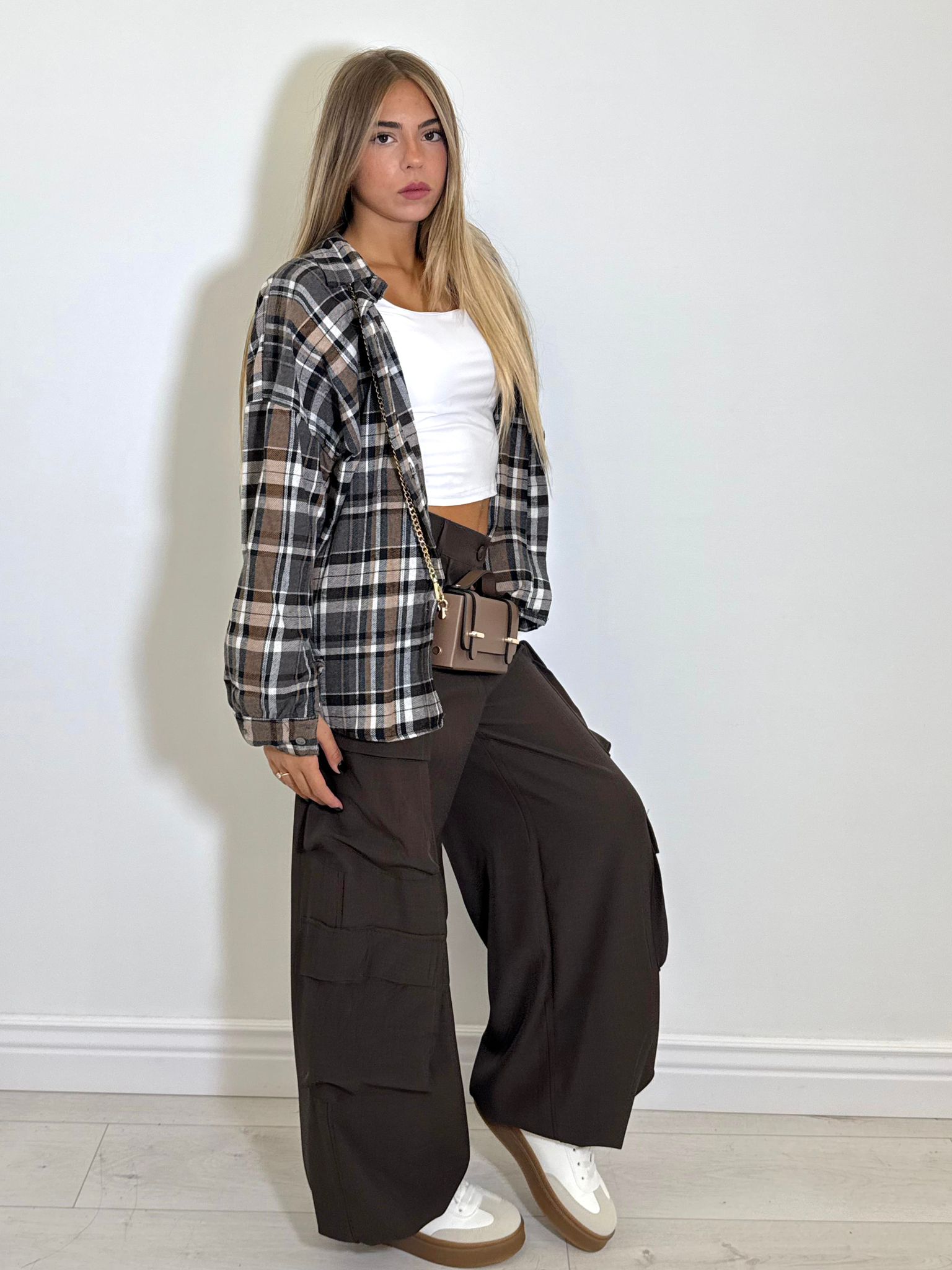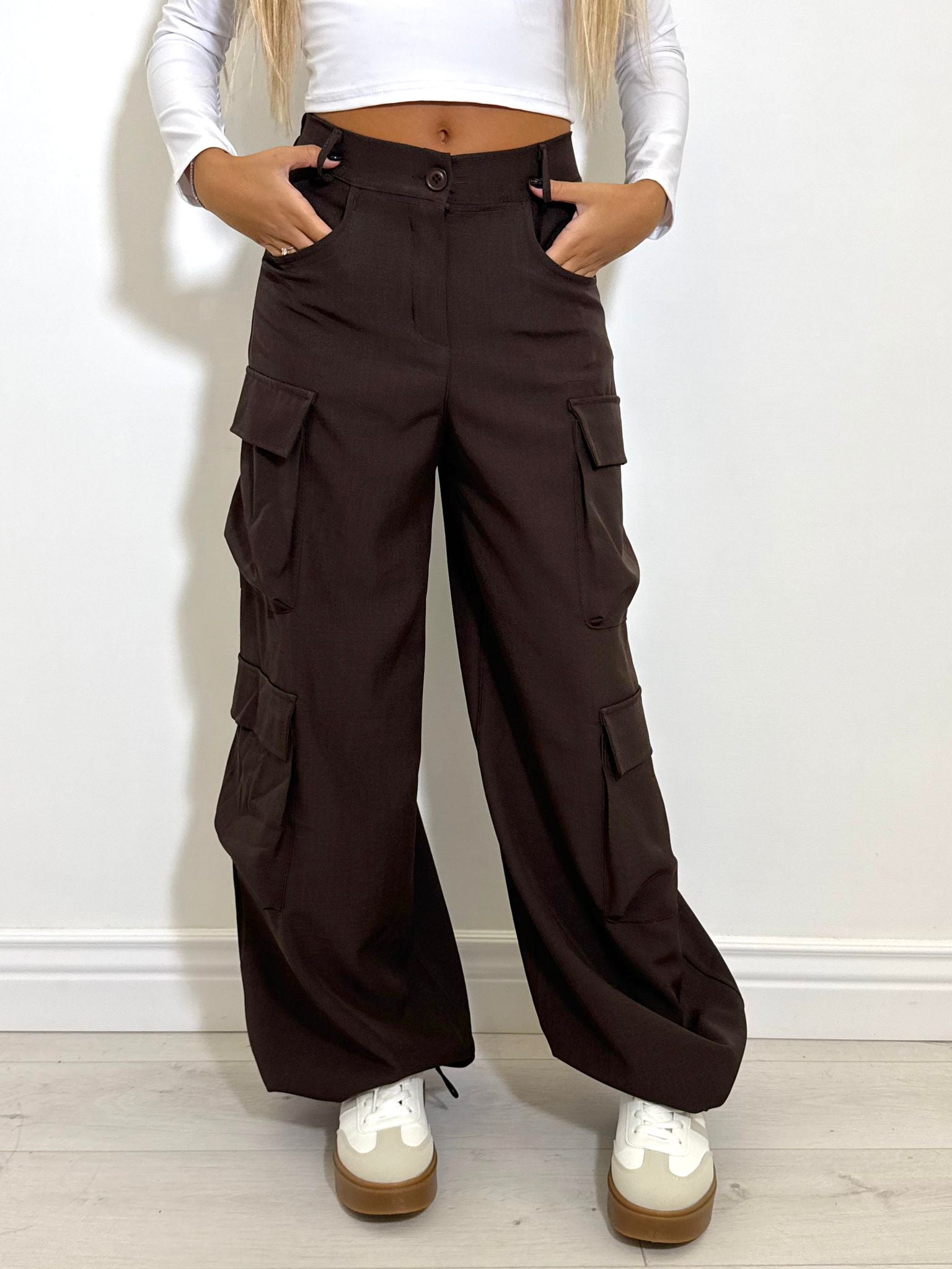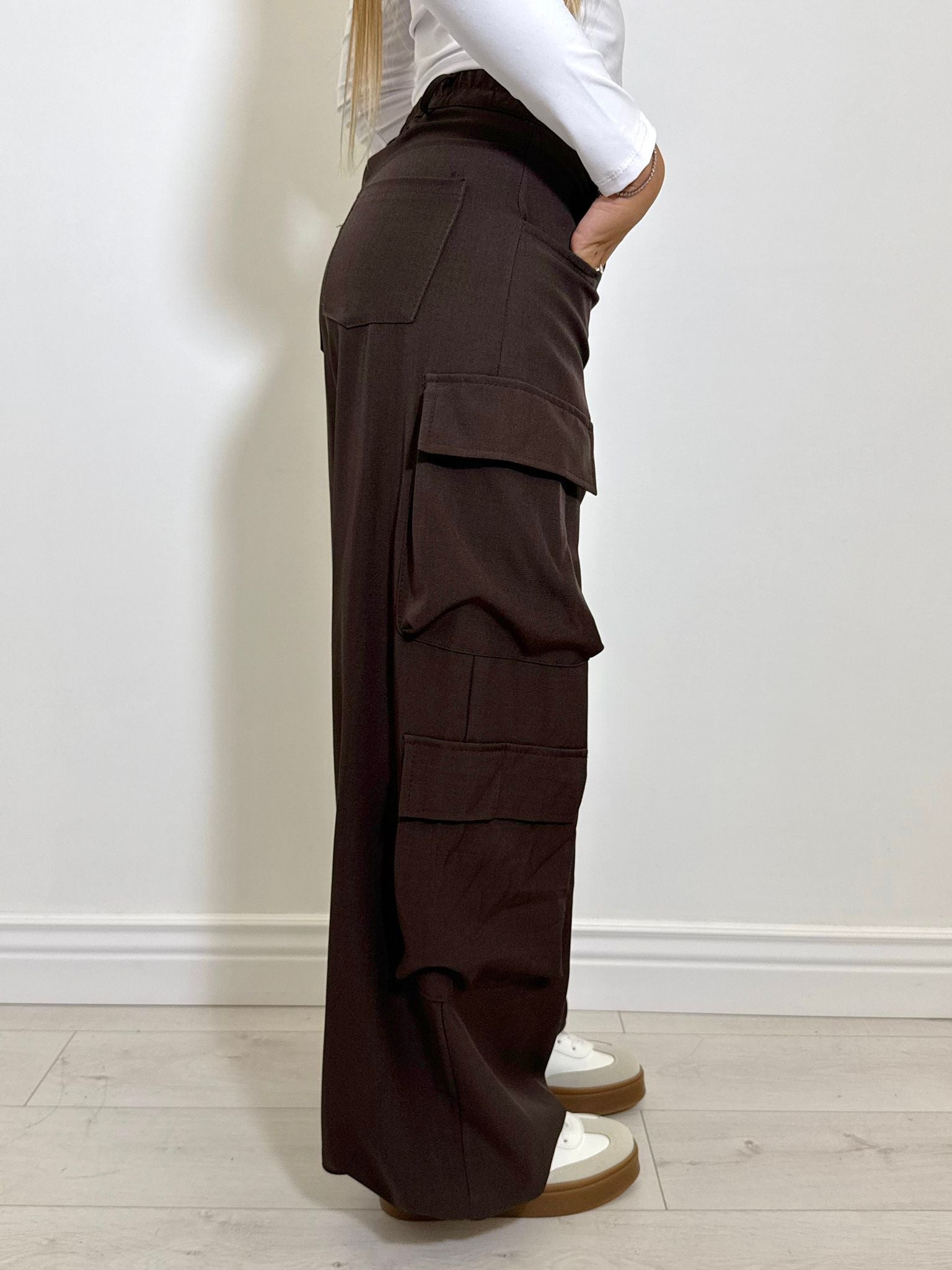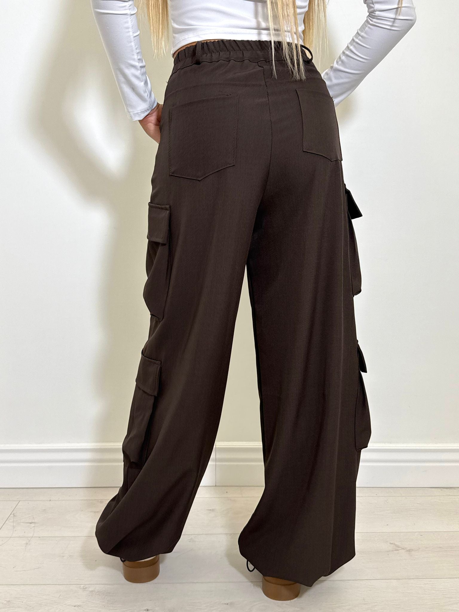 pantalone in cotone a palazzo, con elastico in vita e tasconi.