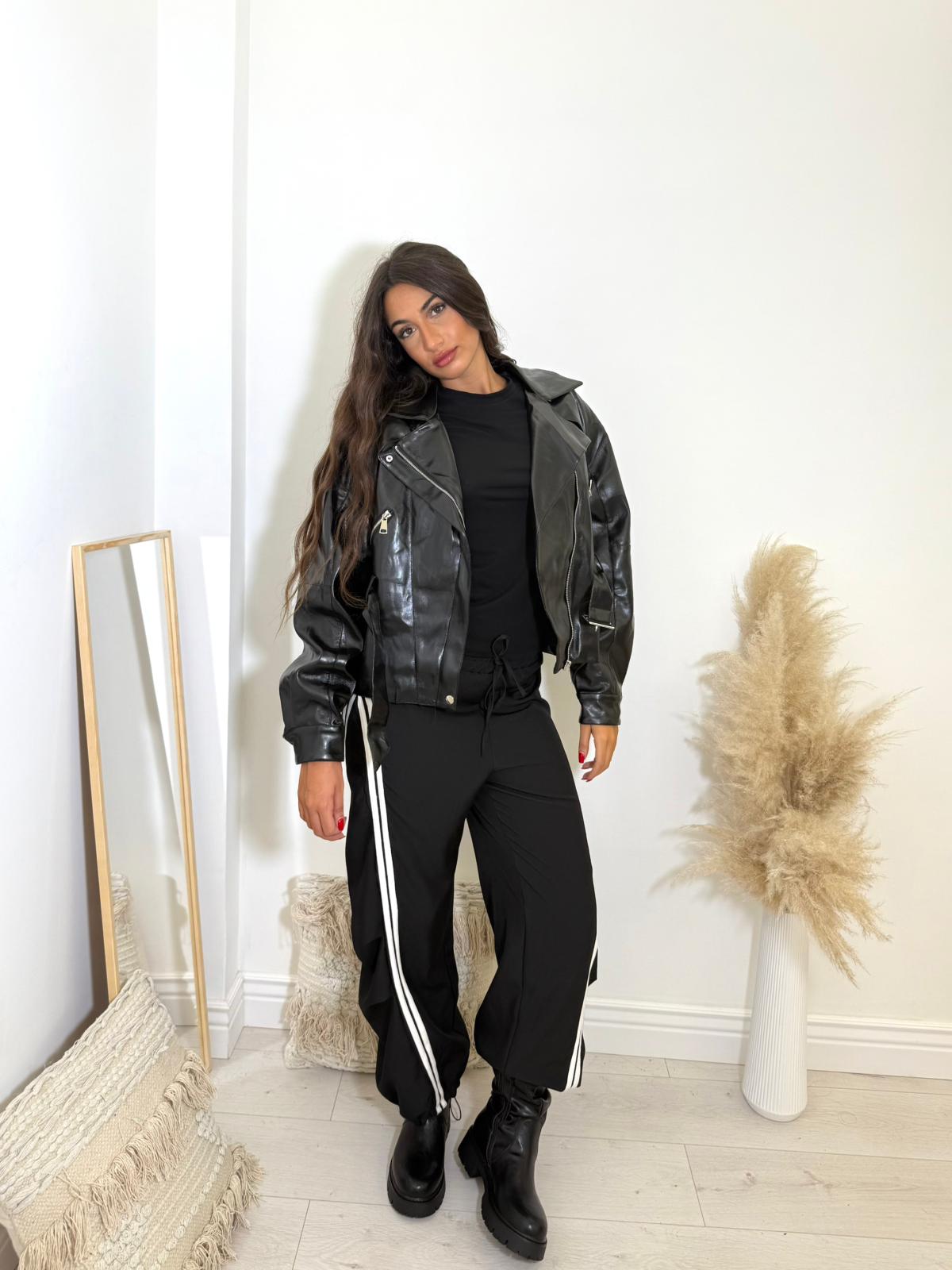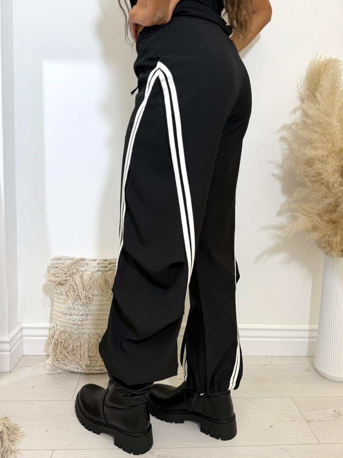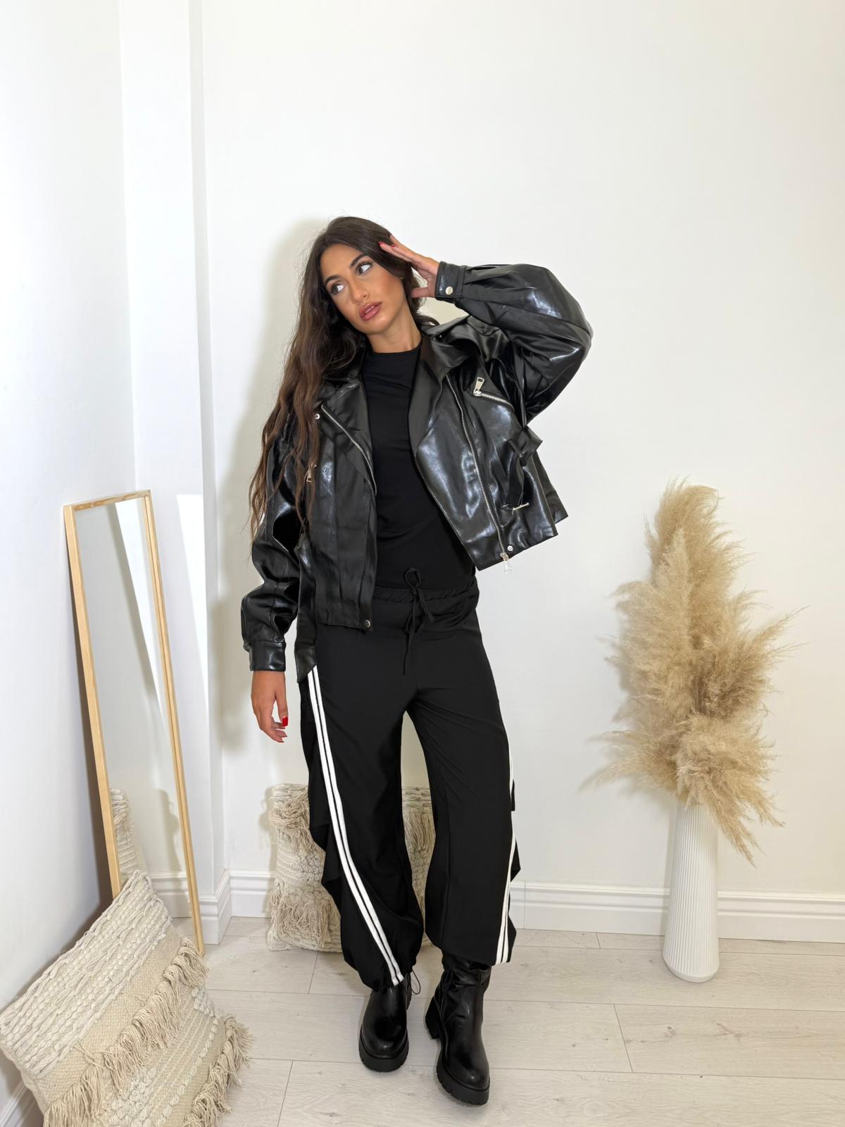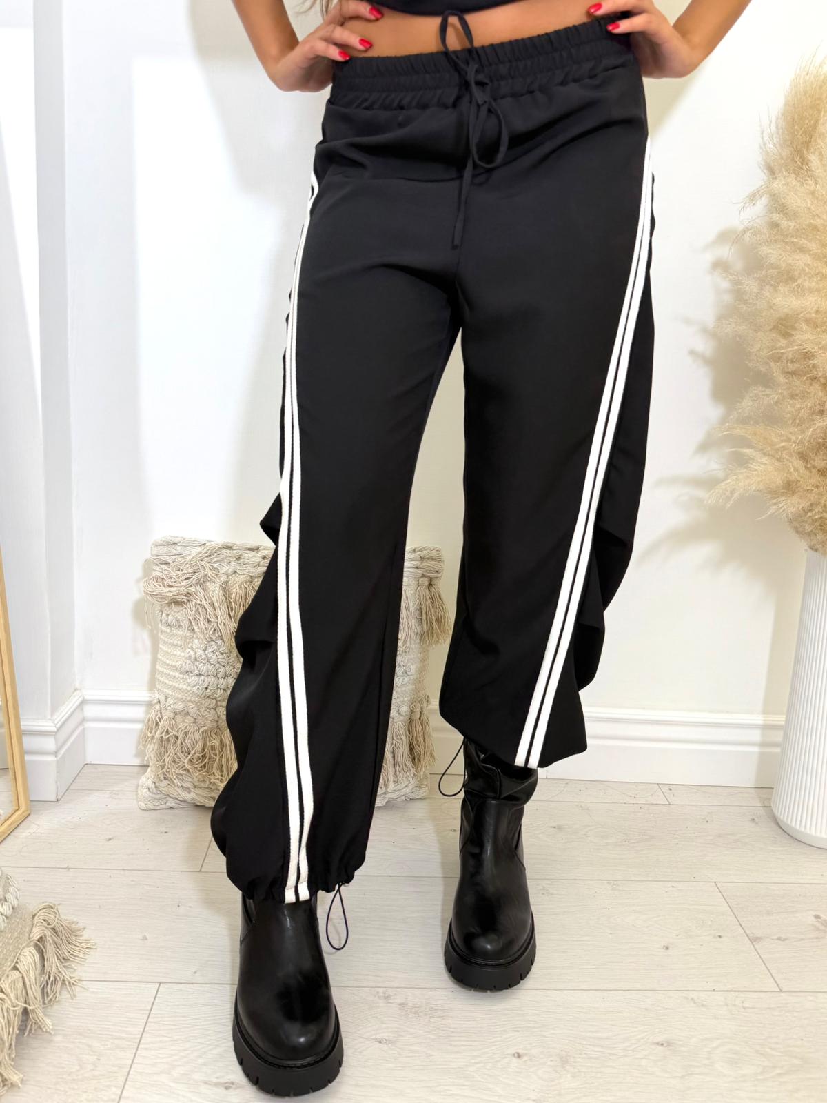 pantalone in cotone, modello adidas ,elastico in vita e alla caviglia.