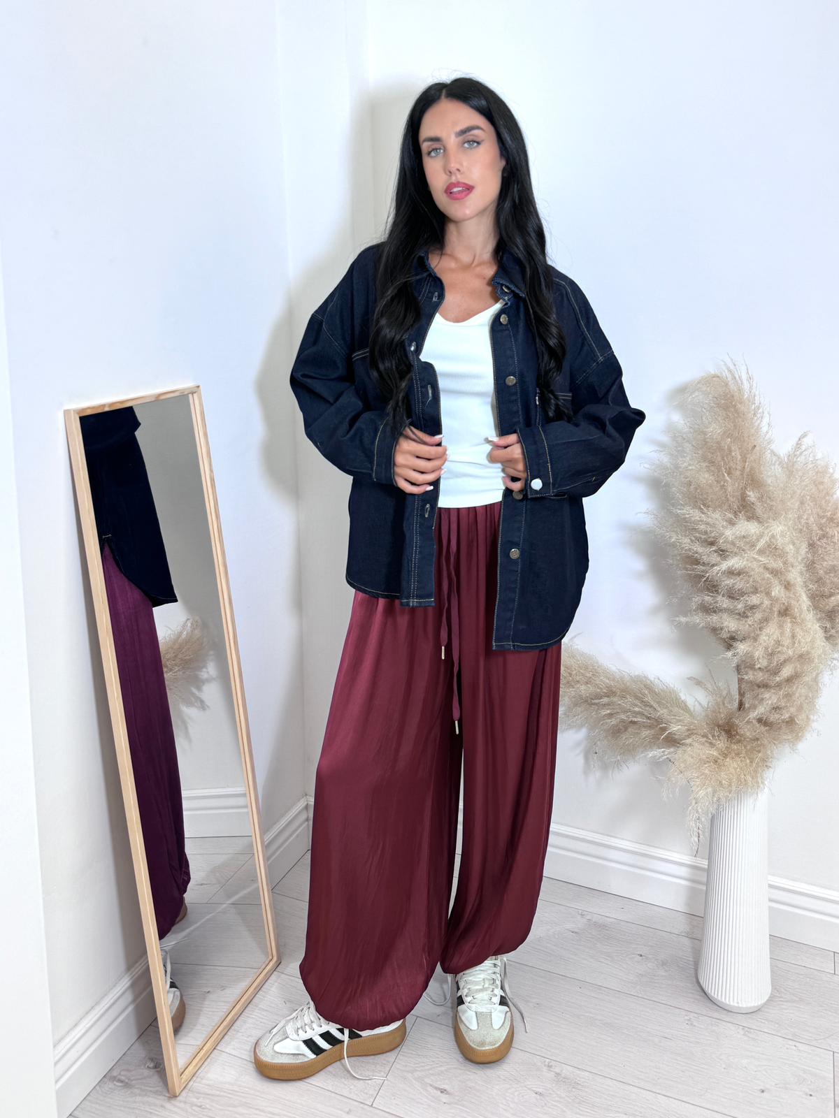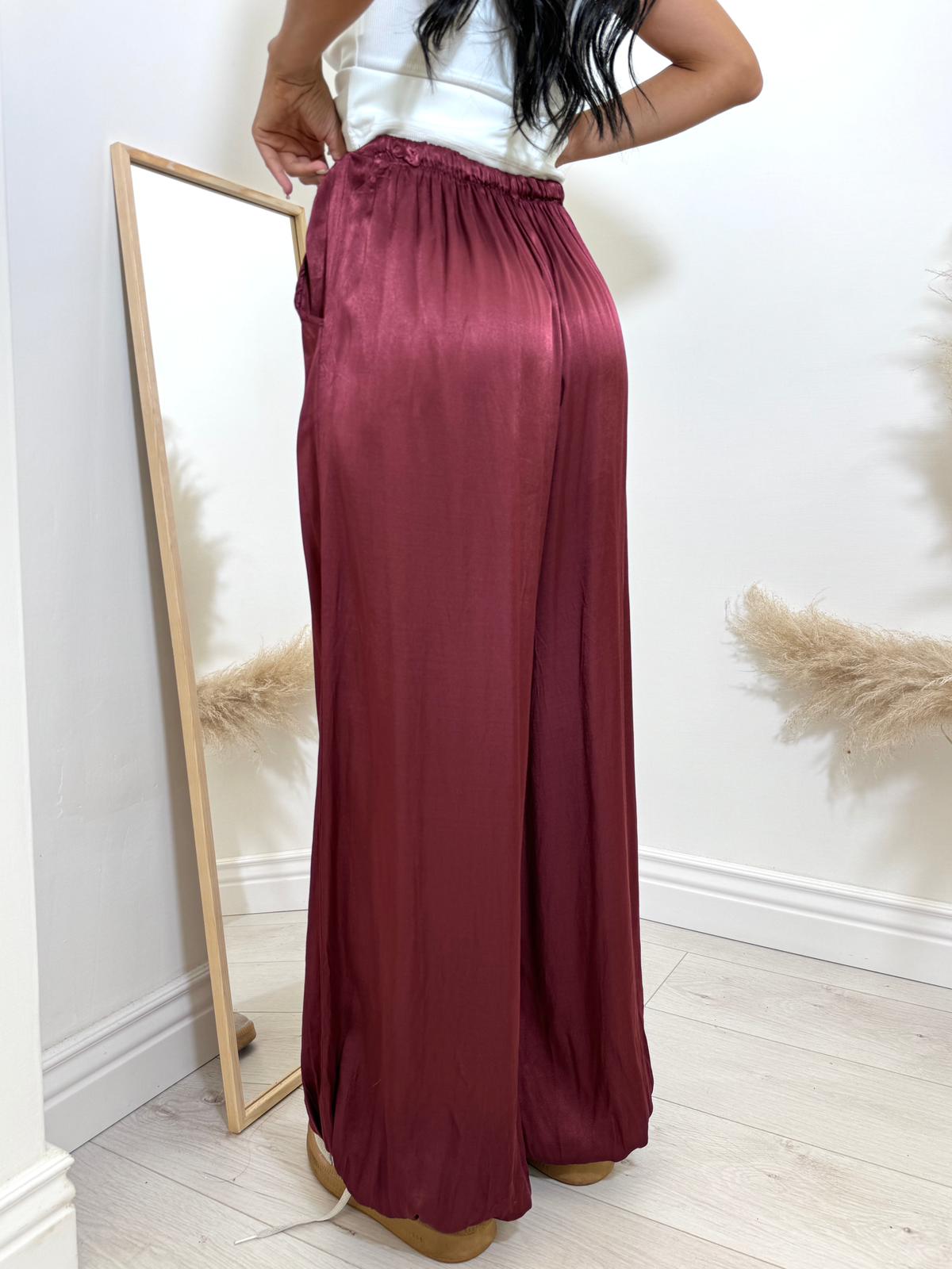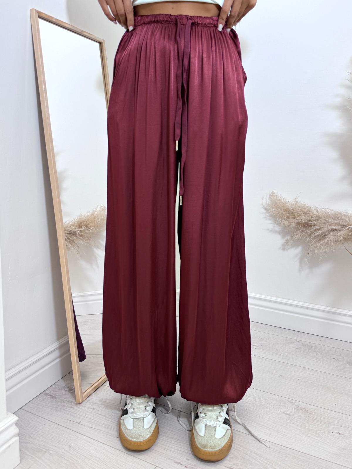 Pantalone in simil raso , con elastico in vita modello e anche sulle caviglie