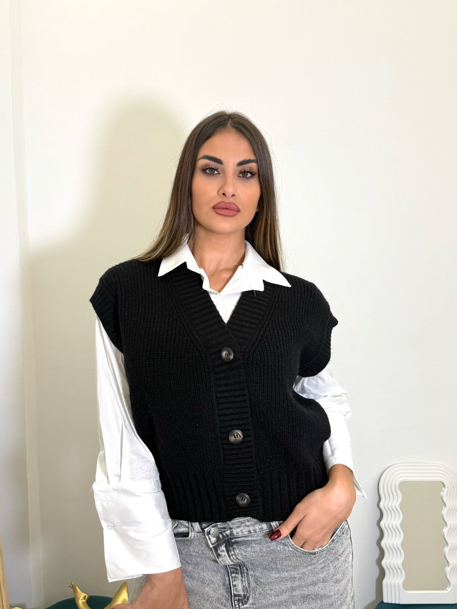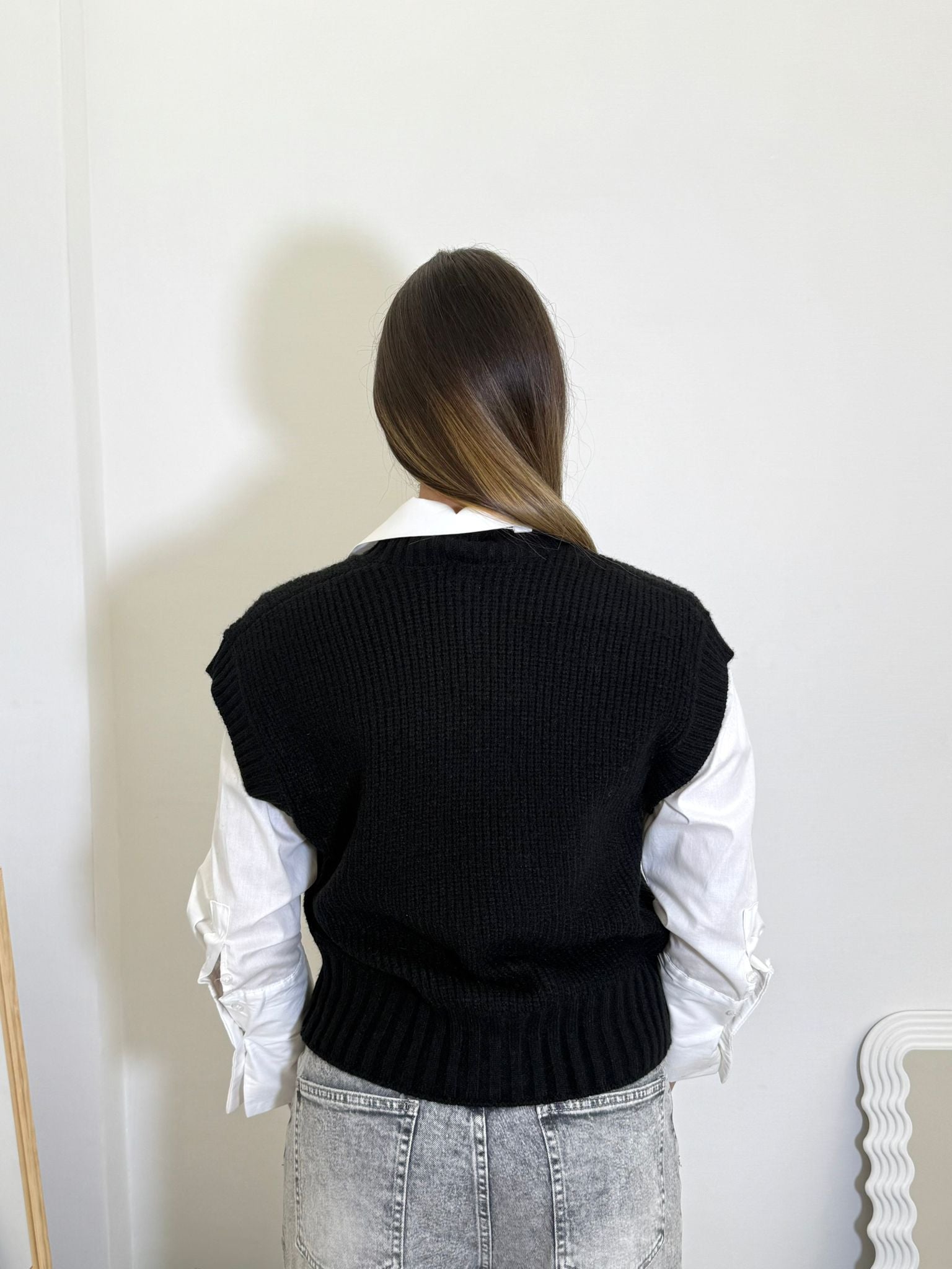 gilet in coste  con scollo a V, fondo e bordi a costine.