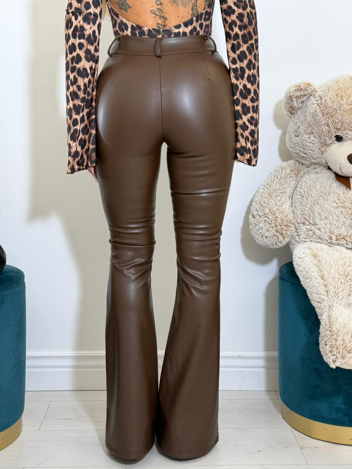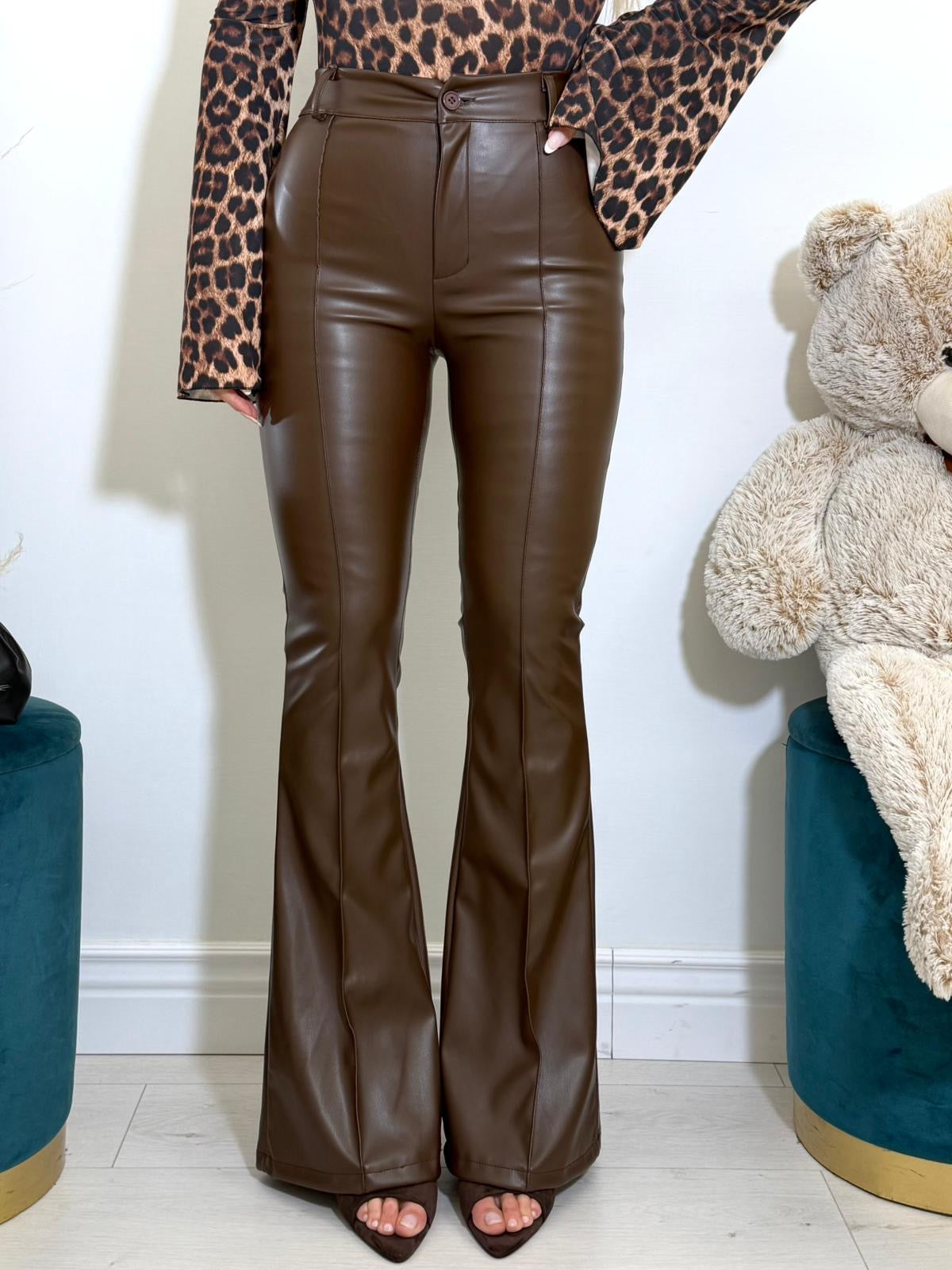 Pantalone in ecopelle a zampa, poco elastico, effetto Push Up