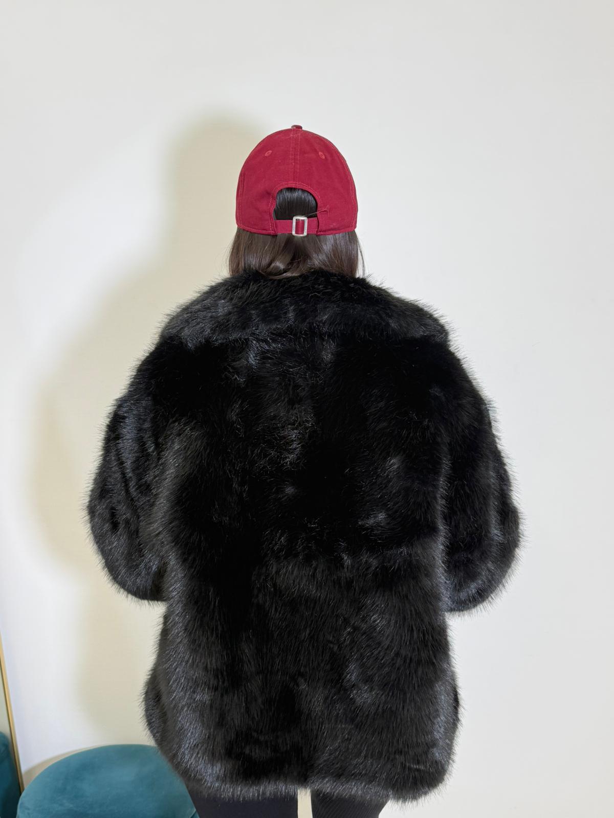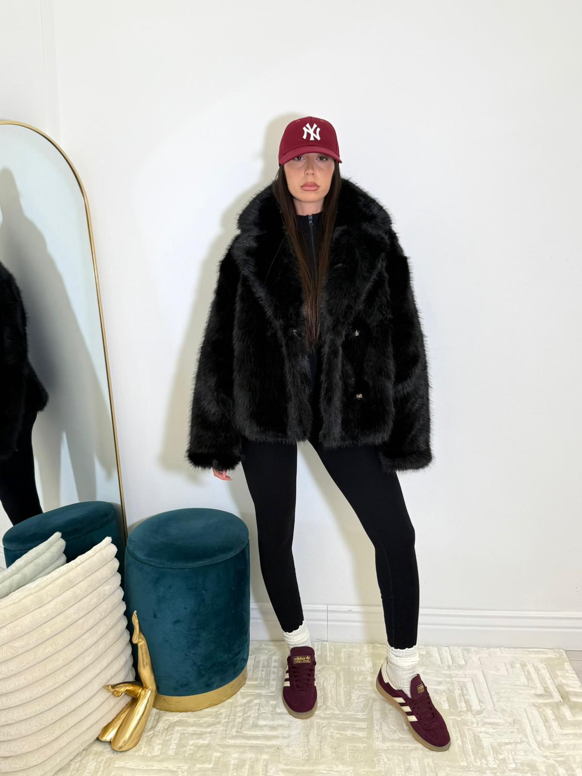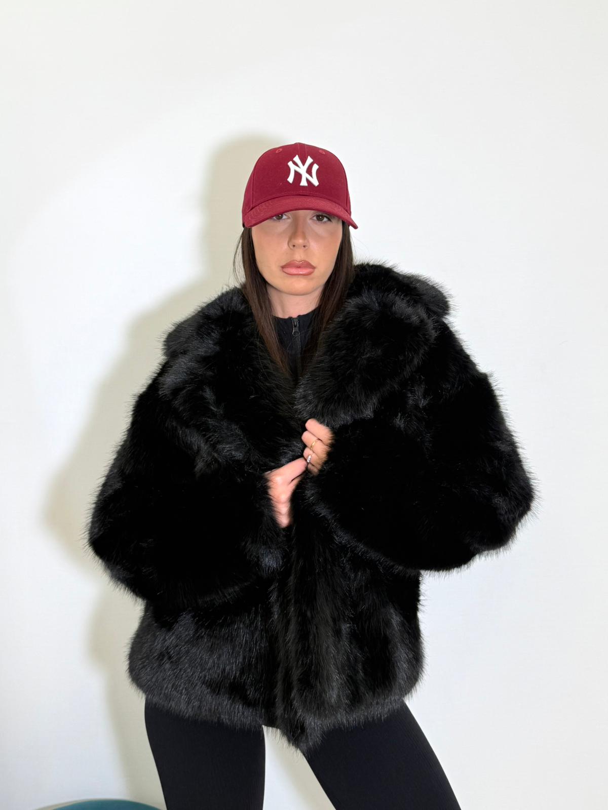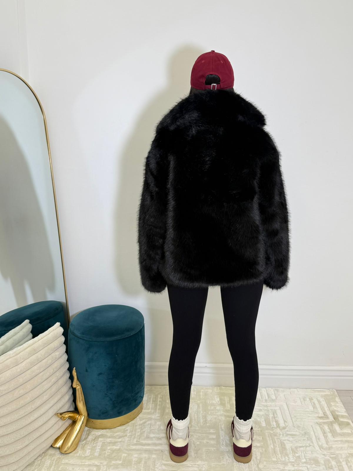 Eco- pelliccia crop a pelo corto sintetico a maniche lunghe.