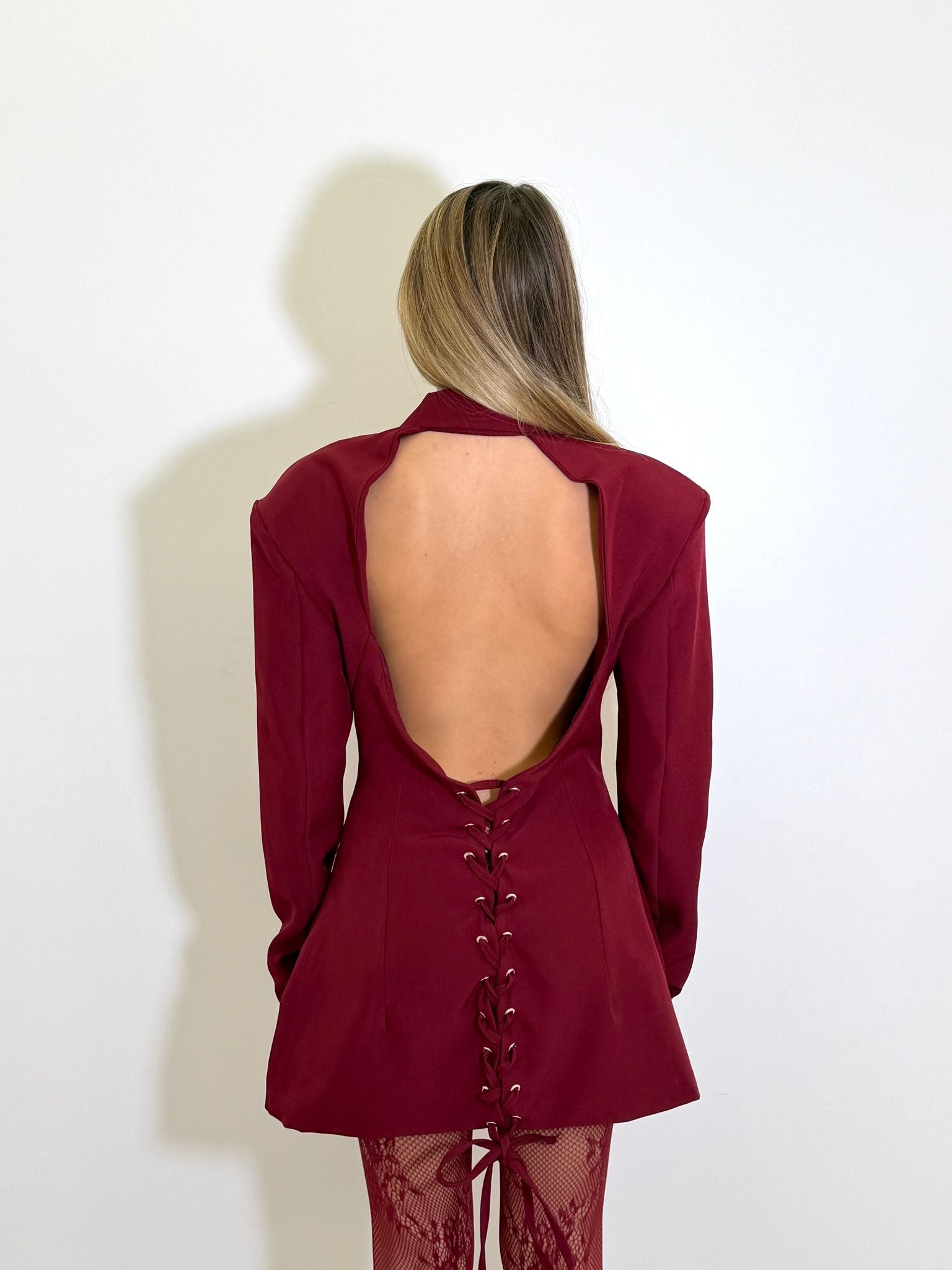 Abito in simil cotone effetto blazer con scollo profondo sul retro