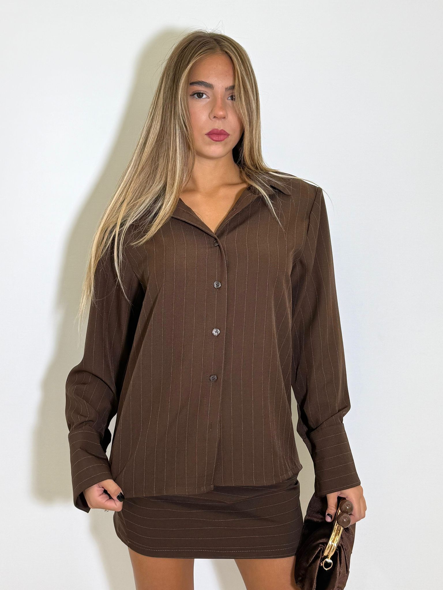 Coordinato due pezzi composto da camicia a righe e gonna.