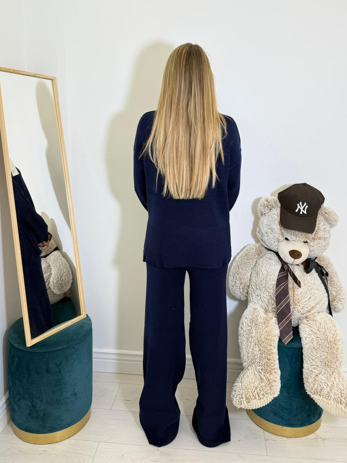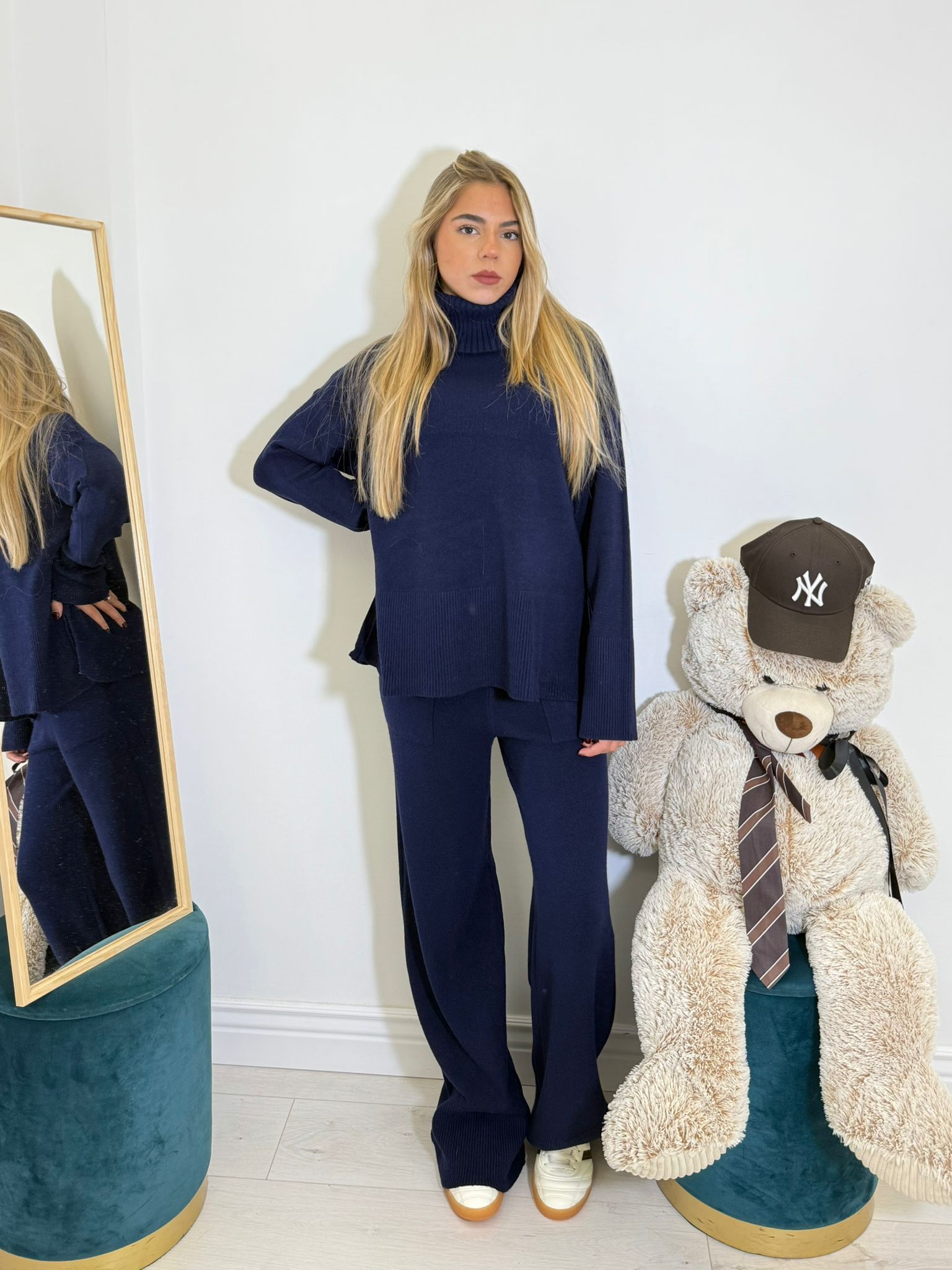 coordinato in simil lana , composto da maglioncino lupetto over a maniche lunghe e pantalone a gamba dritta con elastico in vita e tasche.