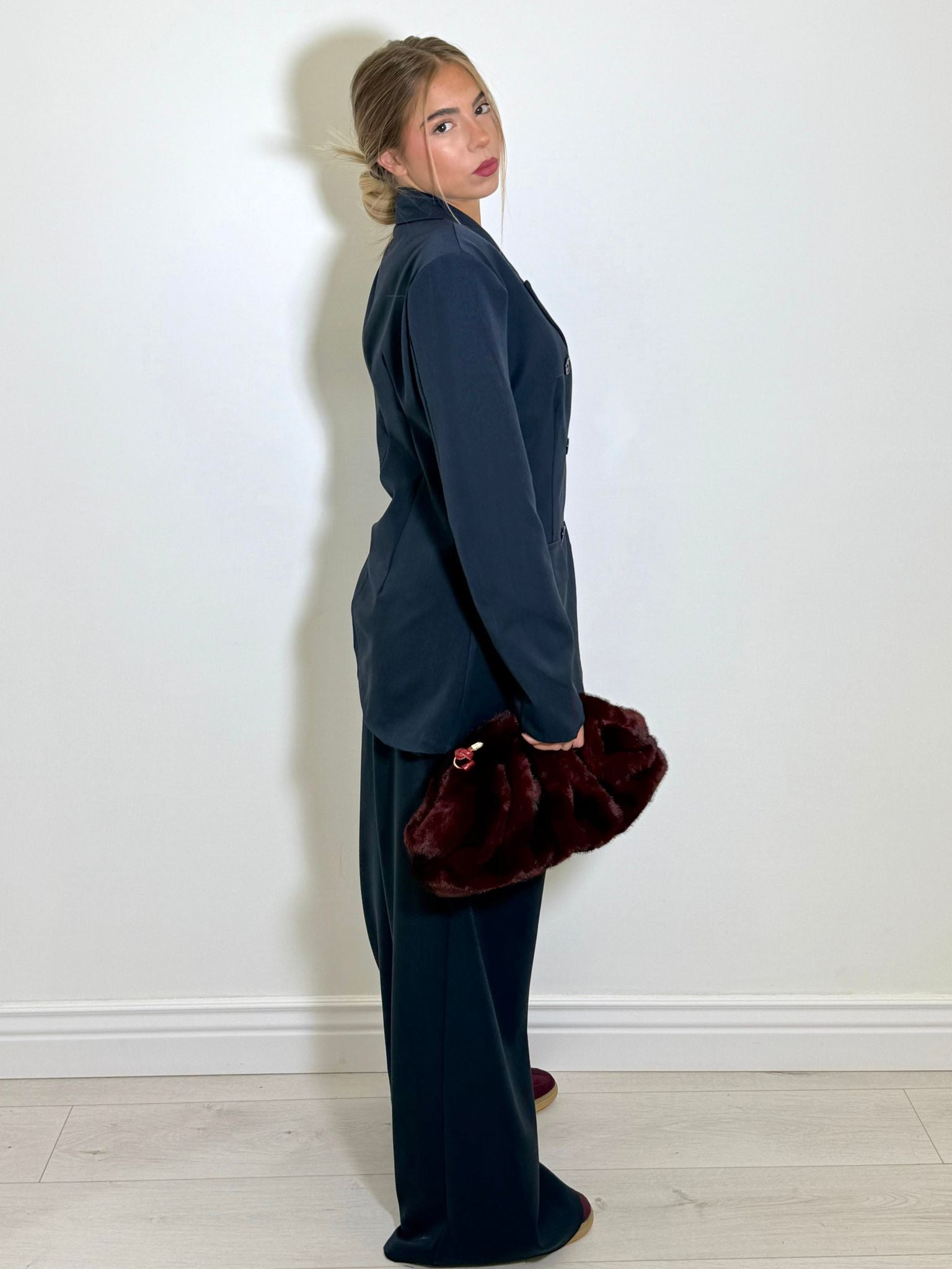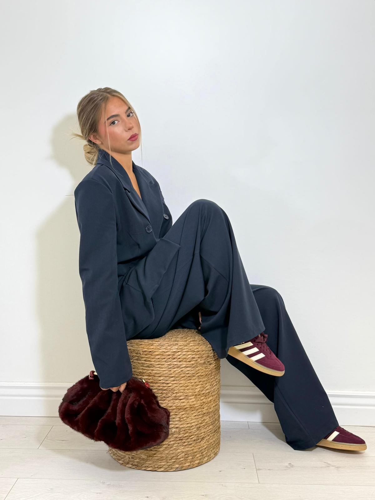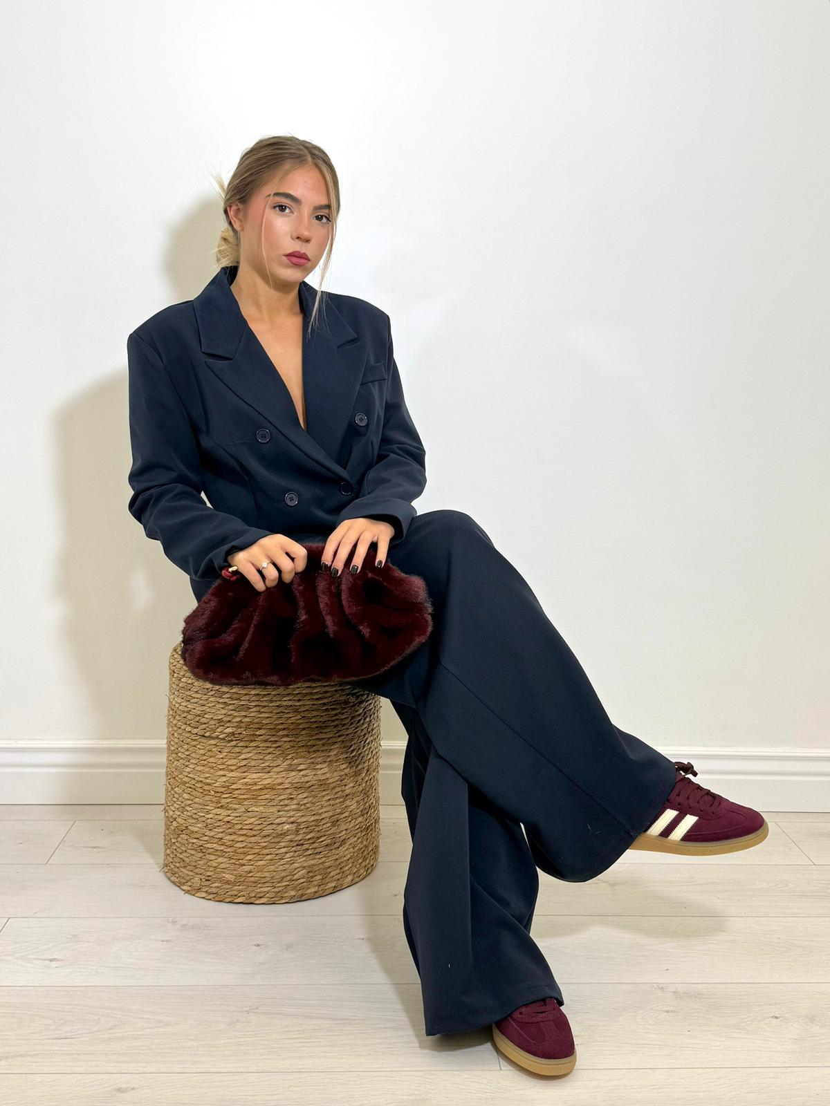 Coordinato in cotone composto da blazer over doppio petto cin bottoncini ,tasche finte e spalline e pantalone palazzo over.