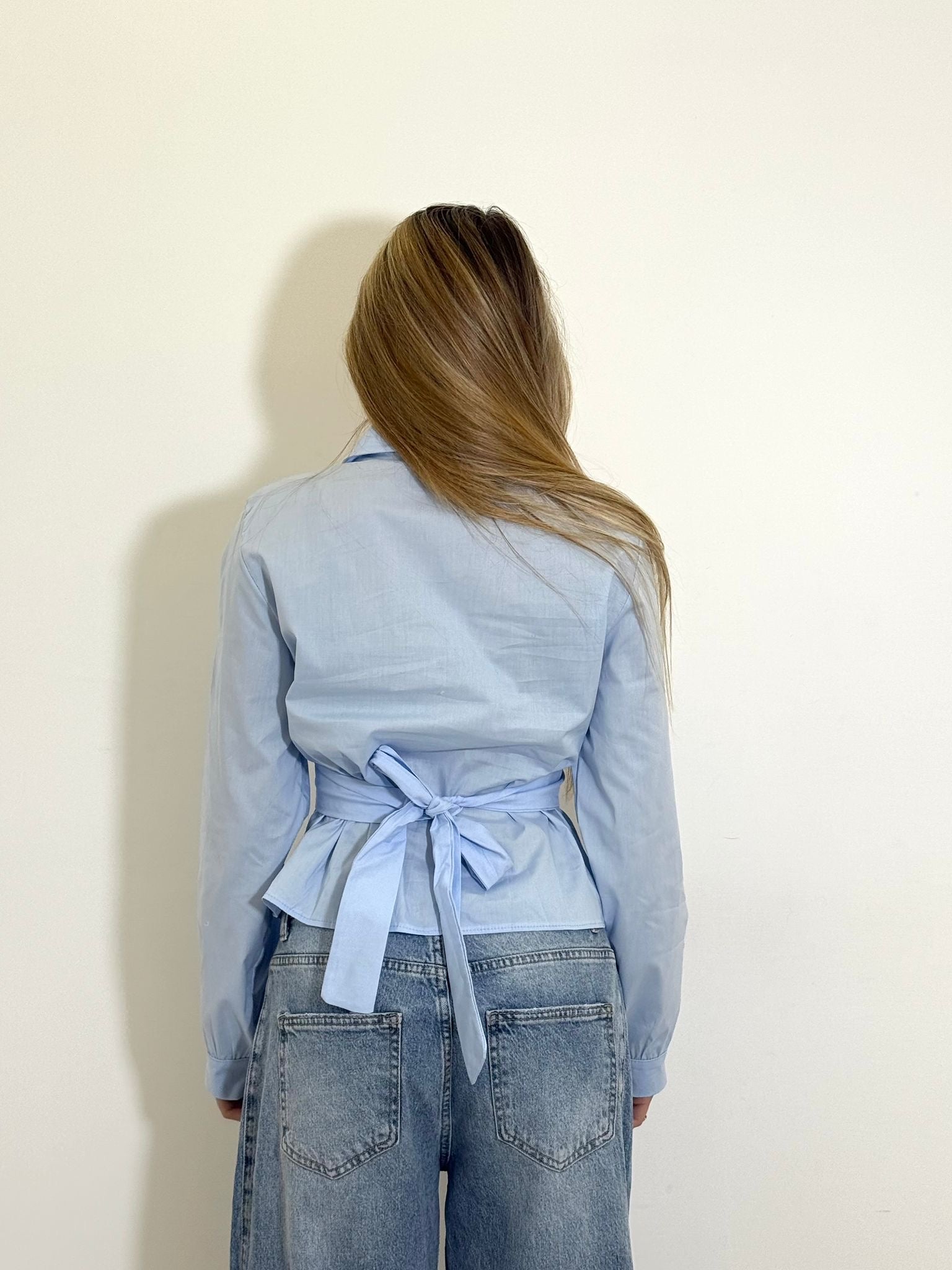 Camicia in simil cotone avvitata , con dettaglio annodato sul retro