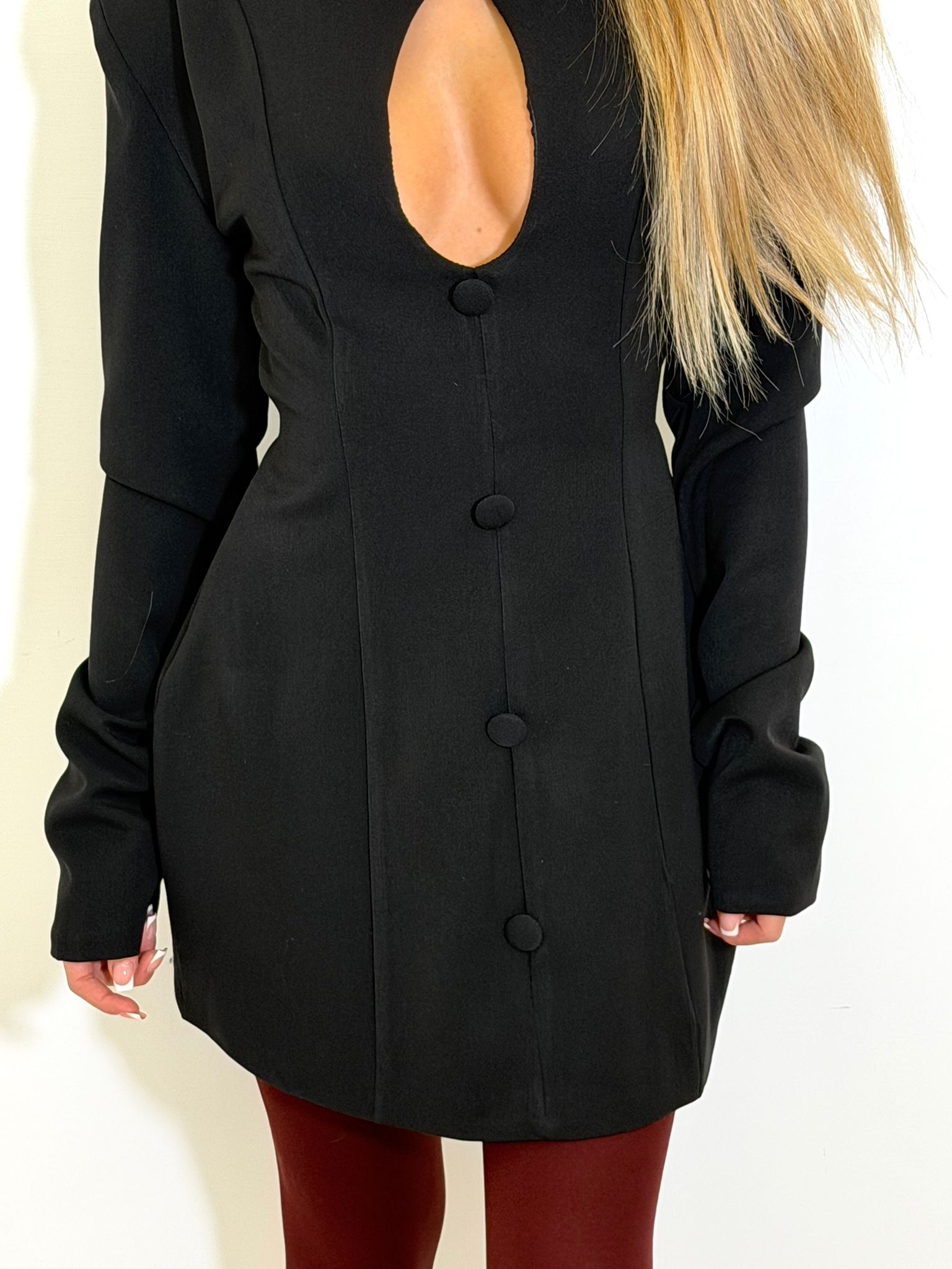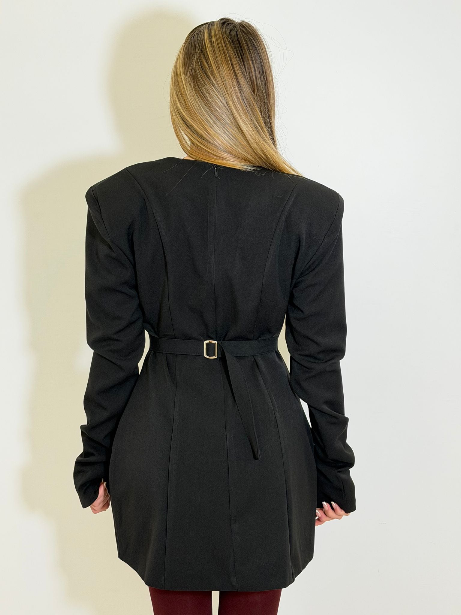 Abito in simil cotone effetto blazer con cintura sul retro regolabile apertura sul seno