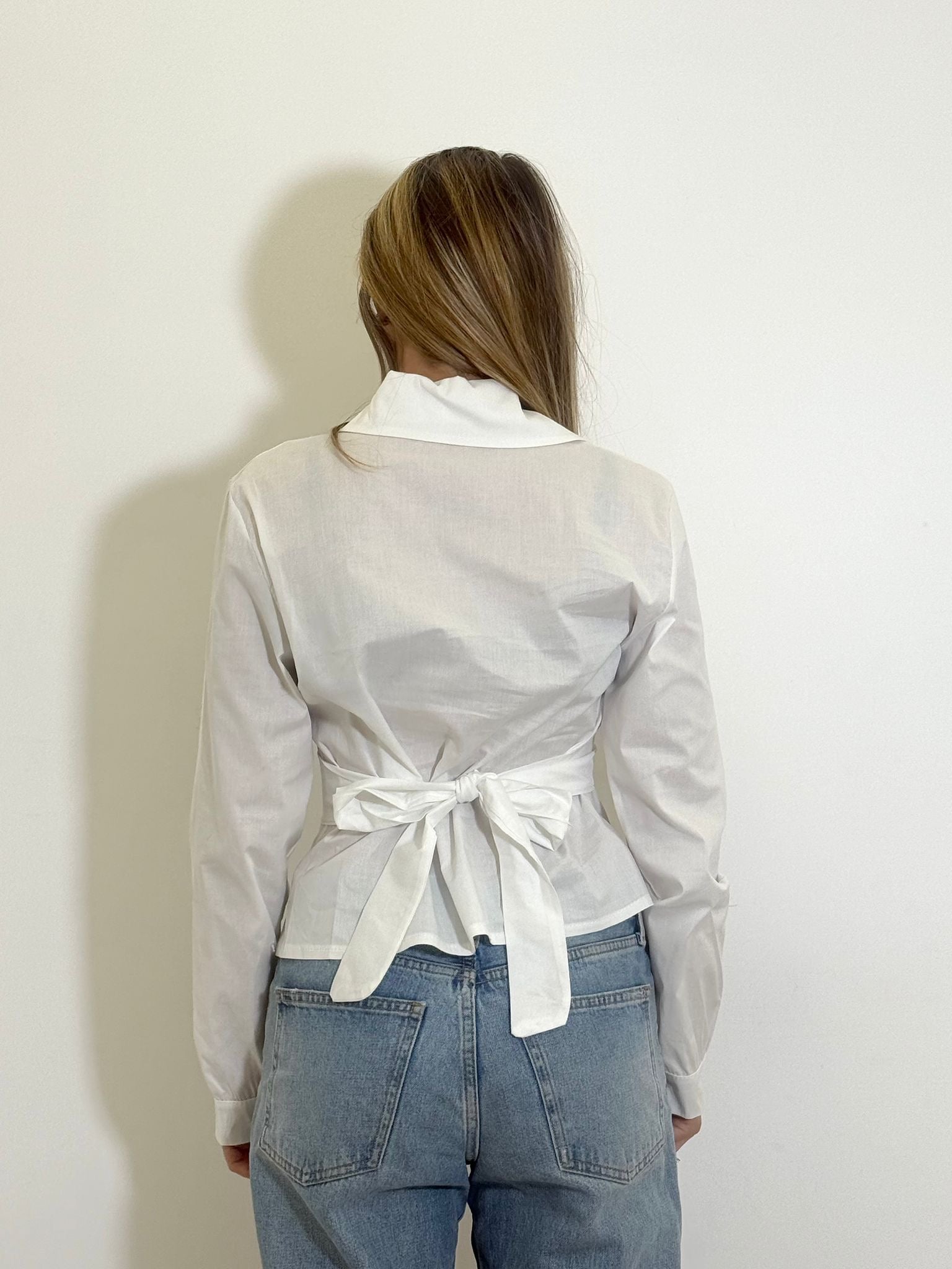 Camicia in simil cotone avvitata , con dettaglio annodato sul retro