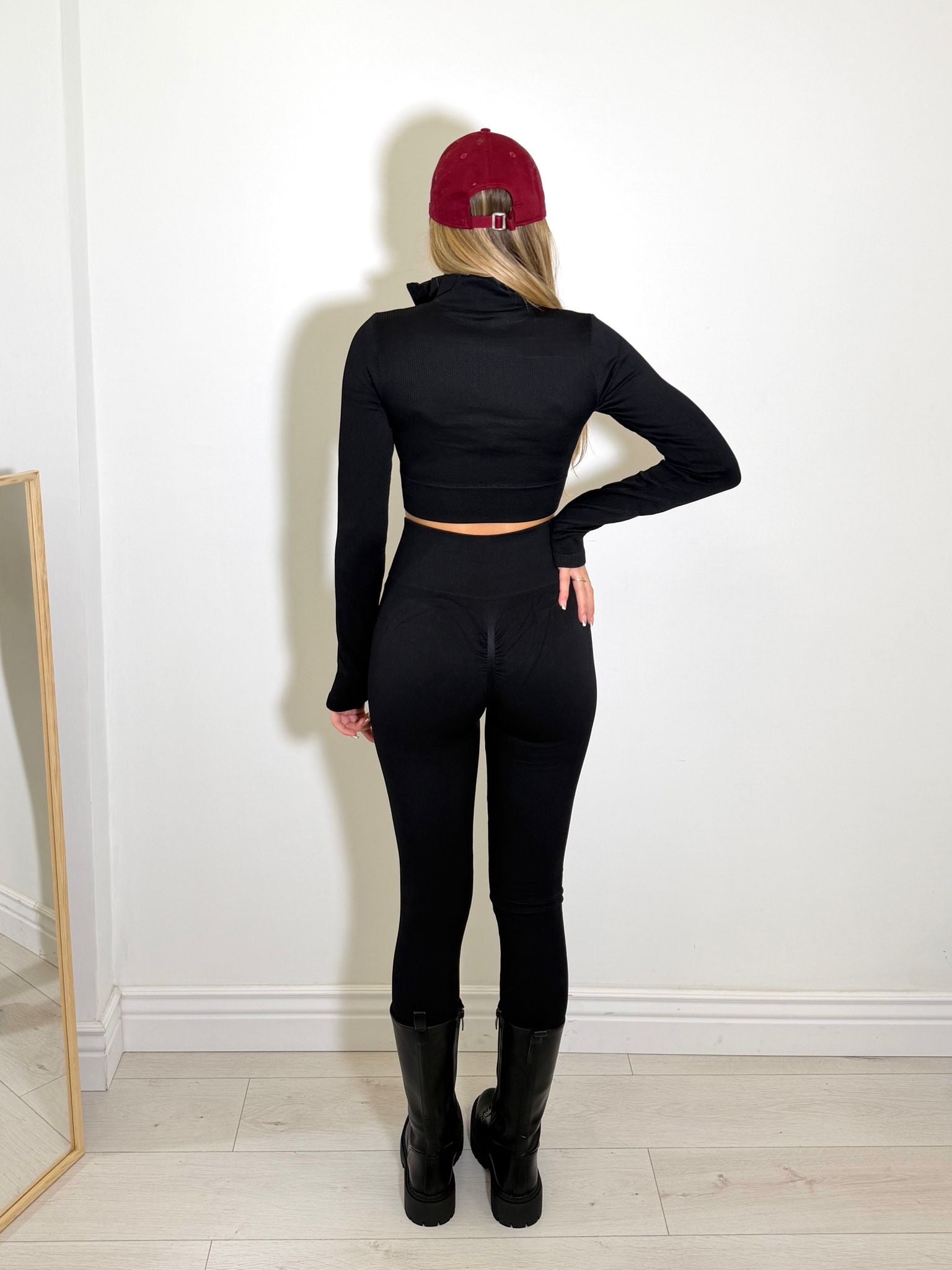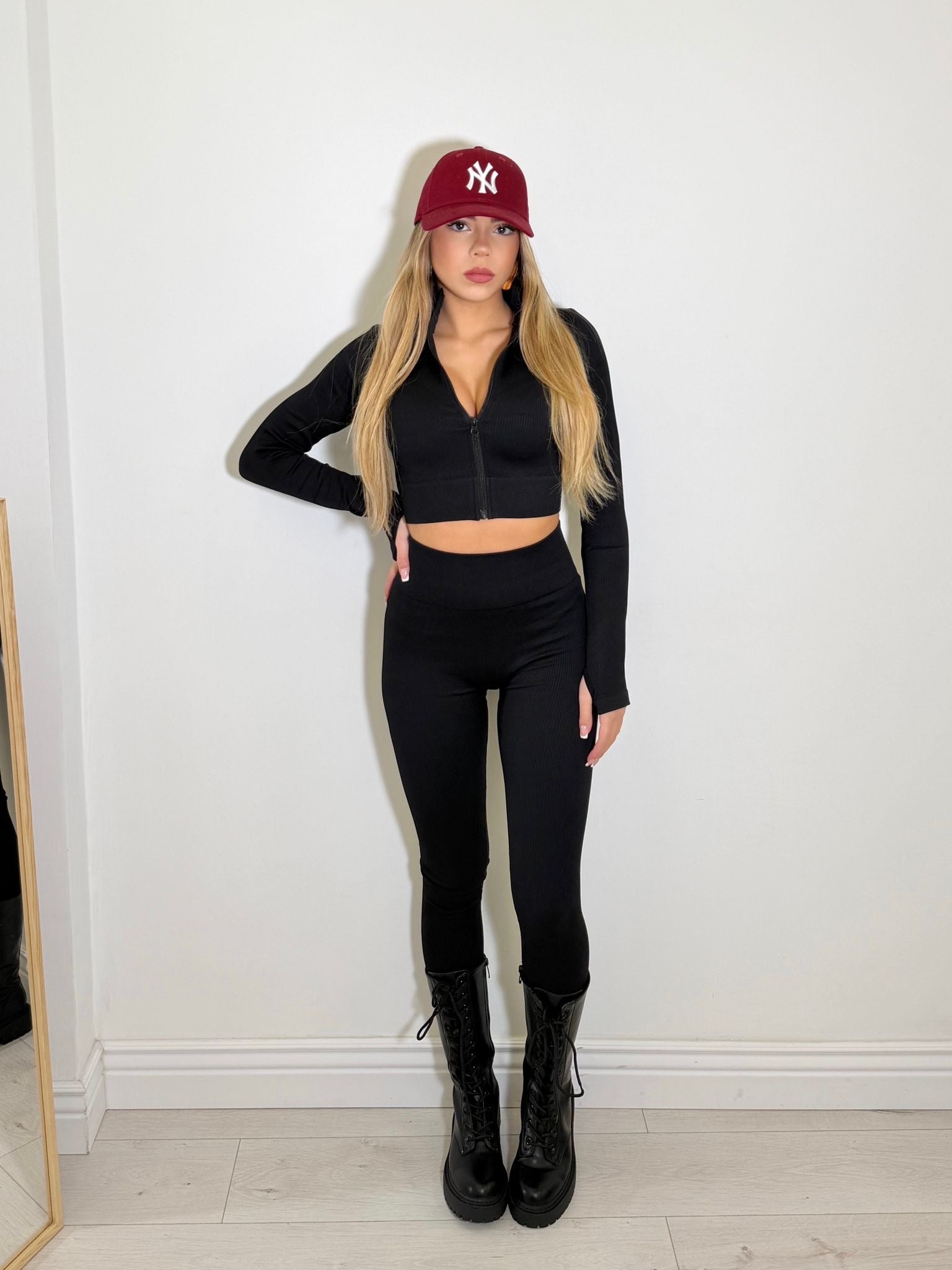 cord set in tessuto contenitivo modellante composto da maglia con cerniera crop leggings effetto push up