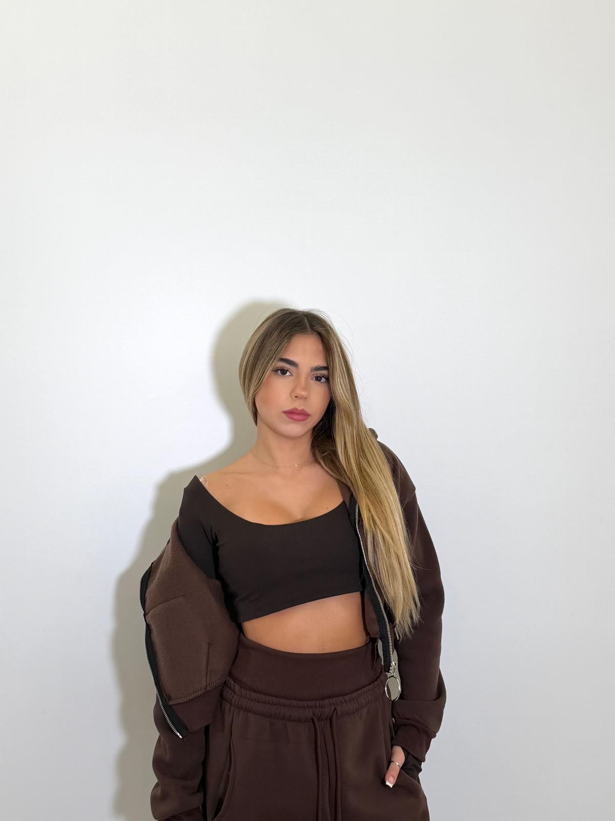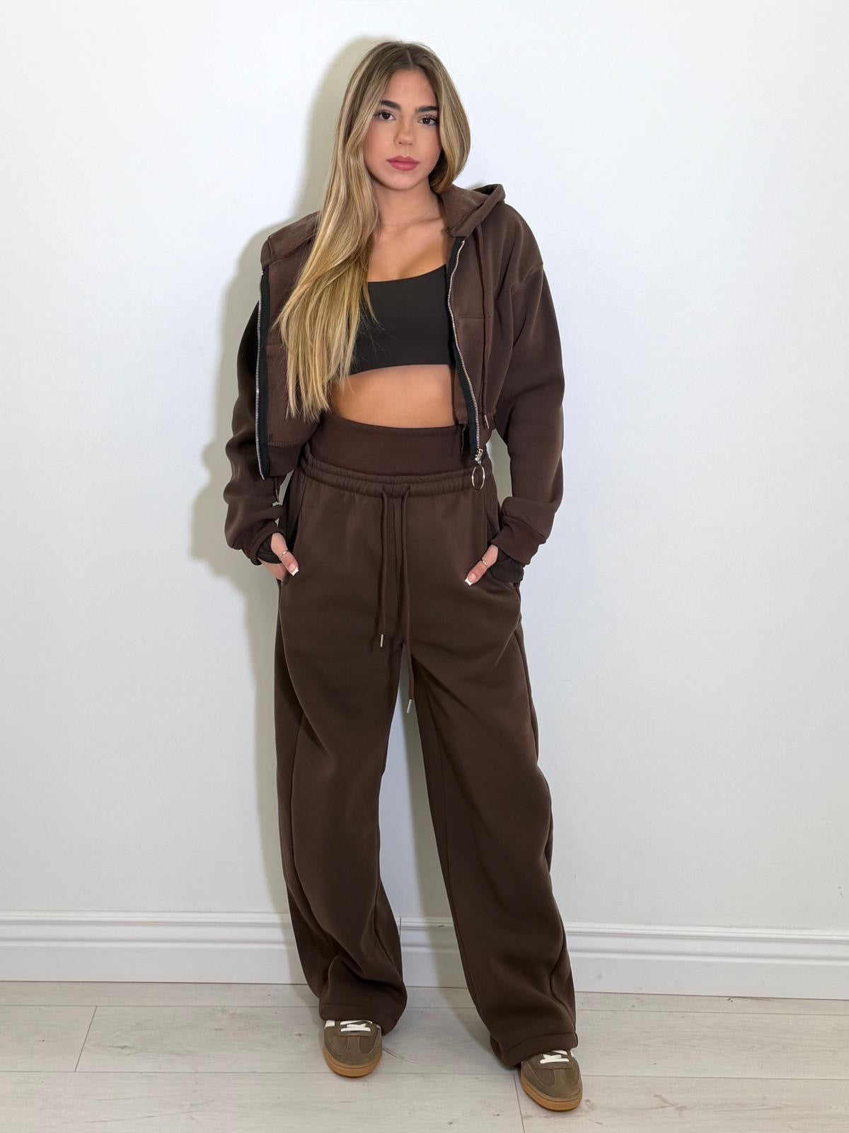 Coordinato in felpa 3 pezzi con felpa crop e pantalone vita alta