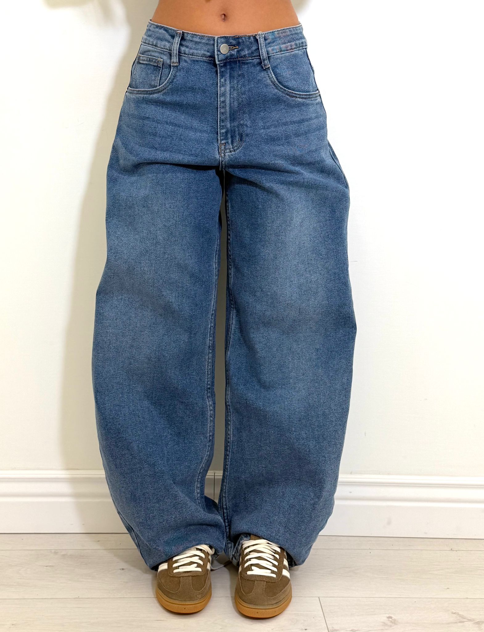 Jeans in tela elastica effetto balloon, consigliamo una tg in più alla regolare se vi piace il fit in foto.