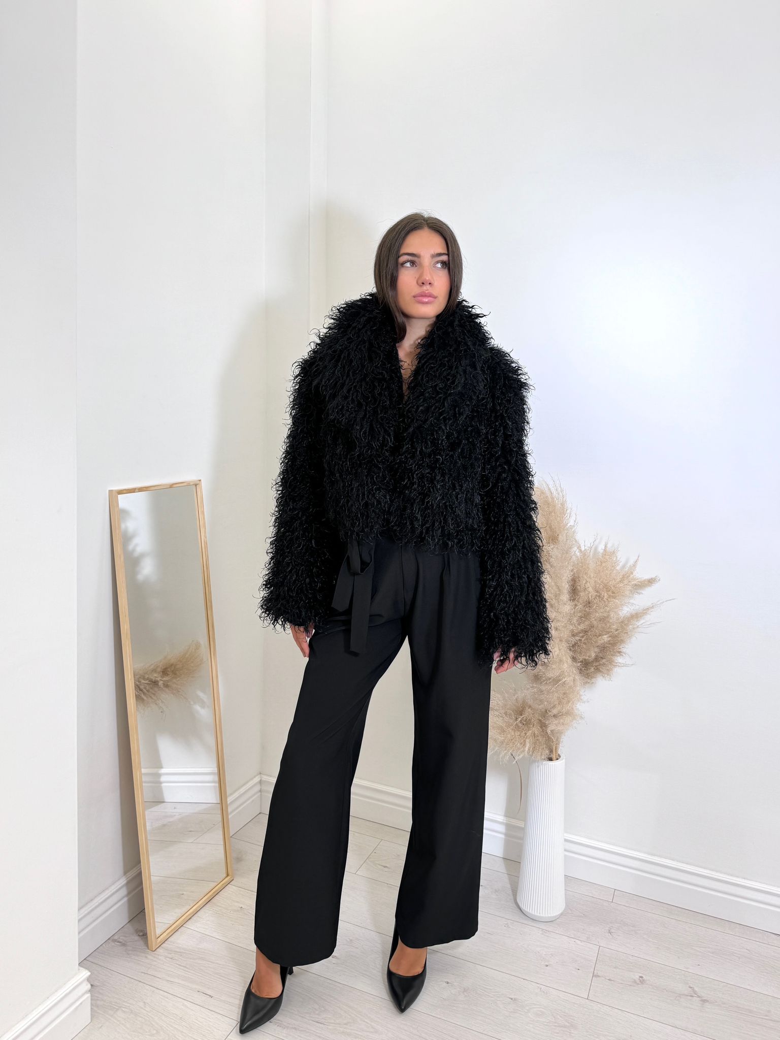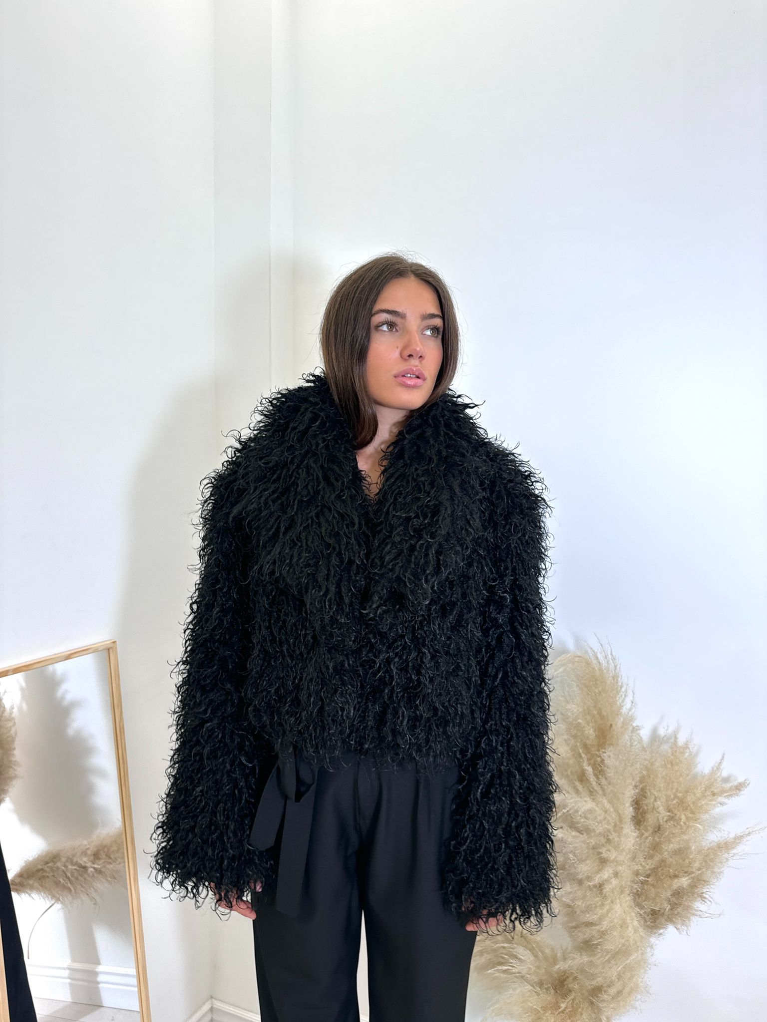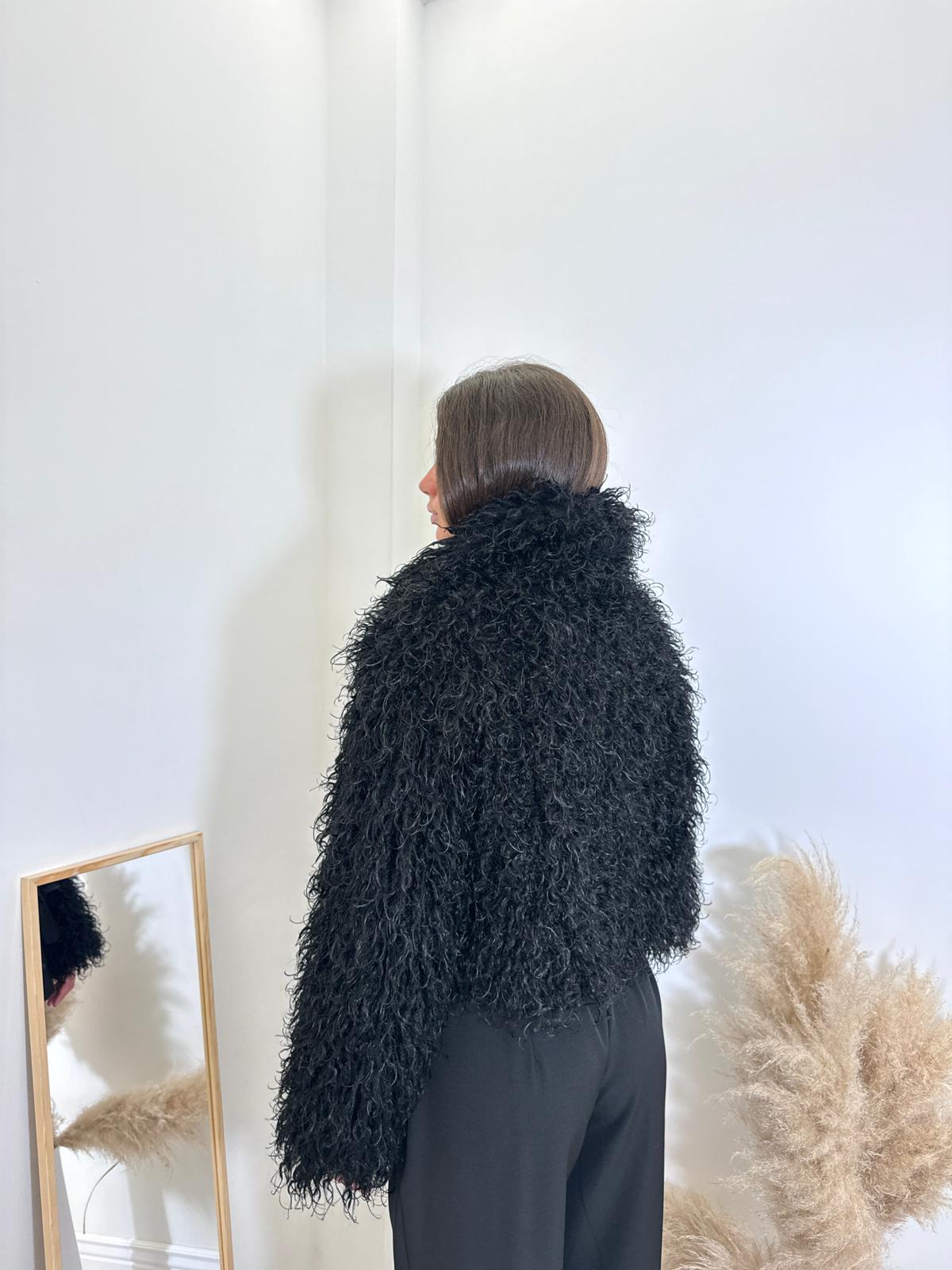 Eco- pelliccia corta a maniche lunghe, effetto riccio e voluminoso, effetto shearling/agnellino sintetico.