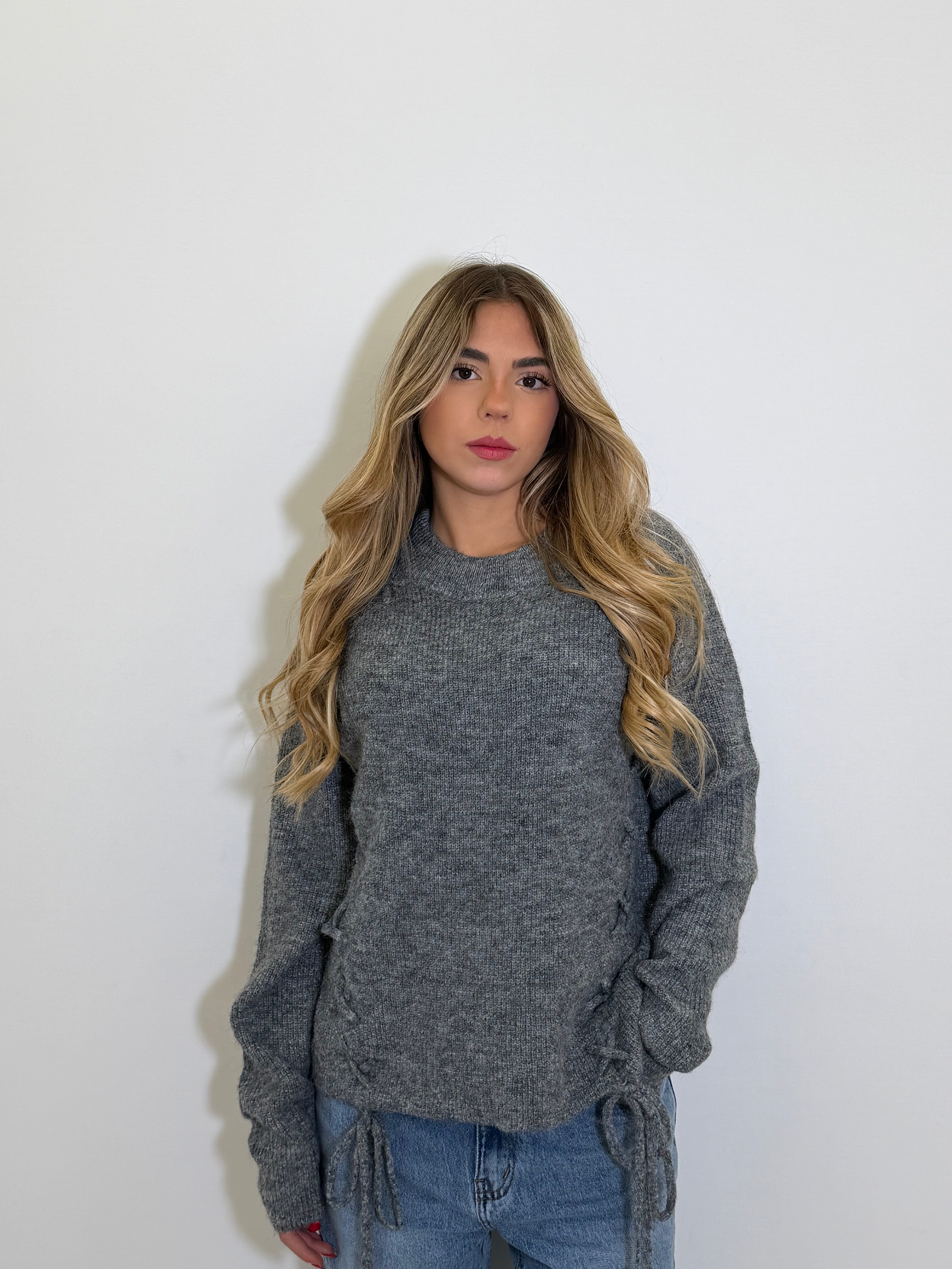 Pull intreccio grigio