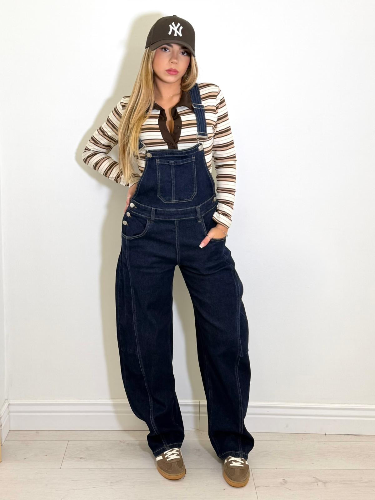 Salopette in denim con effetto balloon lavaggio 0 in tela elastica, consigliamo una tg in più alla regolare se vi piace il fit in foto.