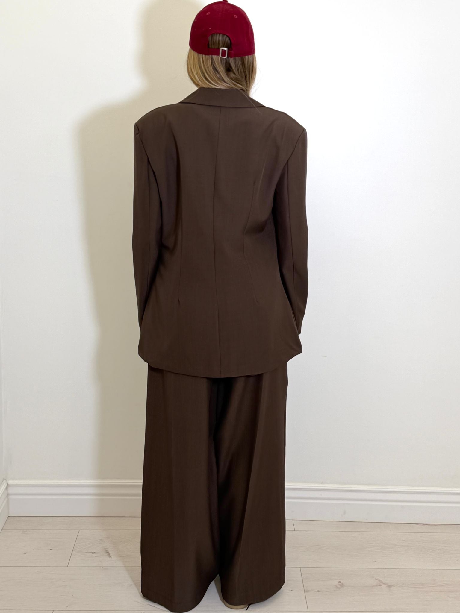 Tailleur in simil cotone con blazer over e pantalone a palazzo