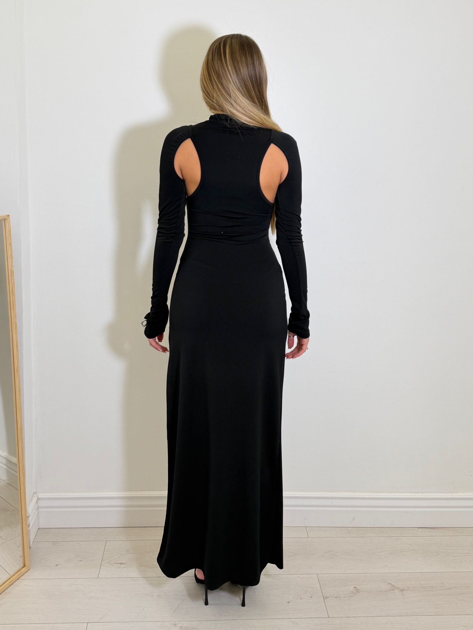 Abiro lungo in tessuto elastico, effetto copri spalle.