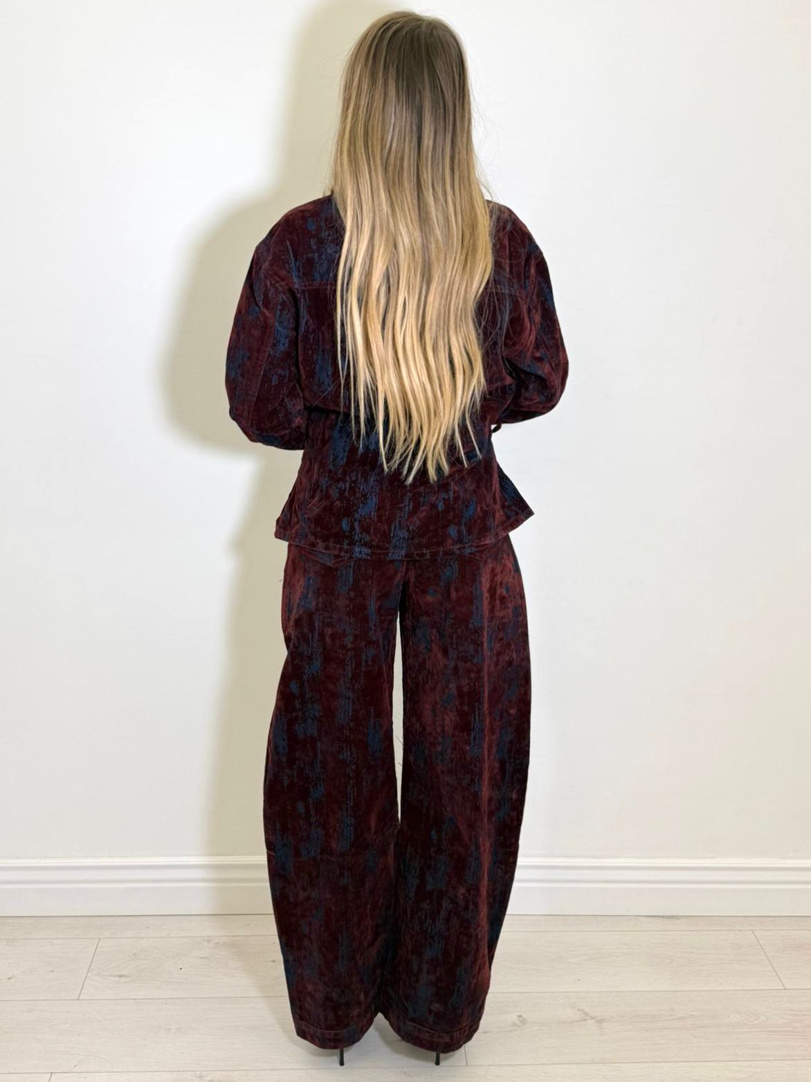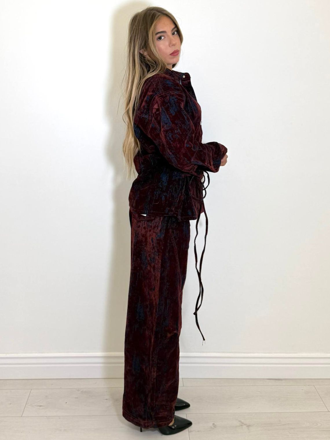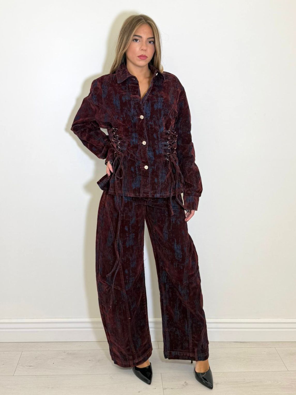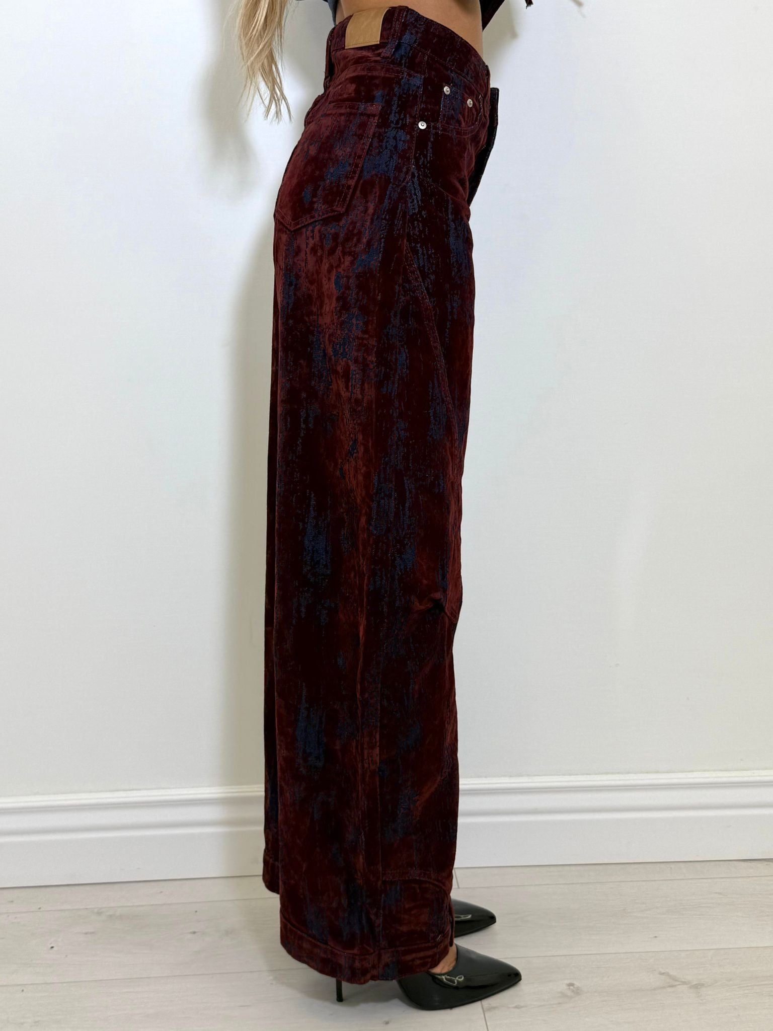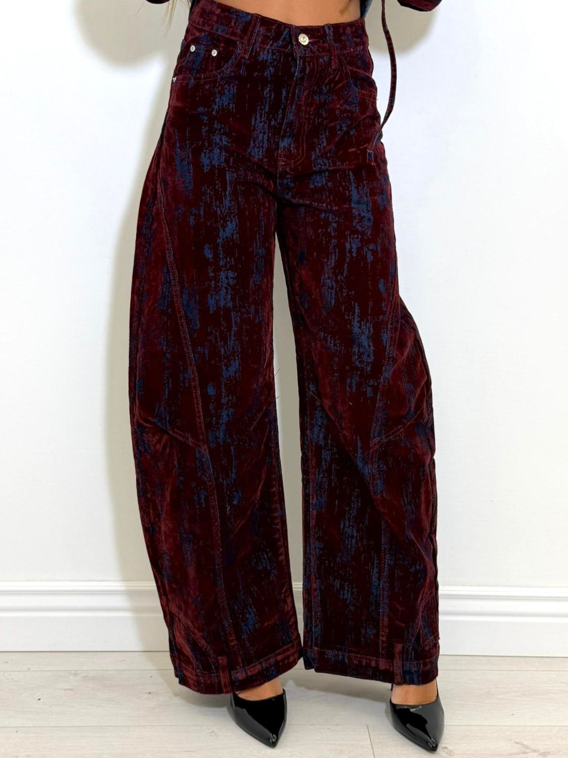 Pantalone in camoscio vellutato, modello balloon, con bottone in vita.