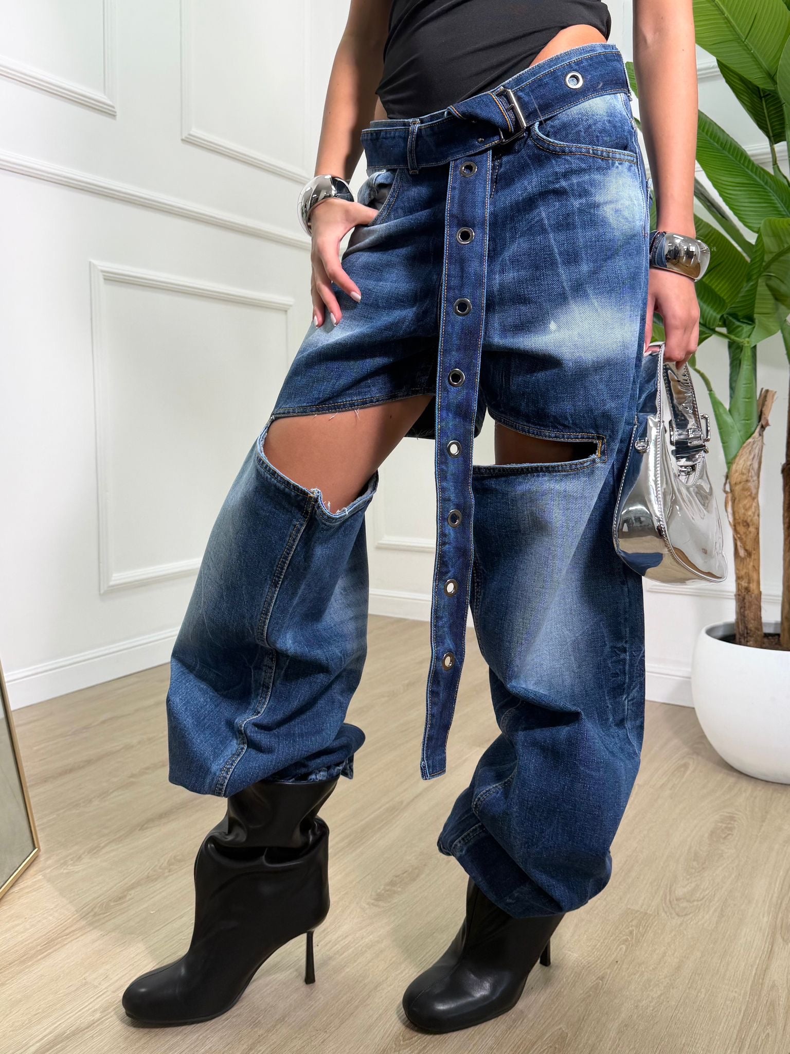 Jeans in tela fissa , dettaglio aperture , top quality