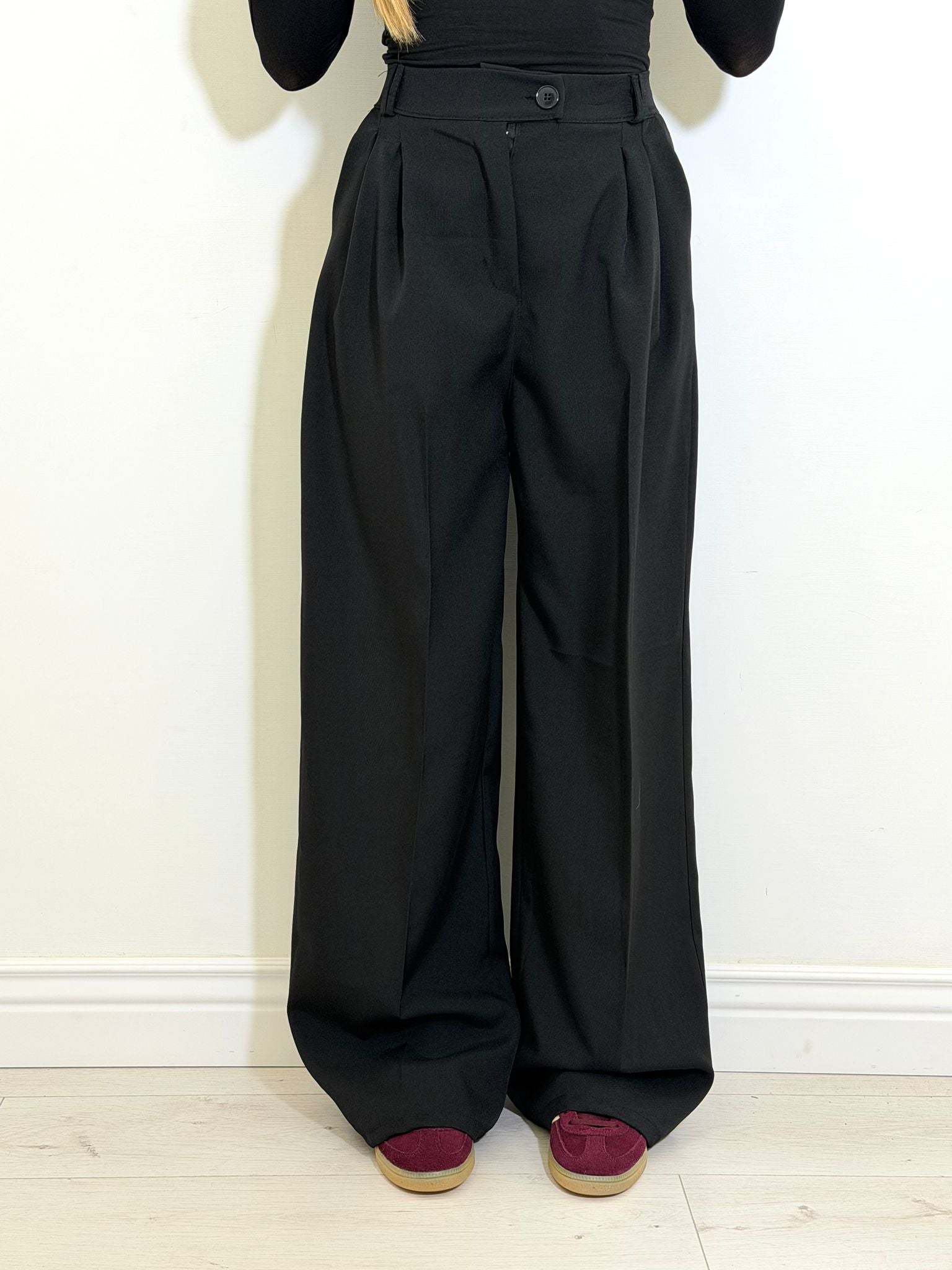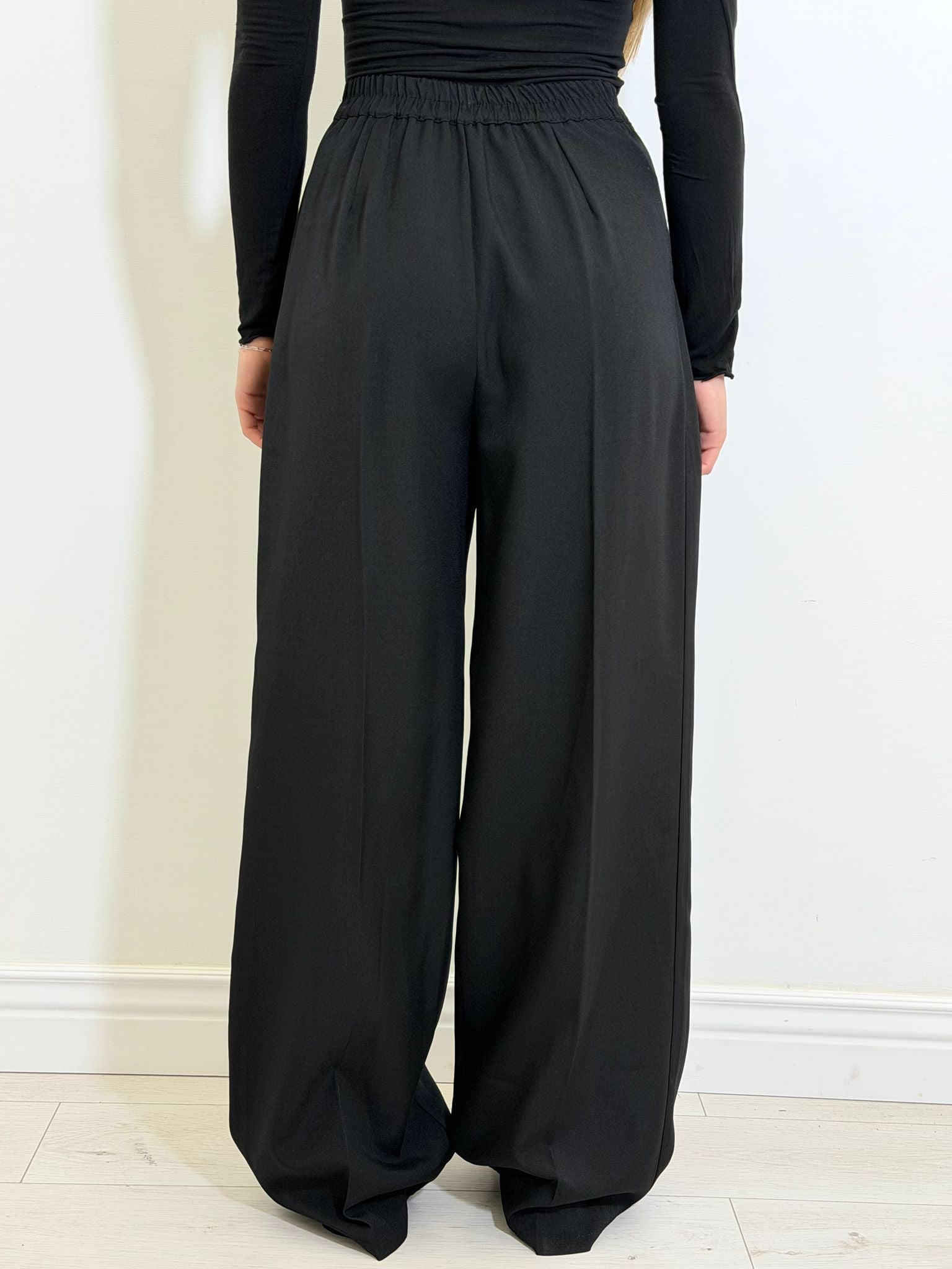 Pantalone palazzo in simil cotone , vestibilità regolare.