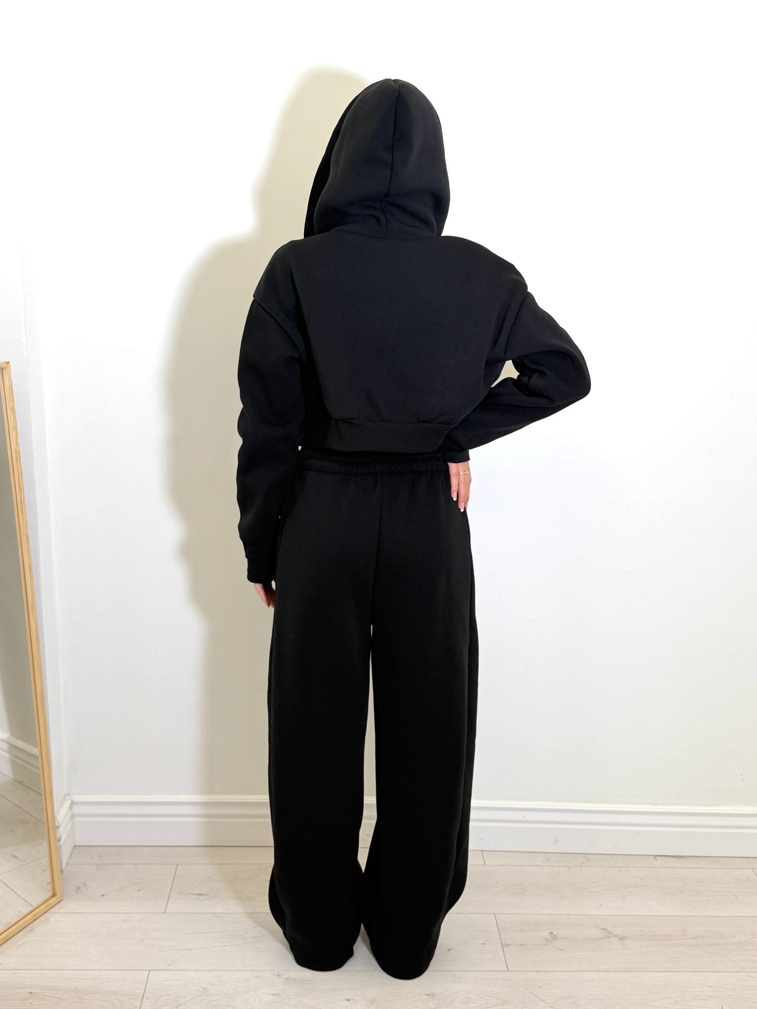 Coordinato in felpa 3 pezzi con felpa crop e pantalone vita alta