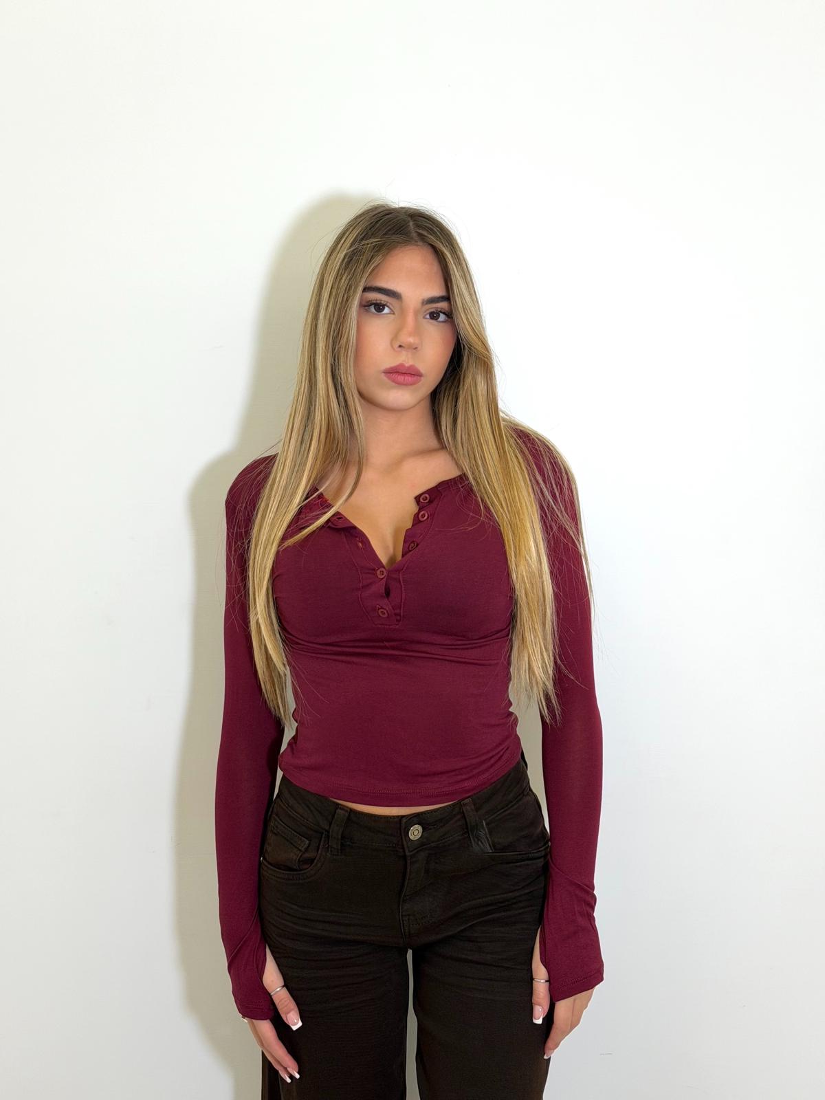 Maglia in simil cotone con bottoncini sul seno