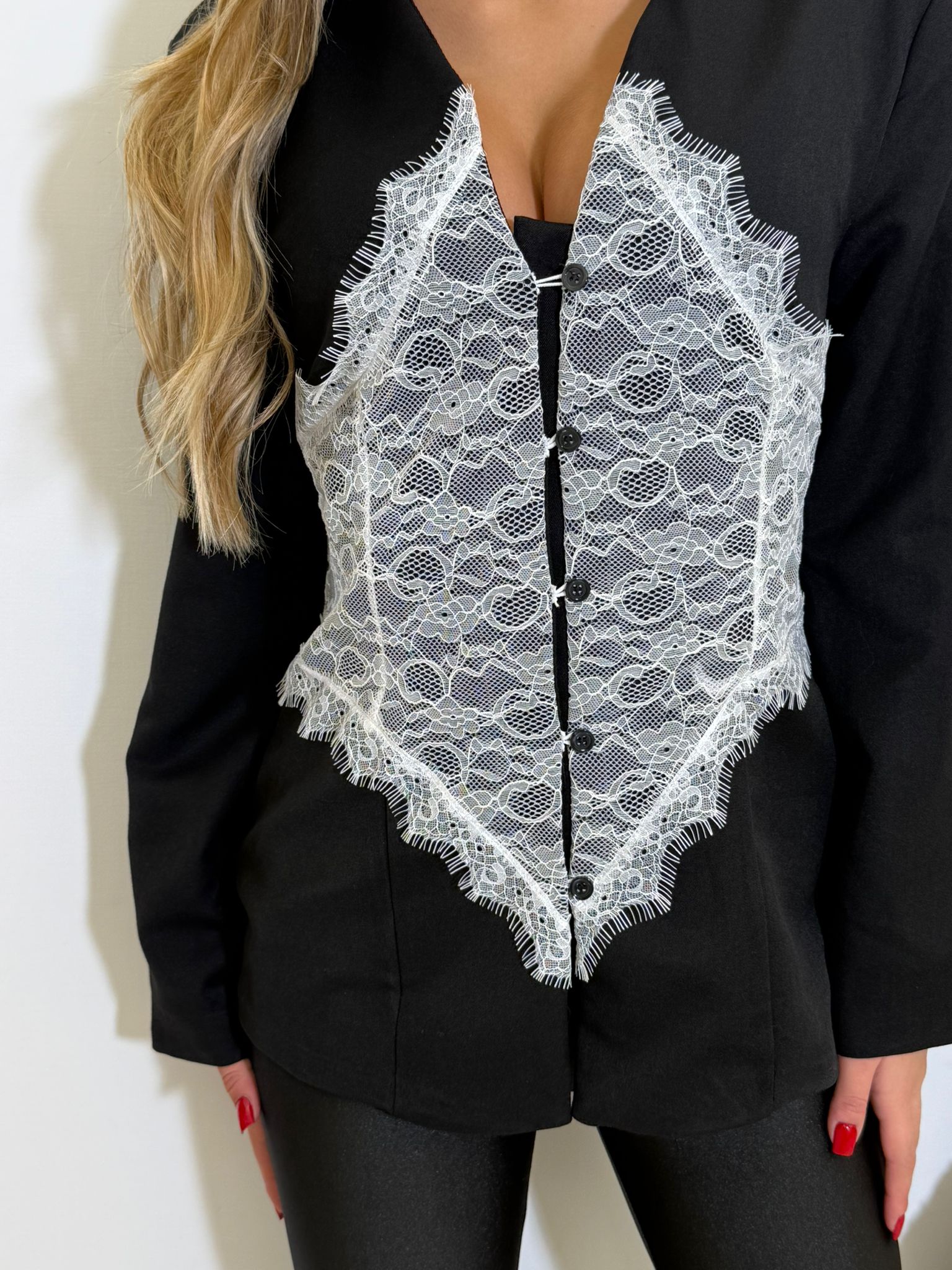 Blazer in simil cotone con dettaglio in pizzo centrale.