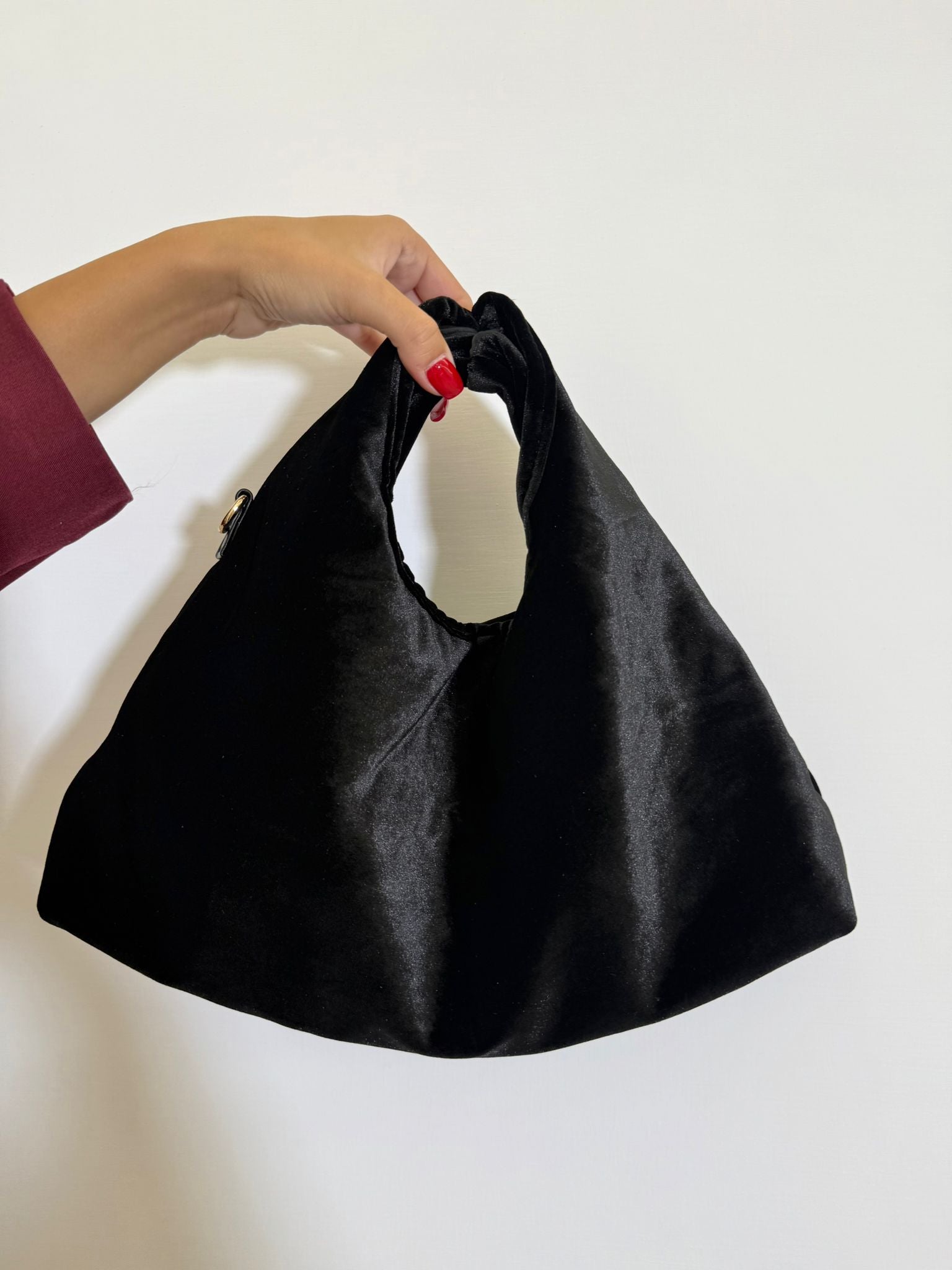 Borsa in tessuto camoscio con catenina.