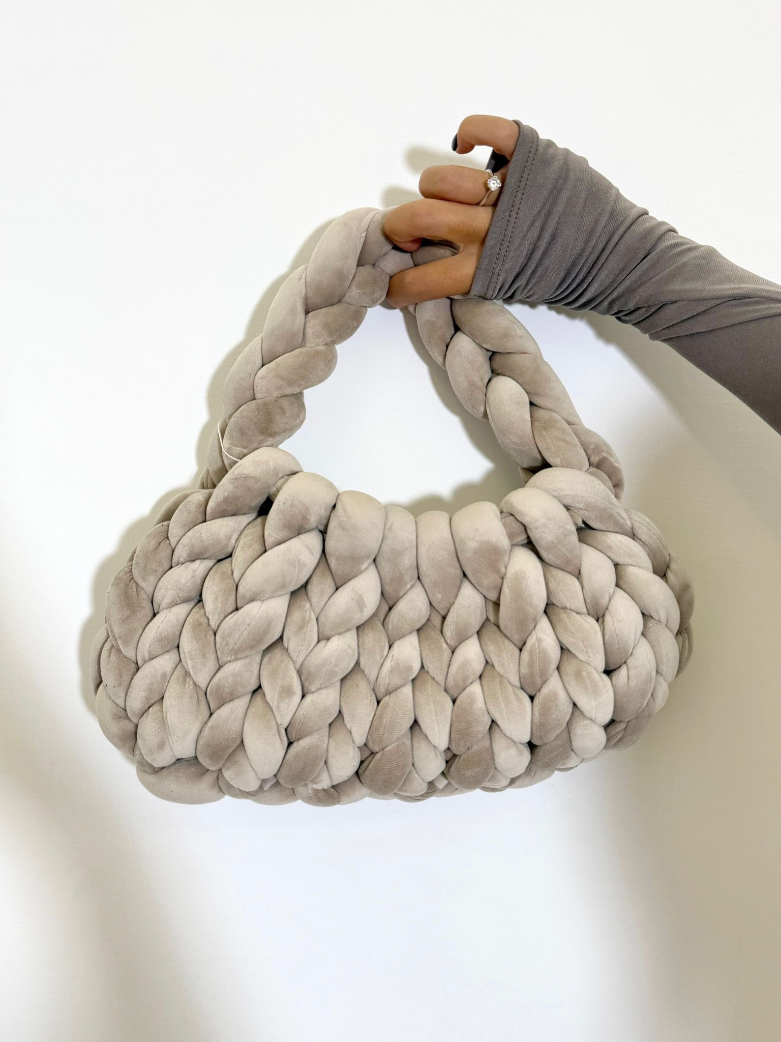 Borsa in tessuto vellutato/ peluche, morbido al tatto e con una finitura opaca ma luminosa.