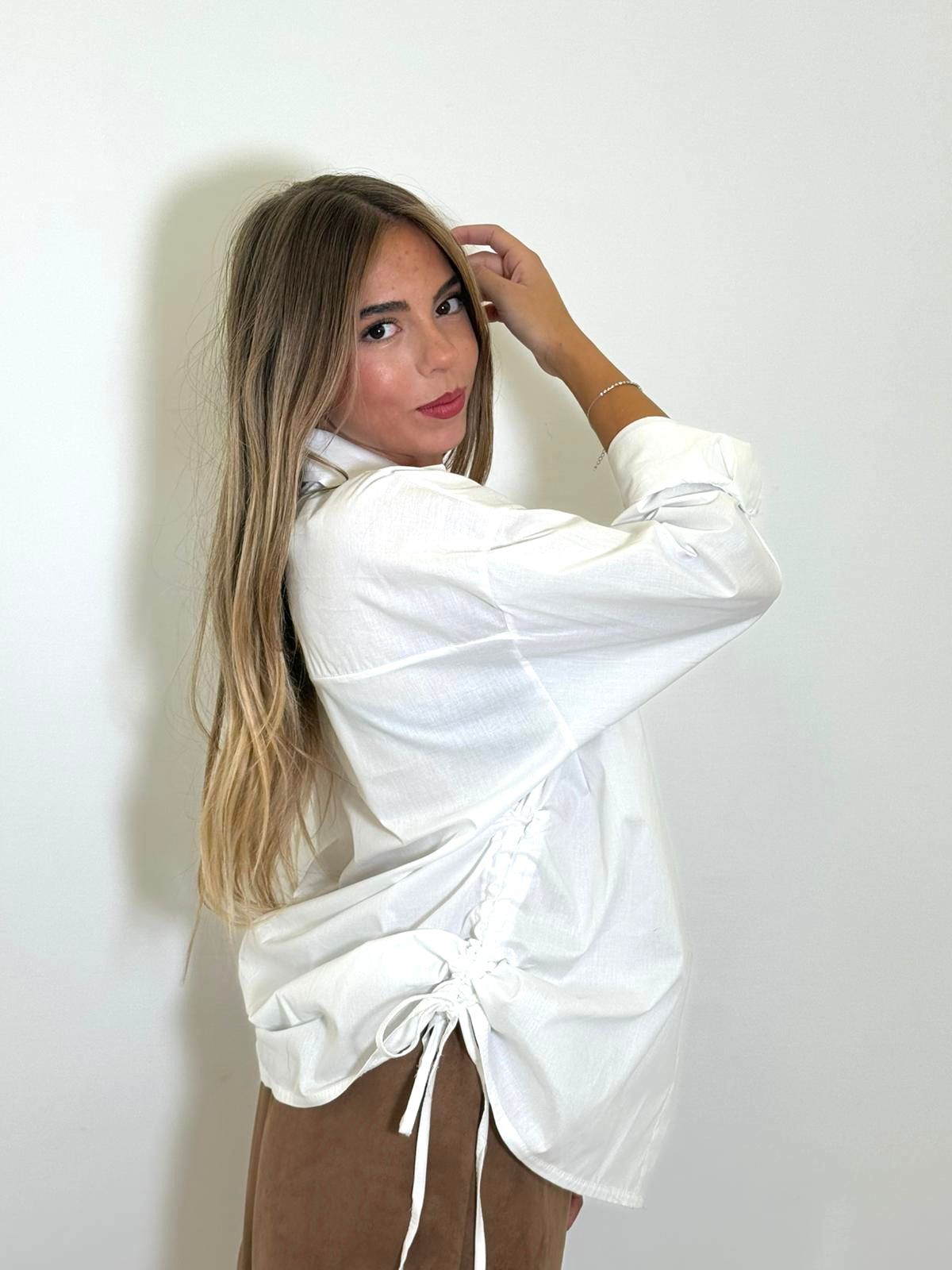 camicia oversize in cotone, con taglio dritto e lacci sul fondo.