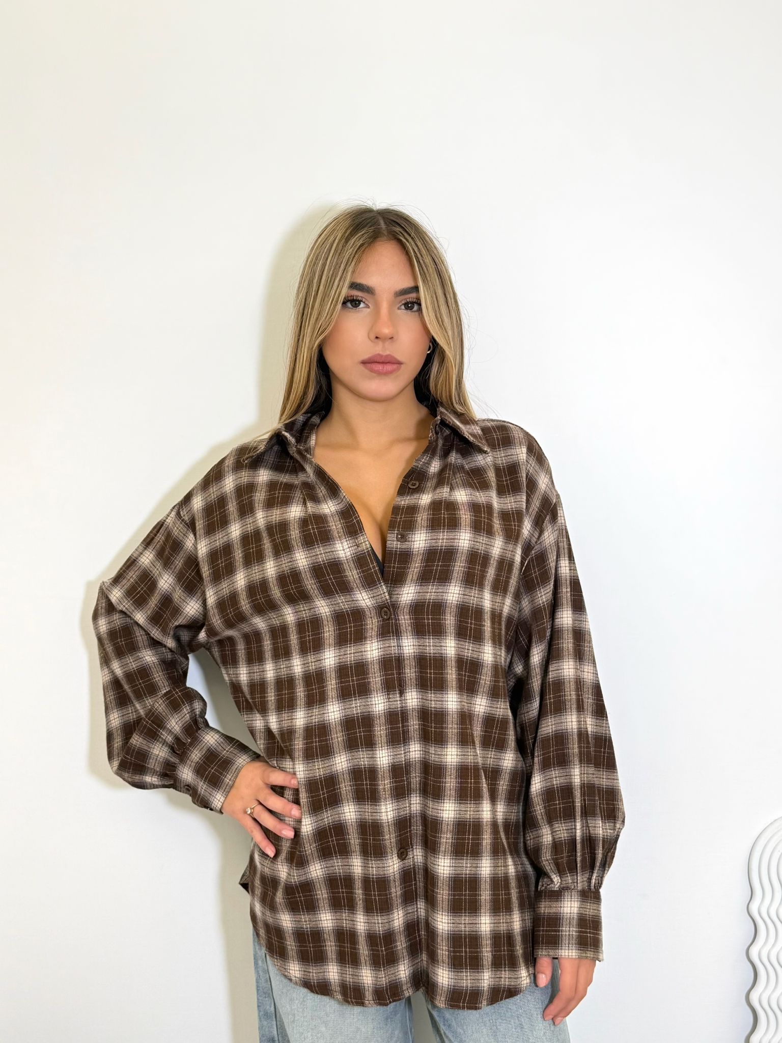 Camicia in simil cotone duro, over, trama a quadri.