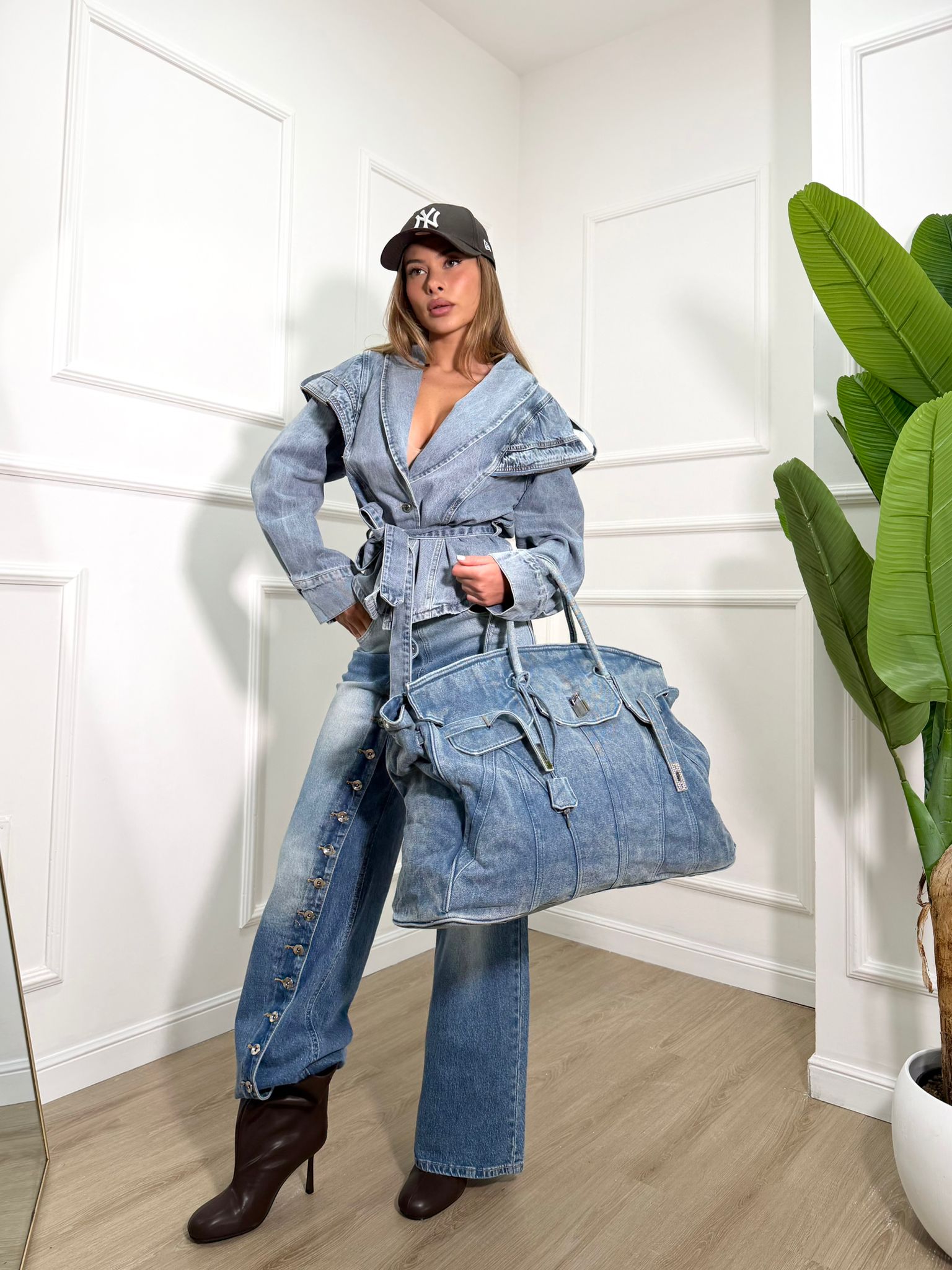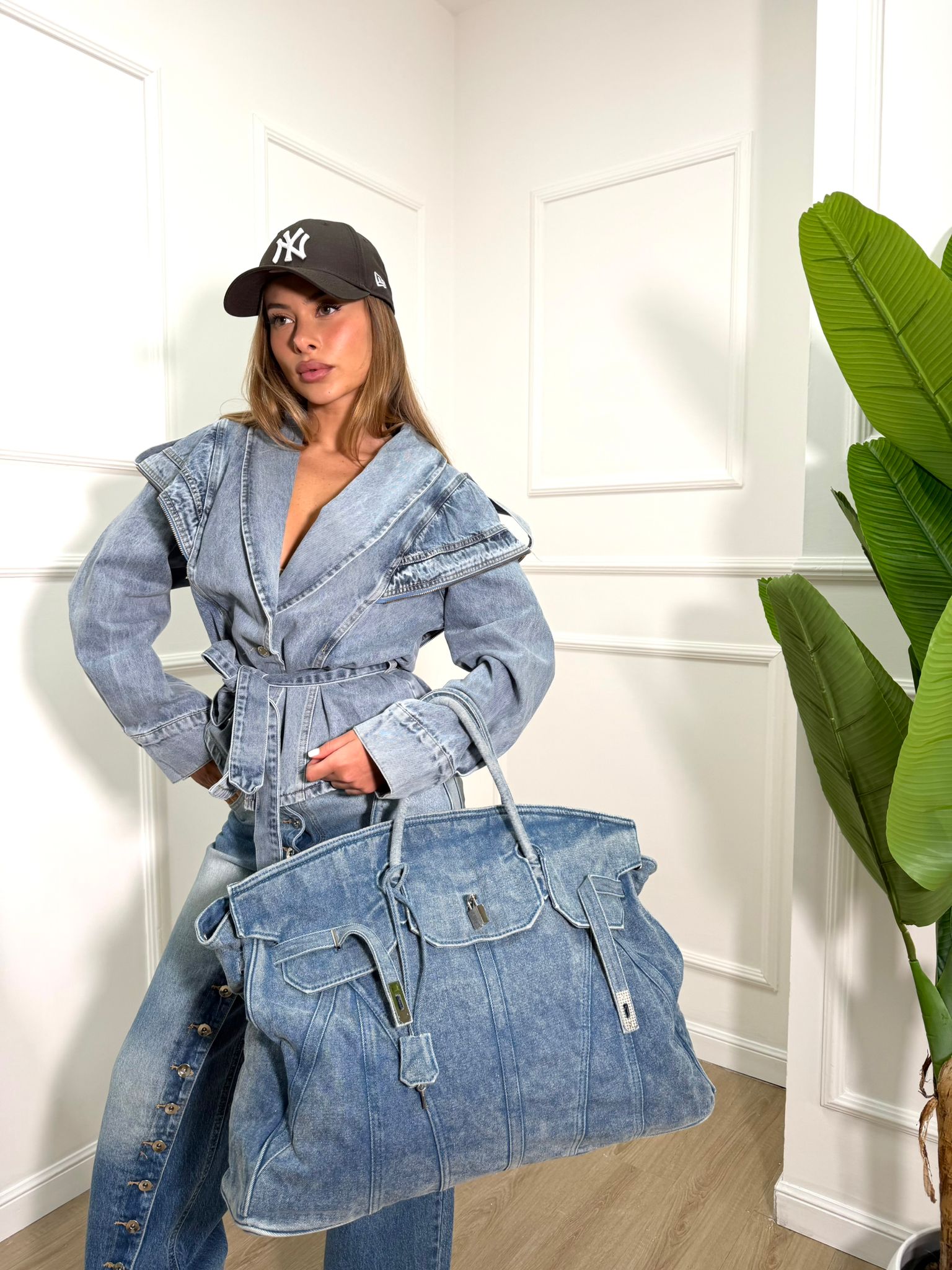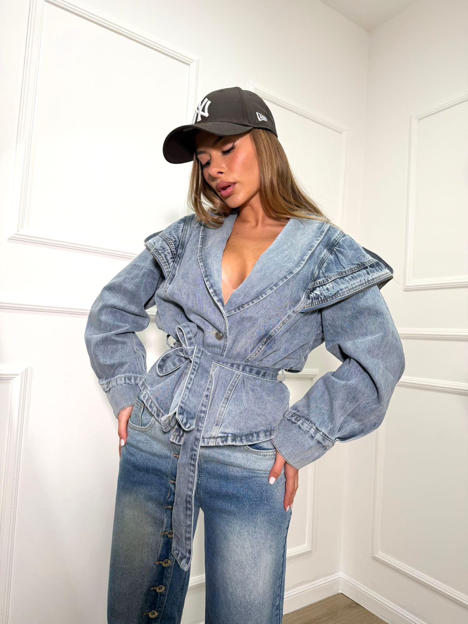 Giacca in denim dettaglio cintura in tessuto regolabile