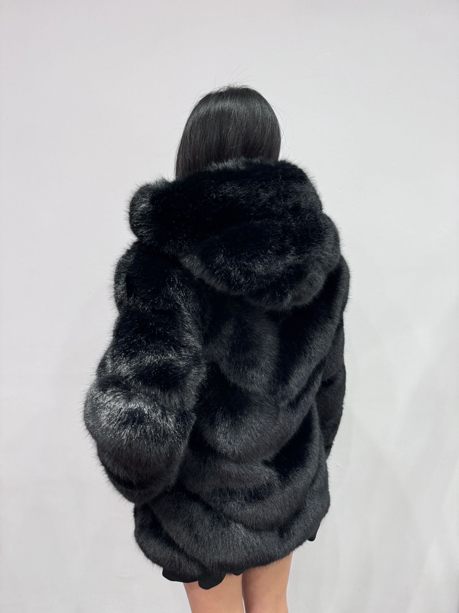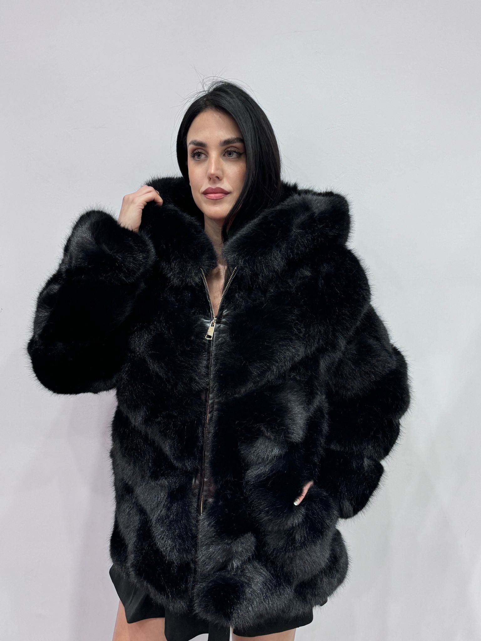 Ecofur modello visone pelo liscio morbido, chiusura con zip.