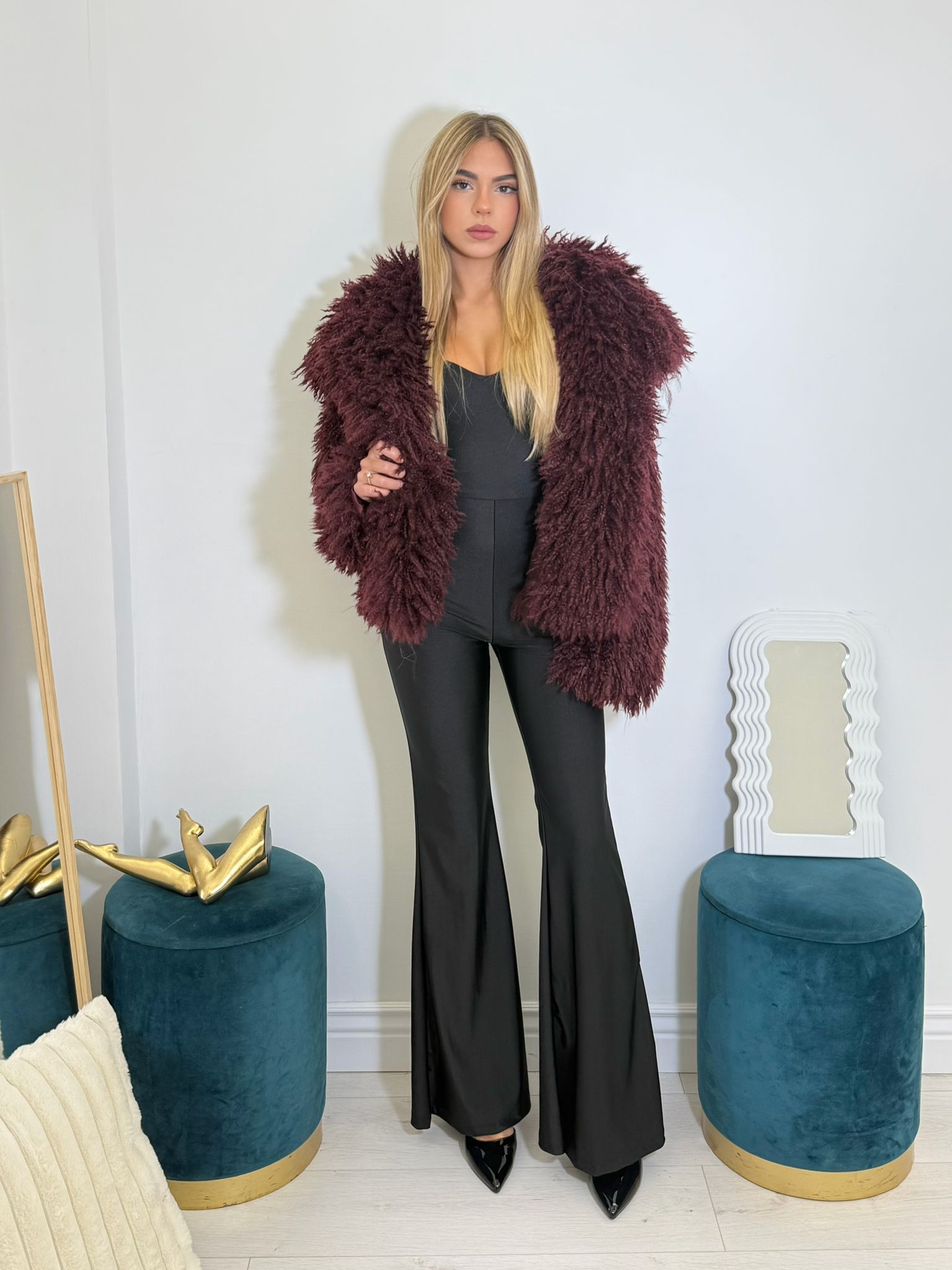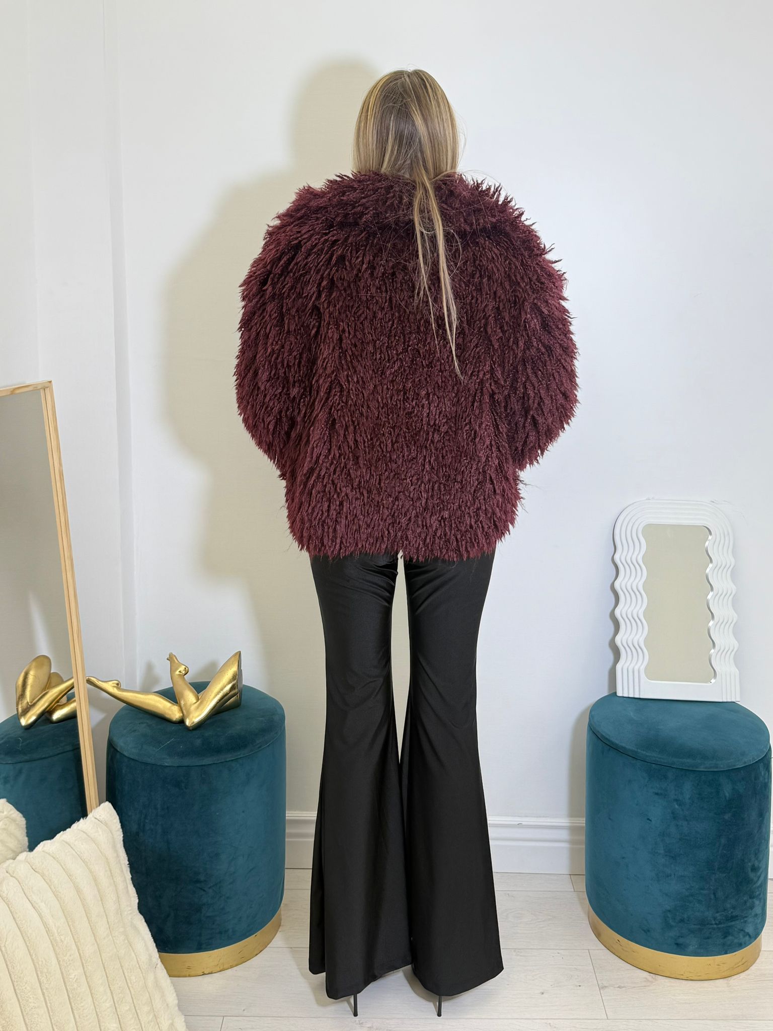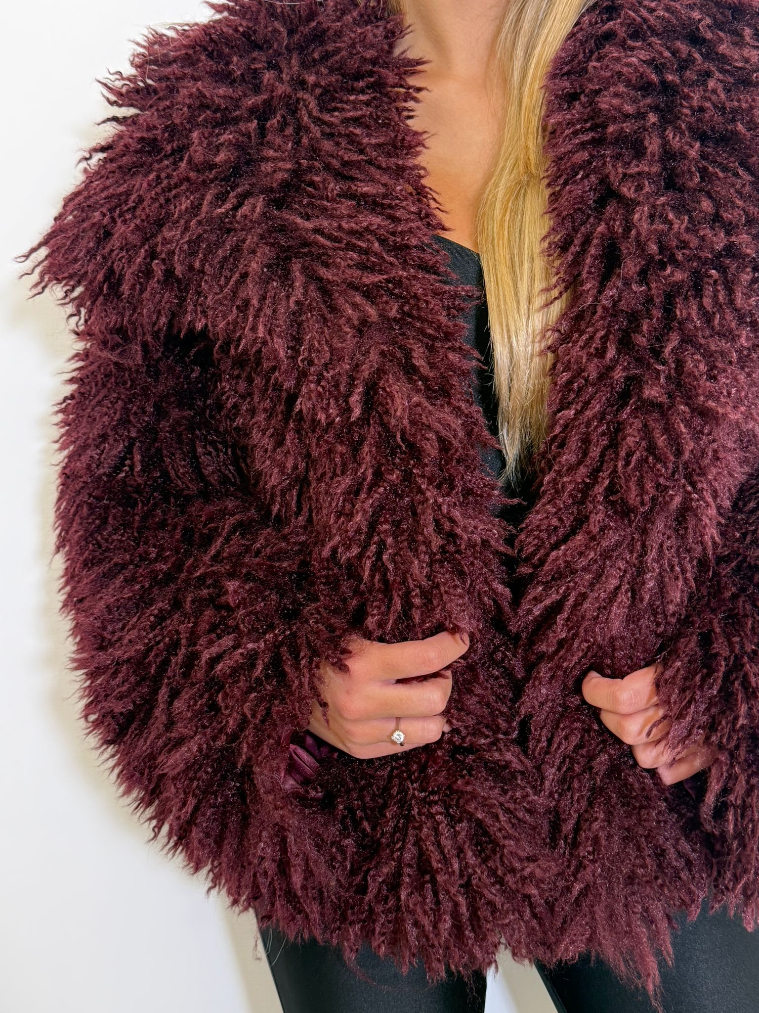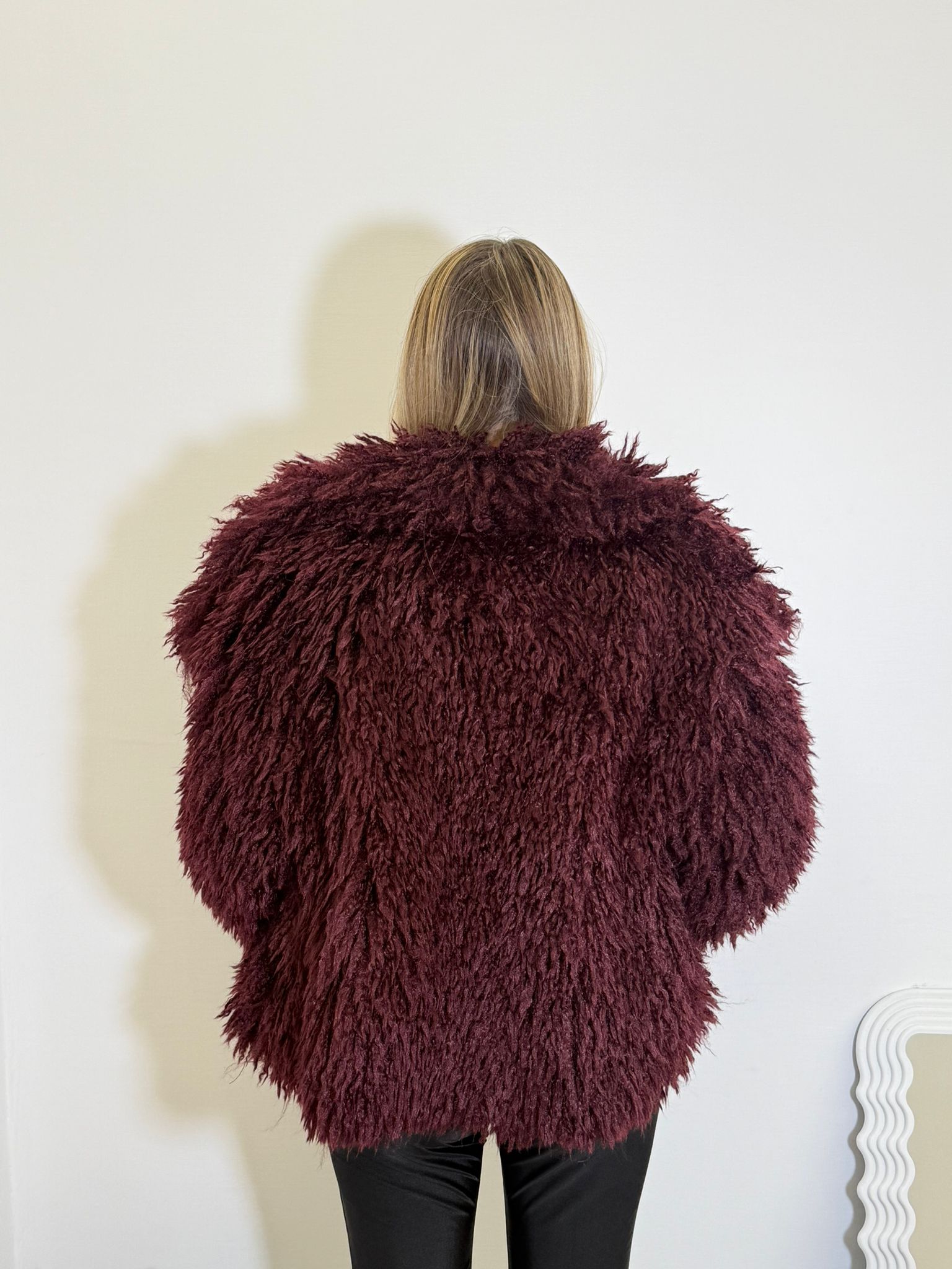 Eco- pelliccia crop a pelo lungo sintetico a maniche lunghe e doppio petto.