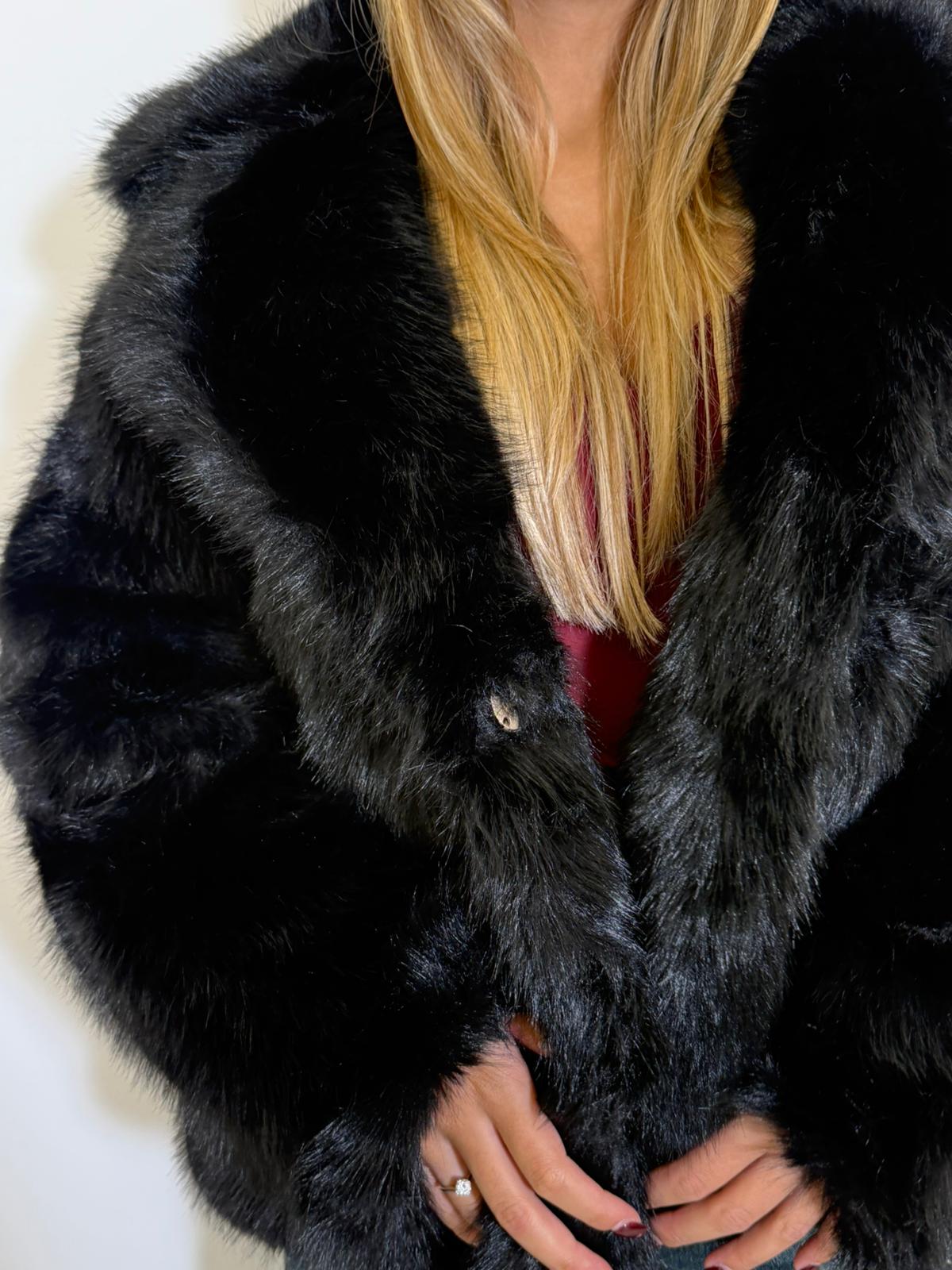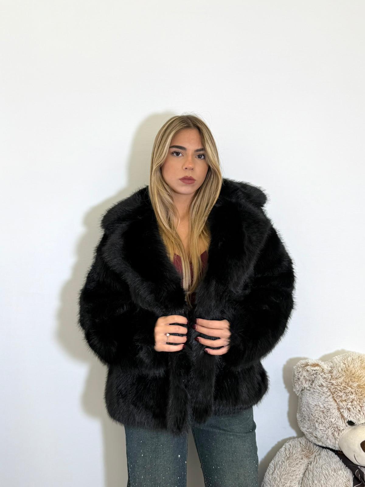 Eco- pelliccia crop a pelo corto sintetico a maniche lunghe.