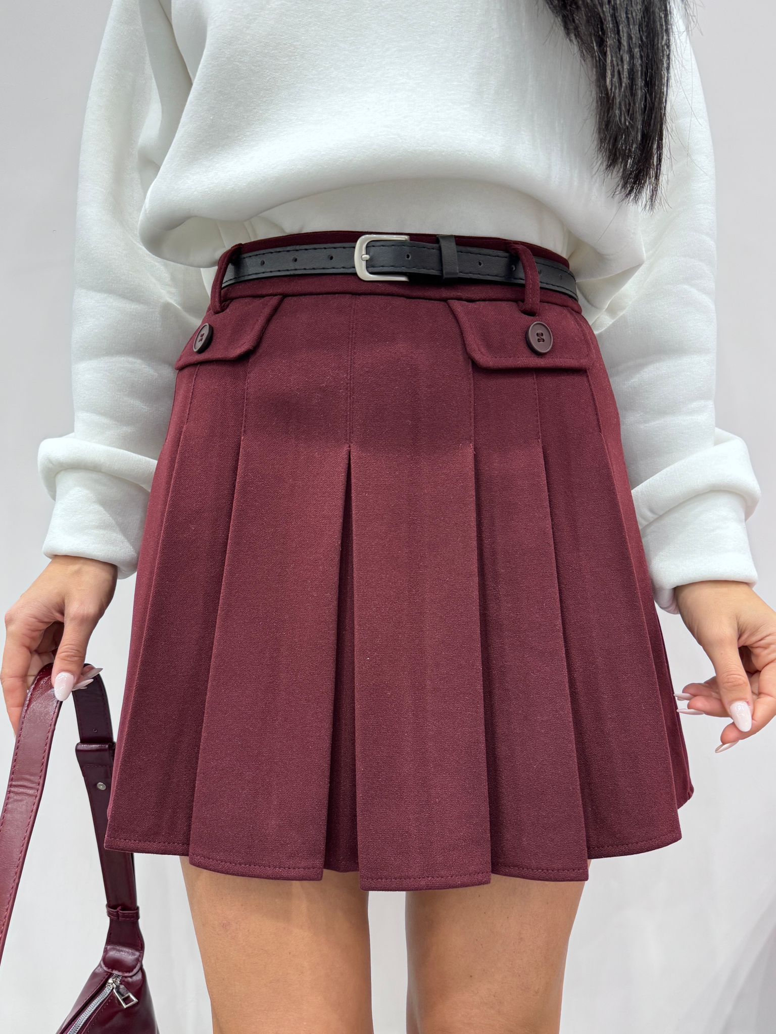 Gonna top qualità in lana rasata con pieghe, cintura compresa.