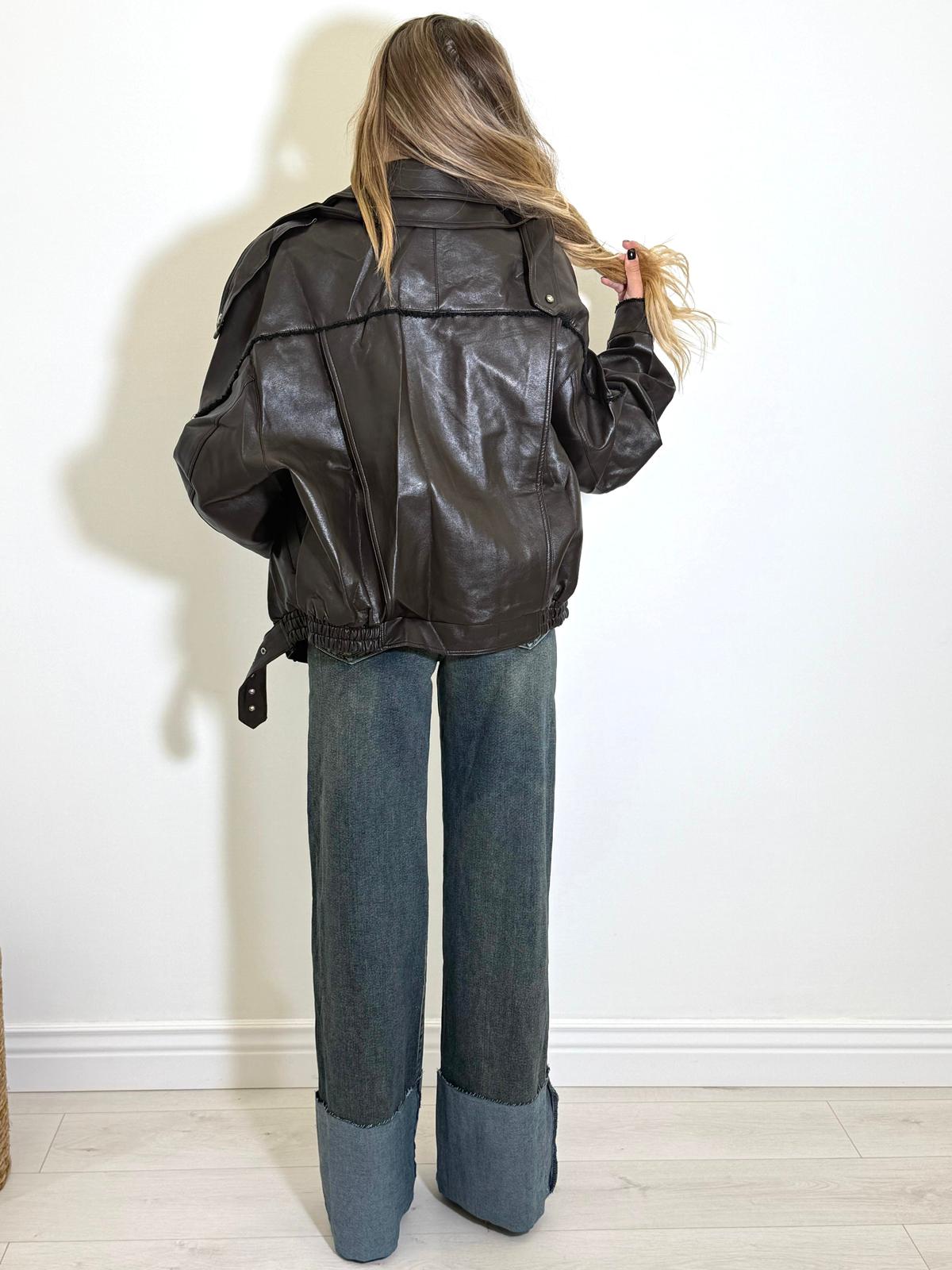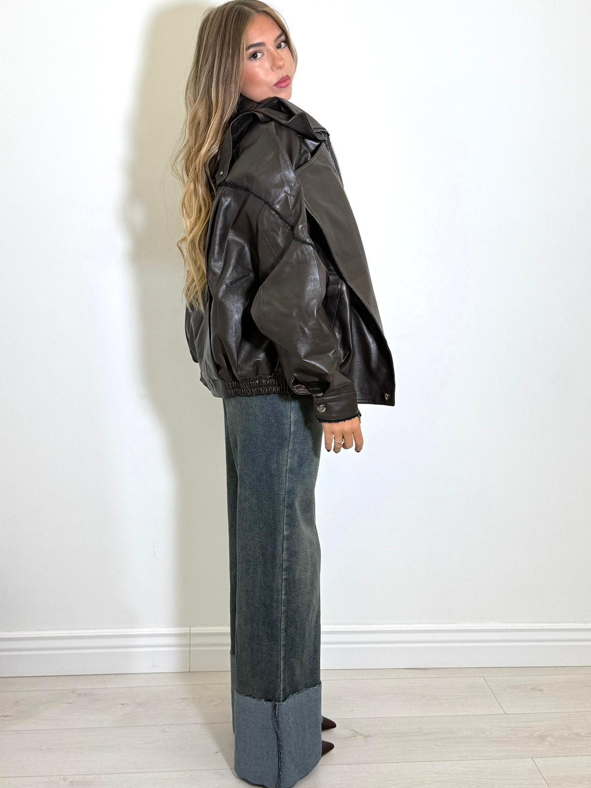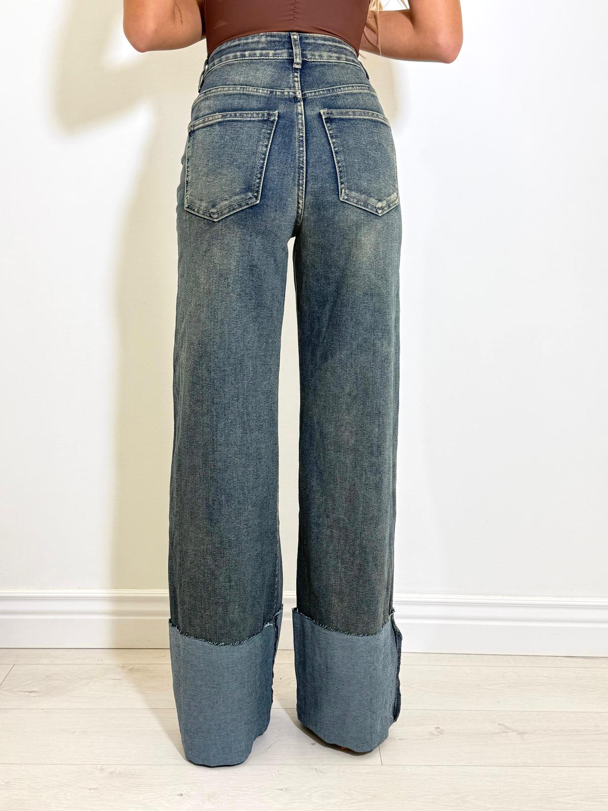 Jeans tela fissa con gamba ampia, con maxi piegone