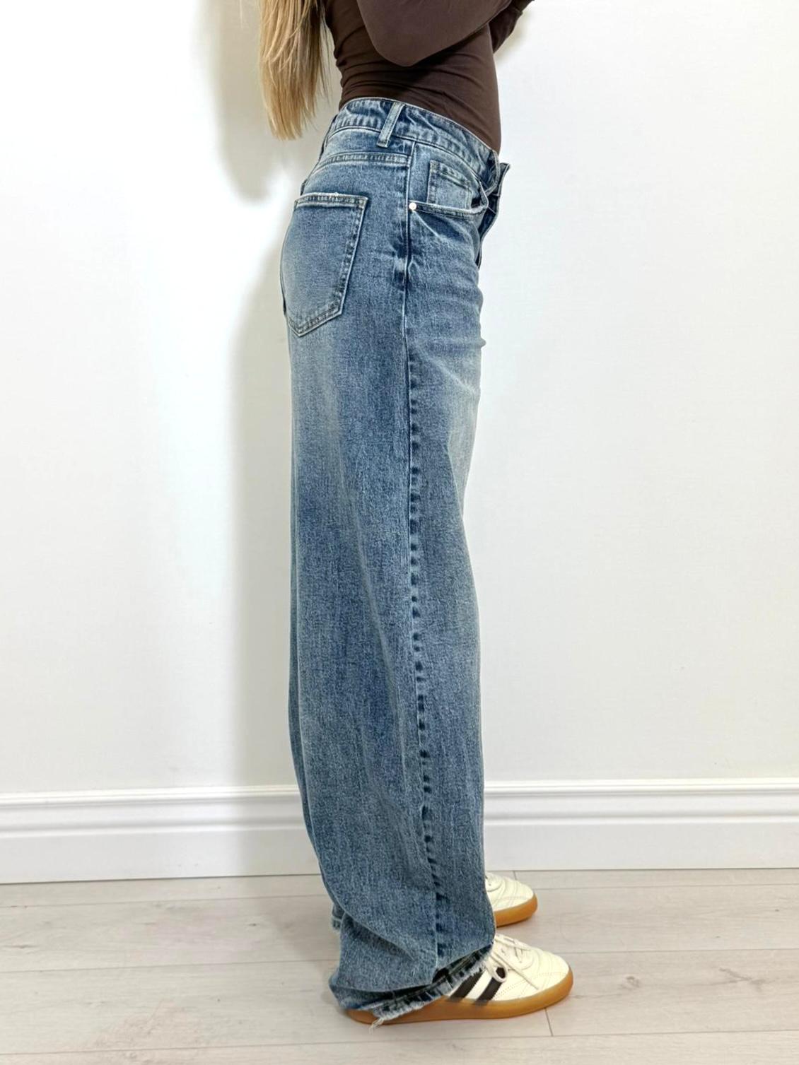 jeans tela fissa, denim chiaro, modello balloon.