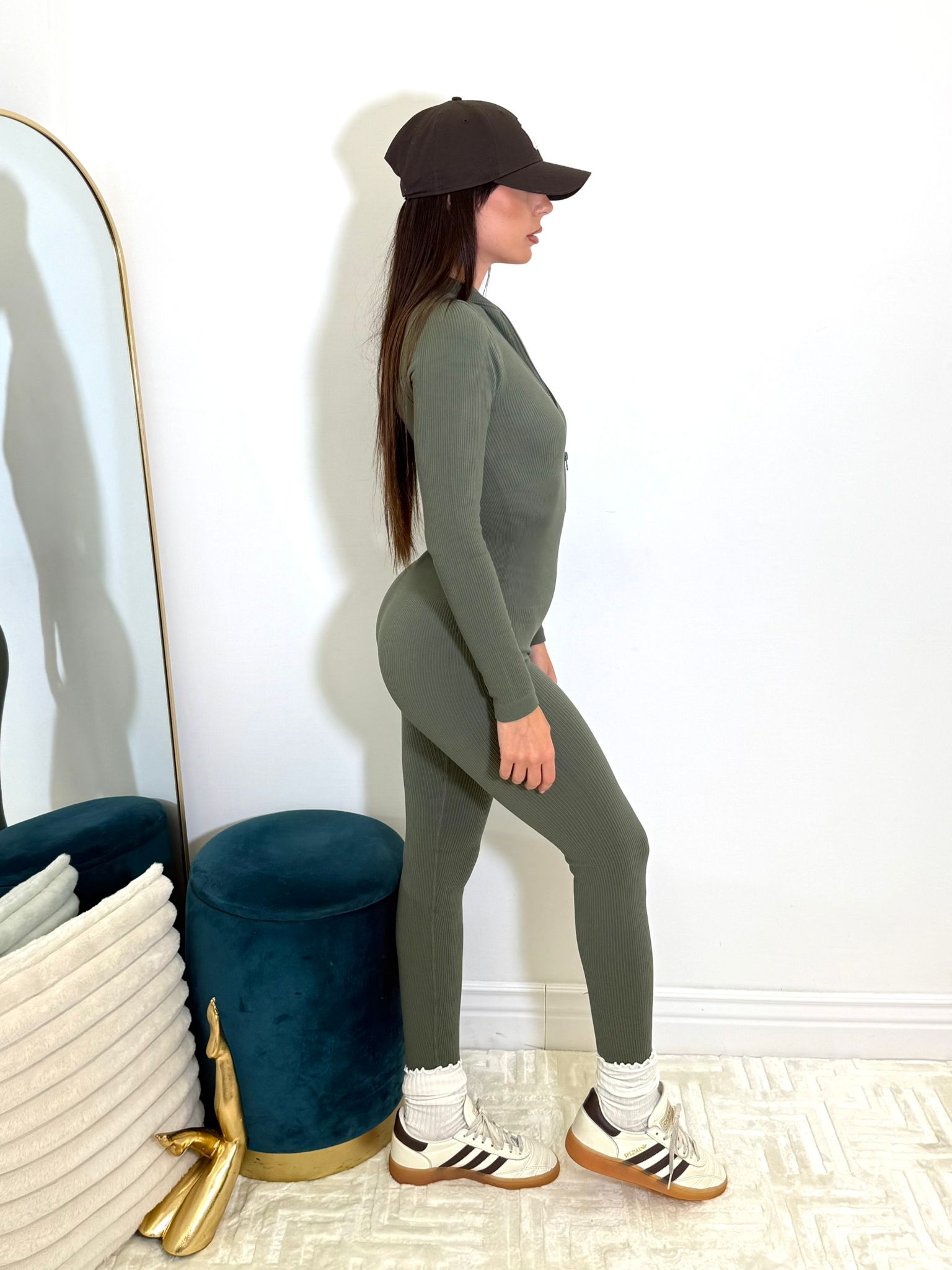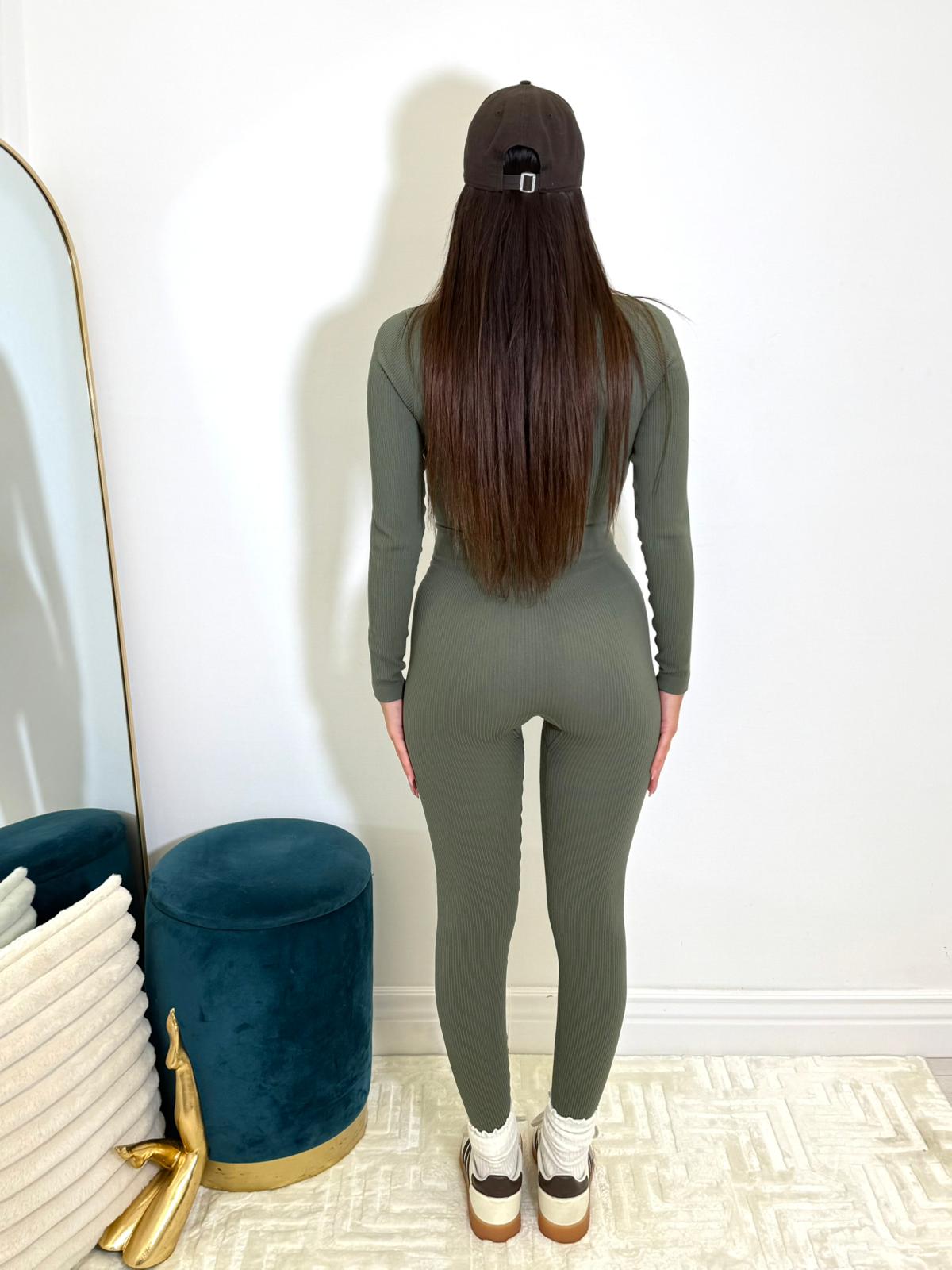 Jumpsuit a costine con chiusura zip.
