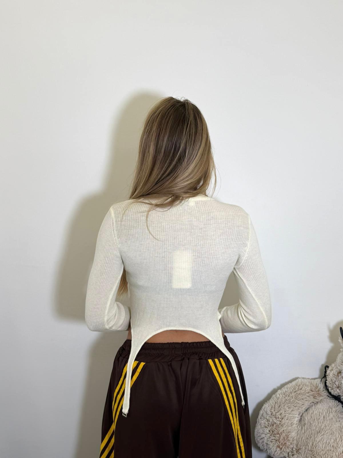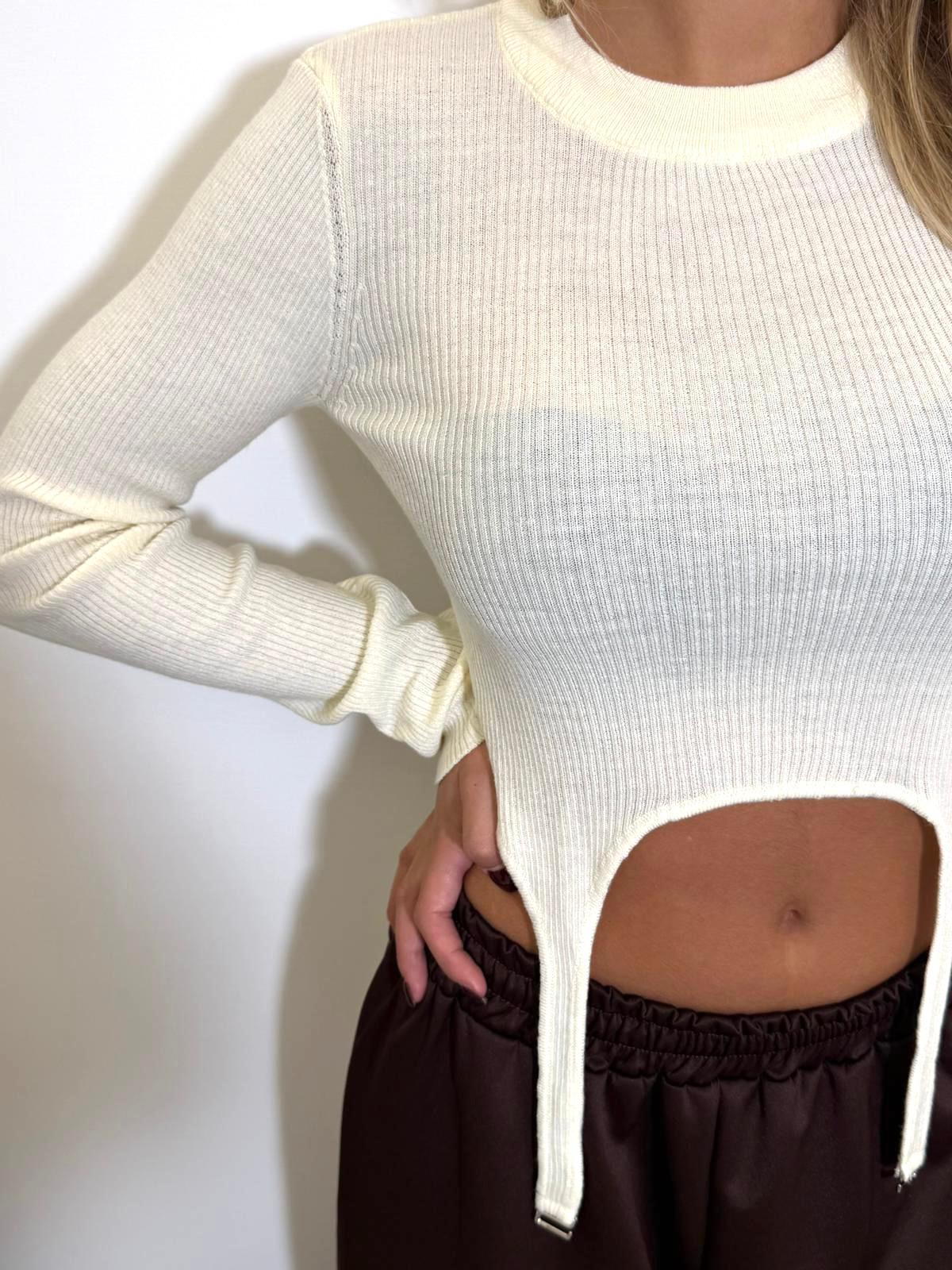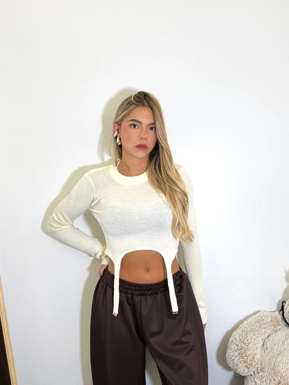 Maglia in simil cotone velato a maniche lunghe con ghette.