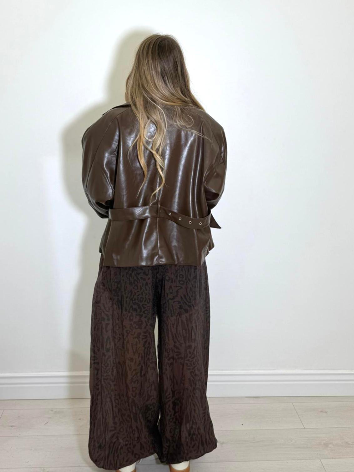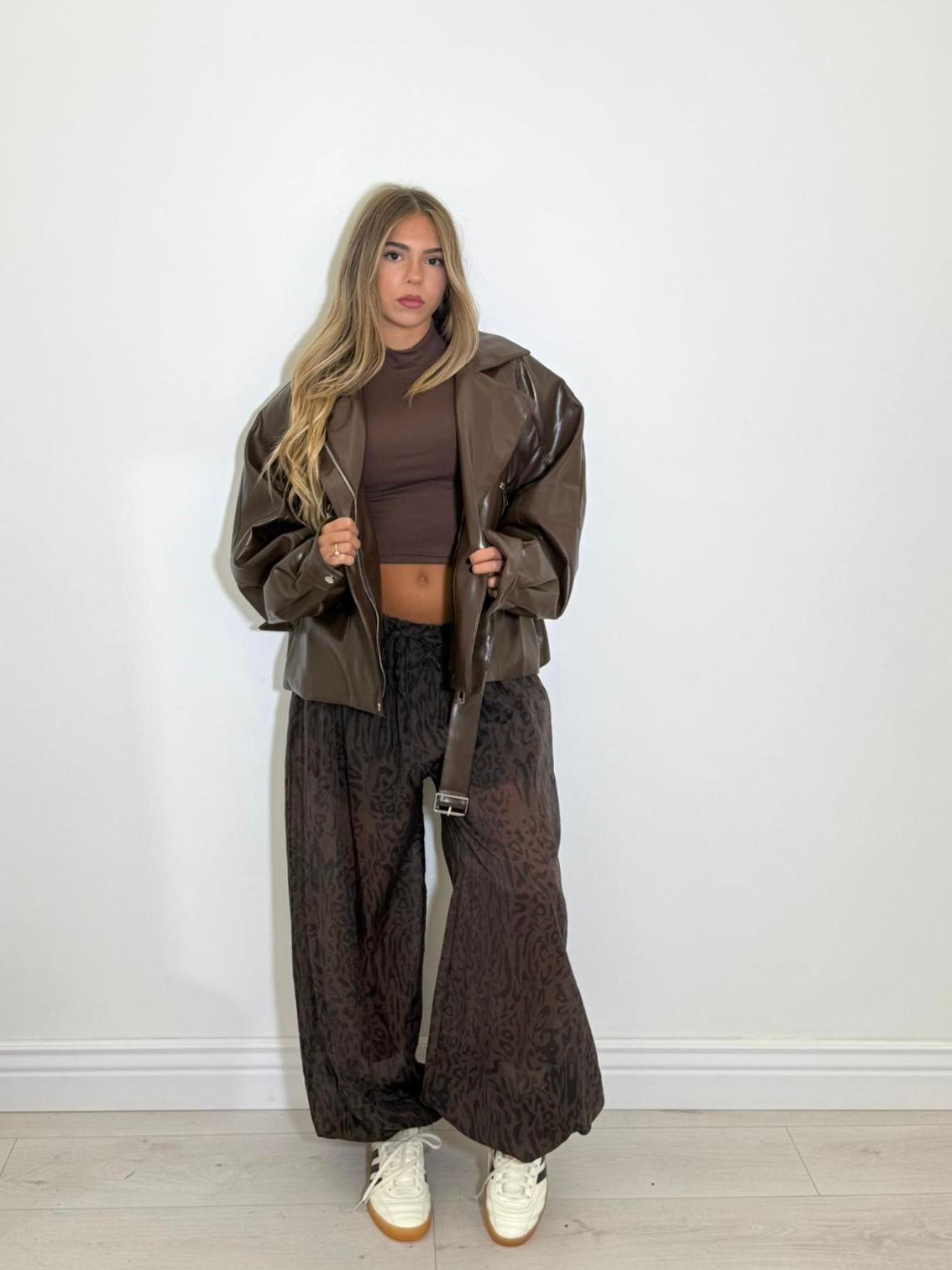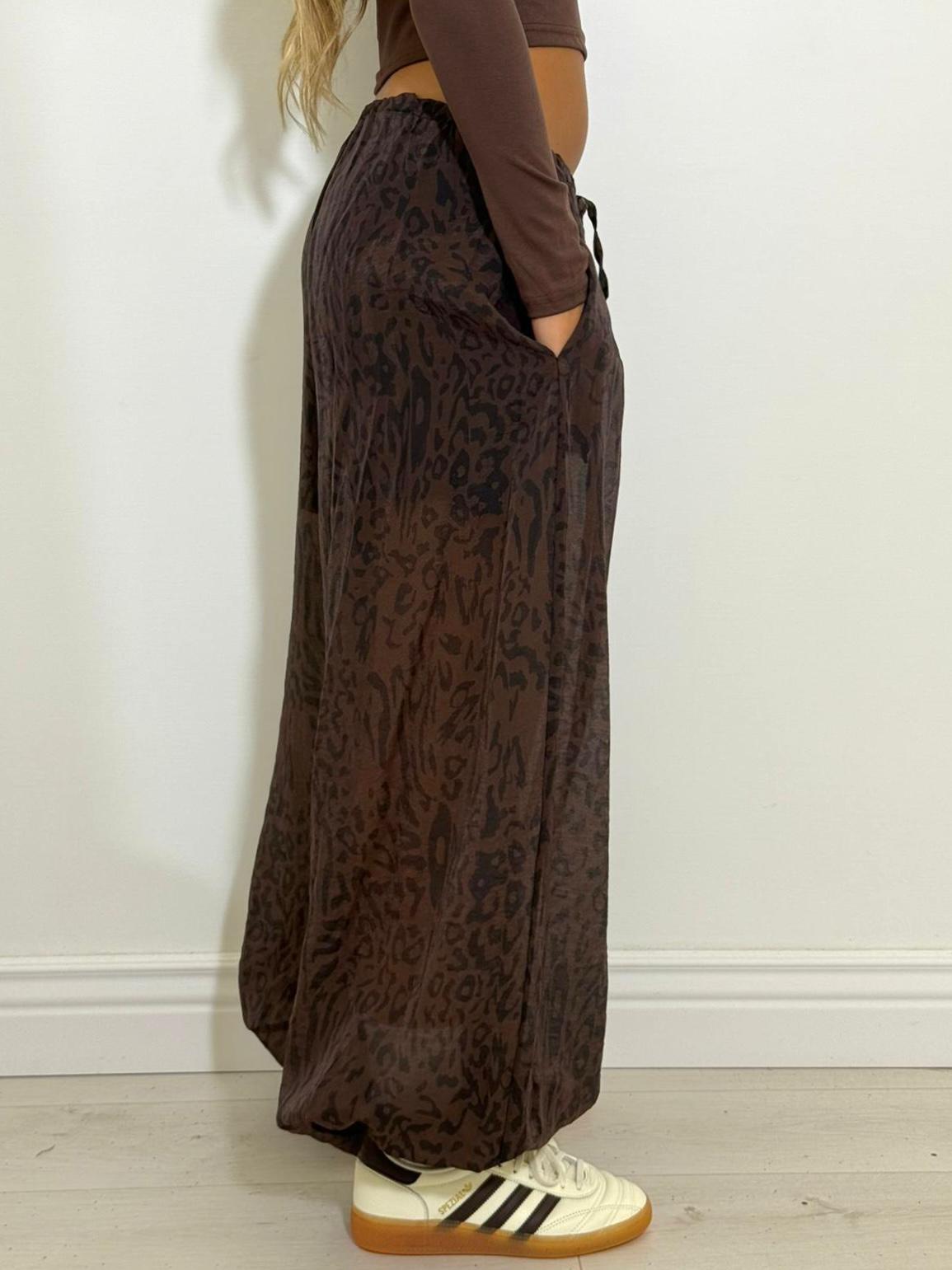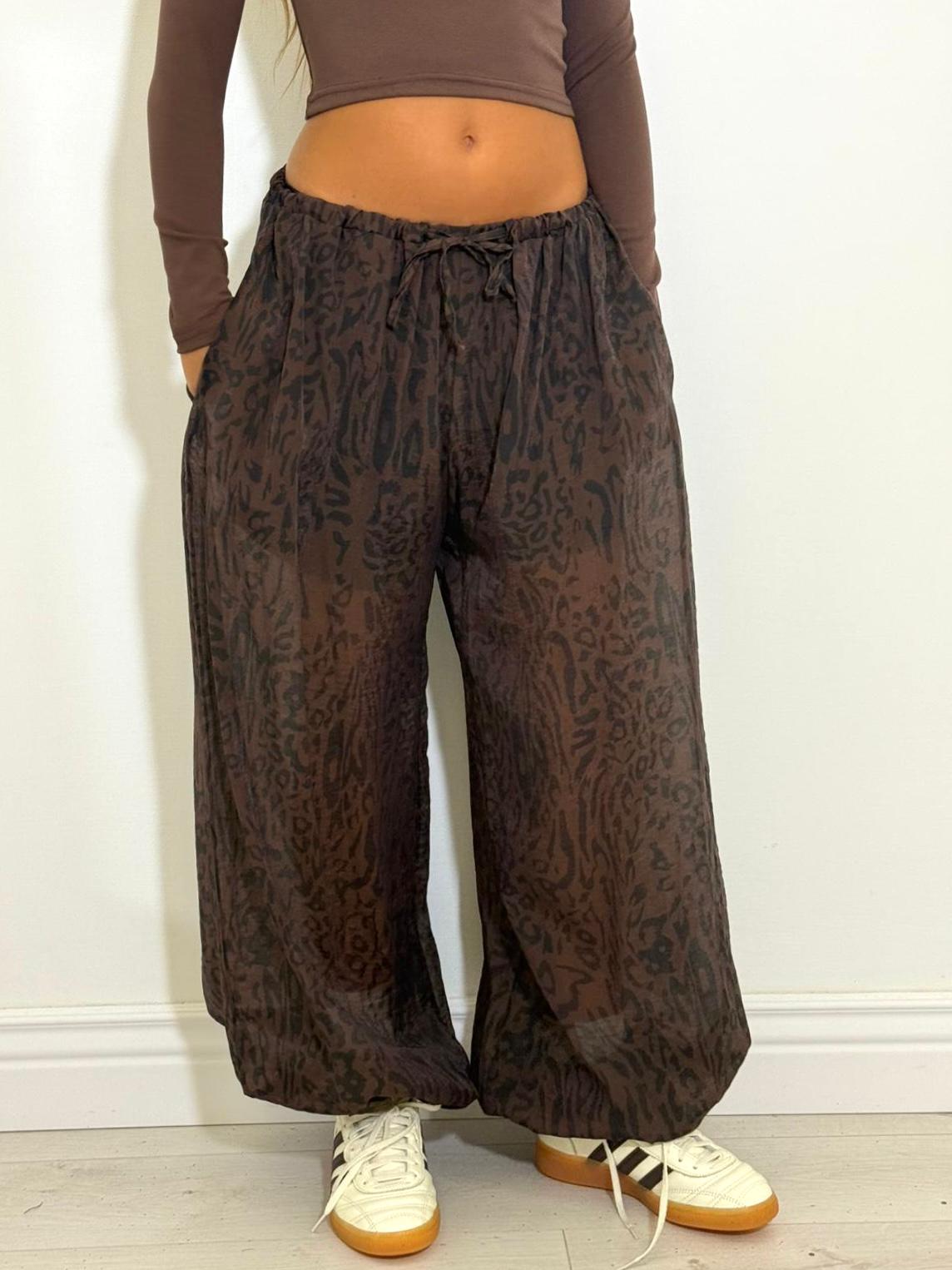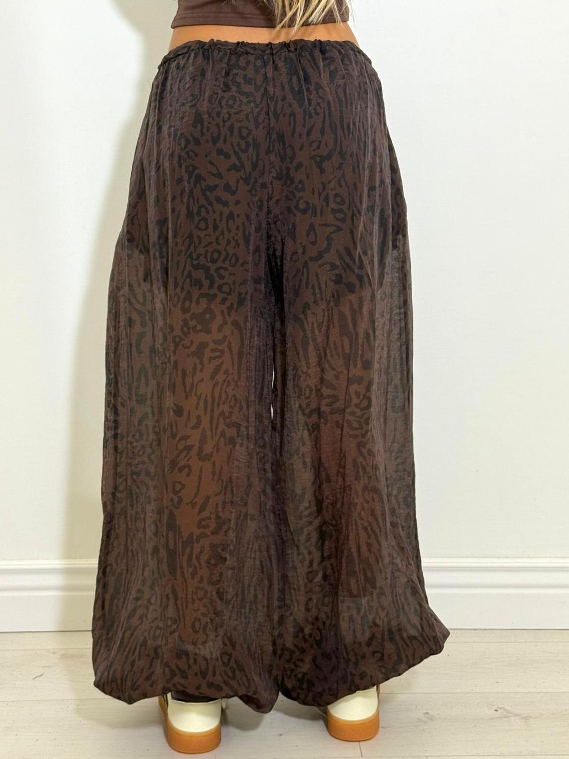Pantalone velato con coulotte incorporata con elastico in vita e laccio regolabile.