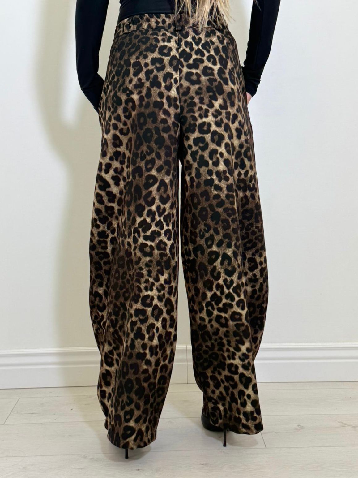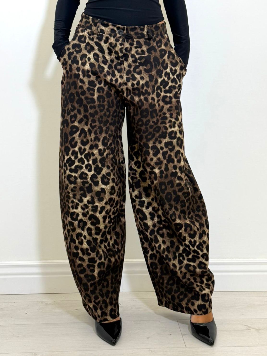 Pantalone modello balloon in cotone satin, con bottone in vita.