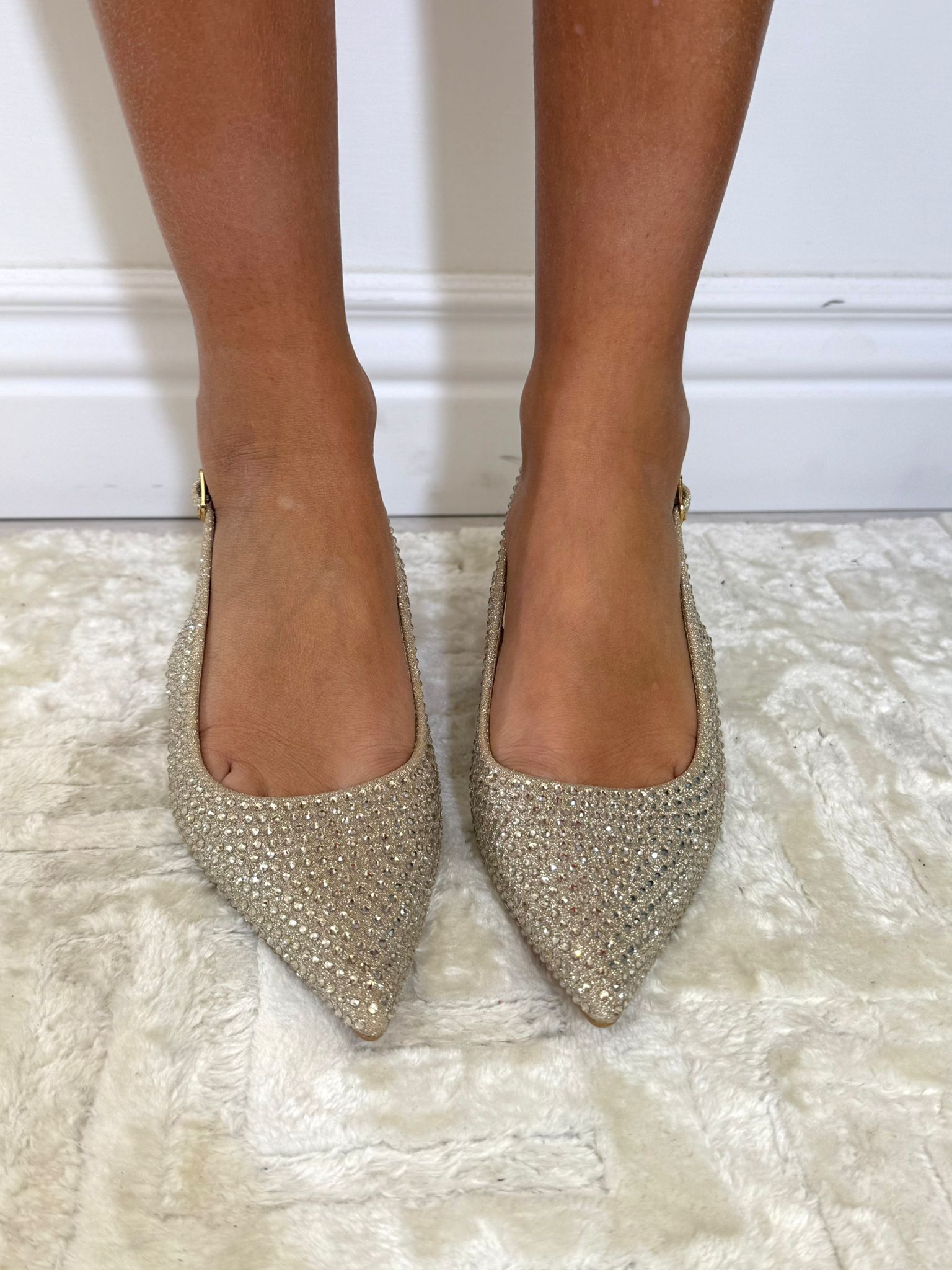 Slingback con brillanti, cinturino regolabile tacco 4cm