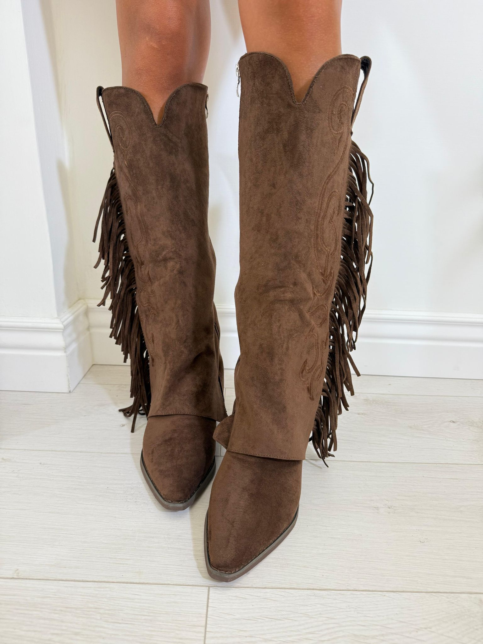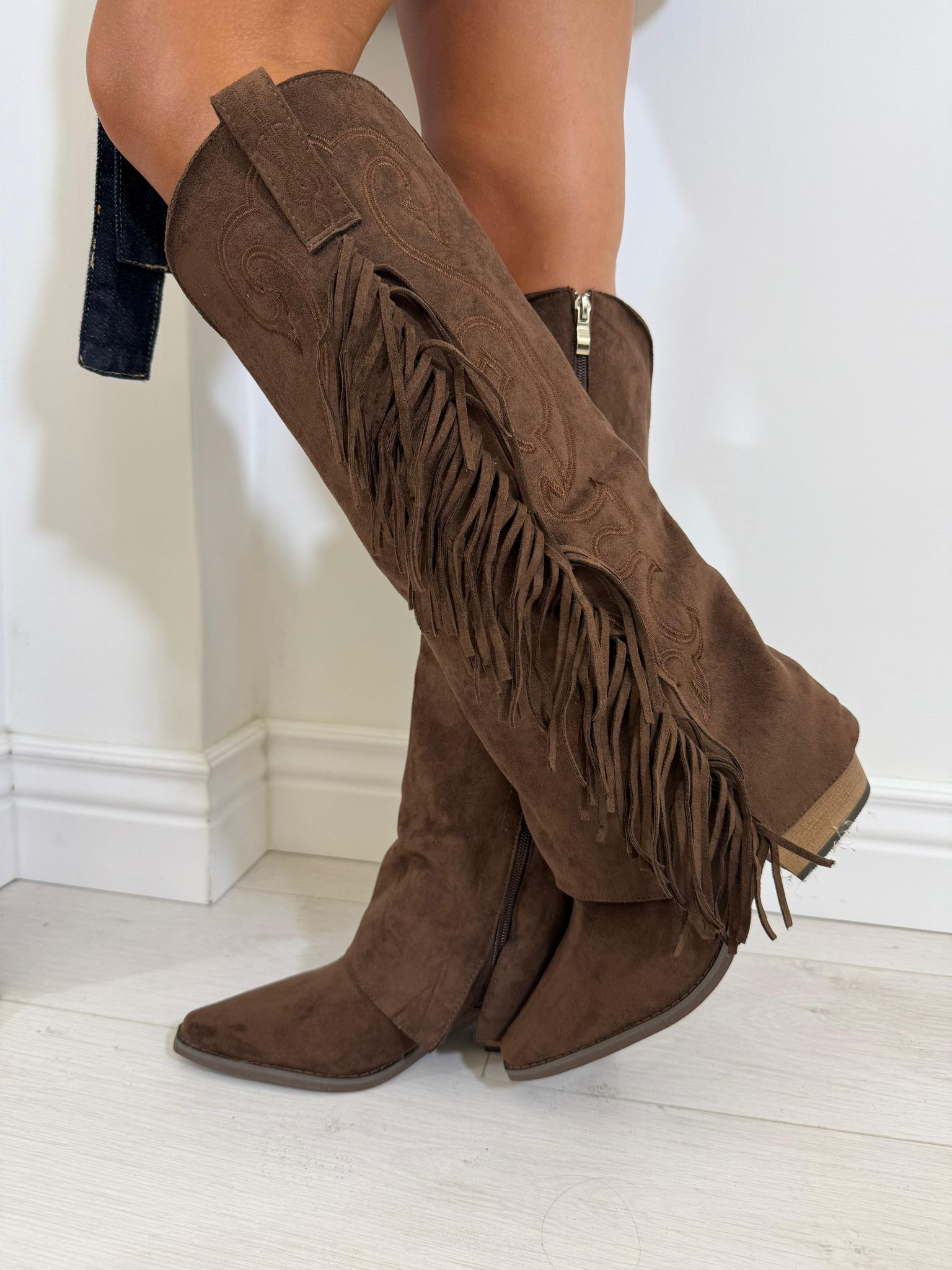 stivale in camoscio con frange tacco cm 5