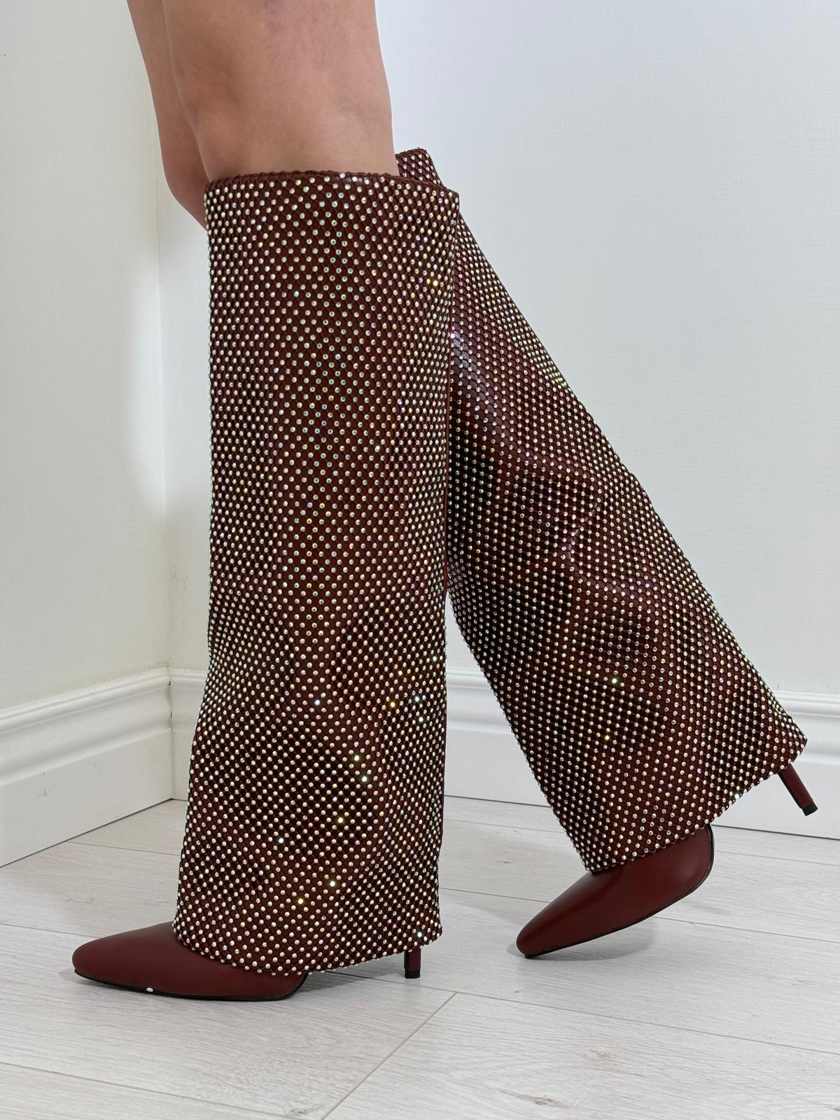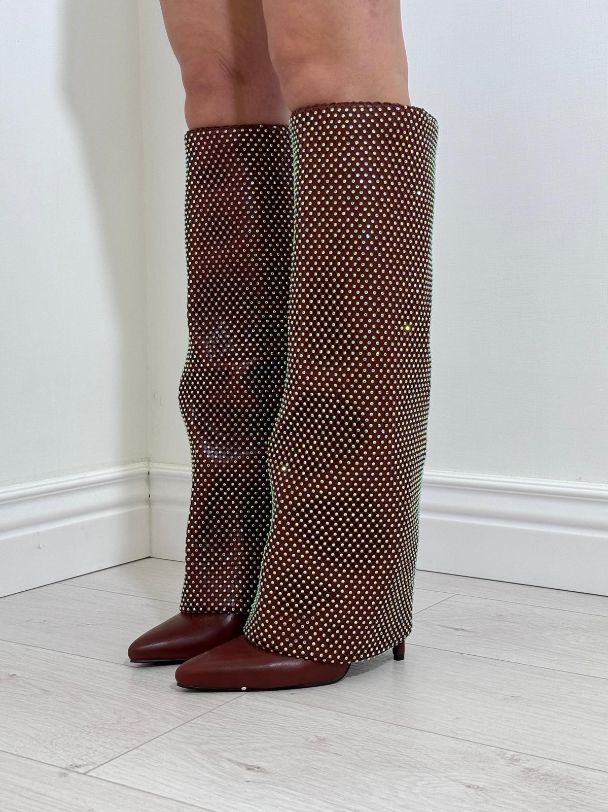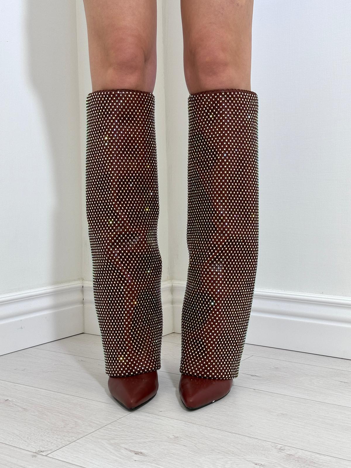 Stivali in ecopelle con brillantini, tacco 10cm.