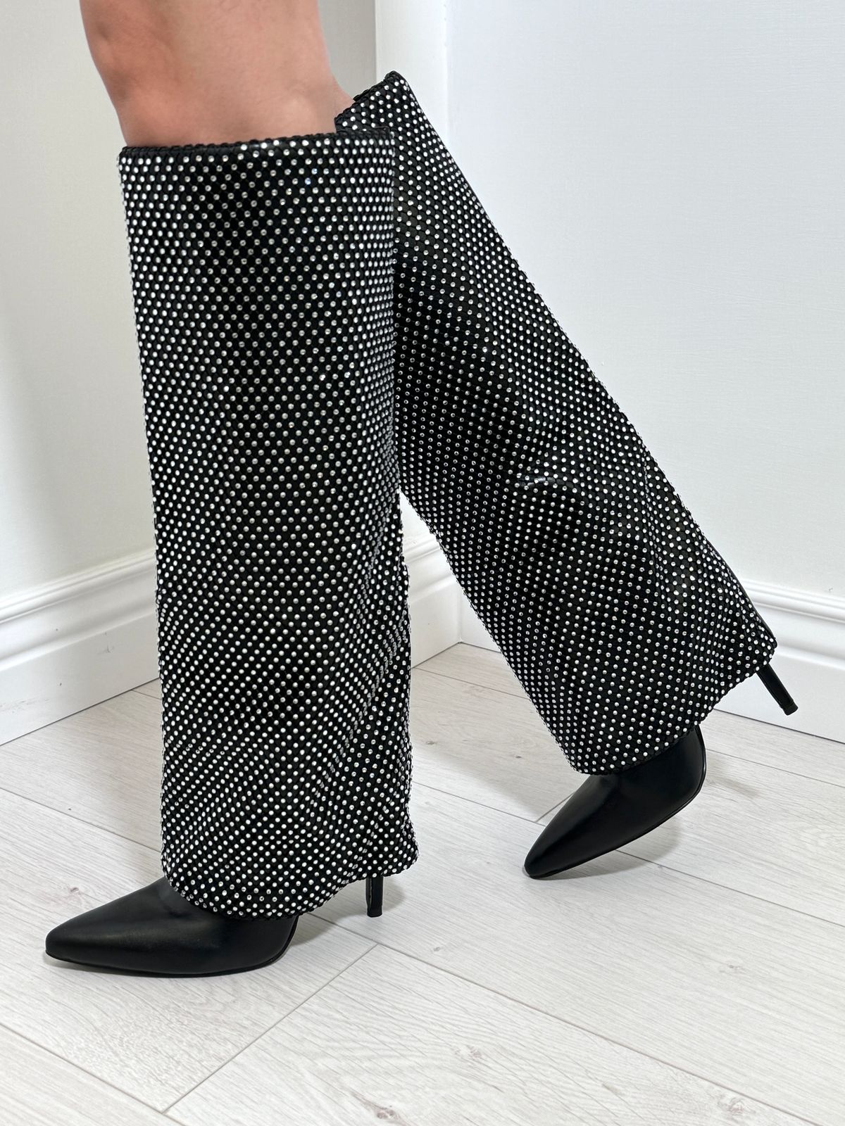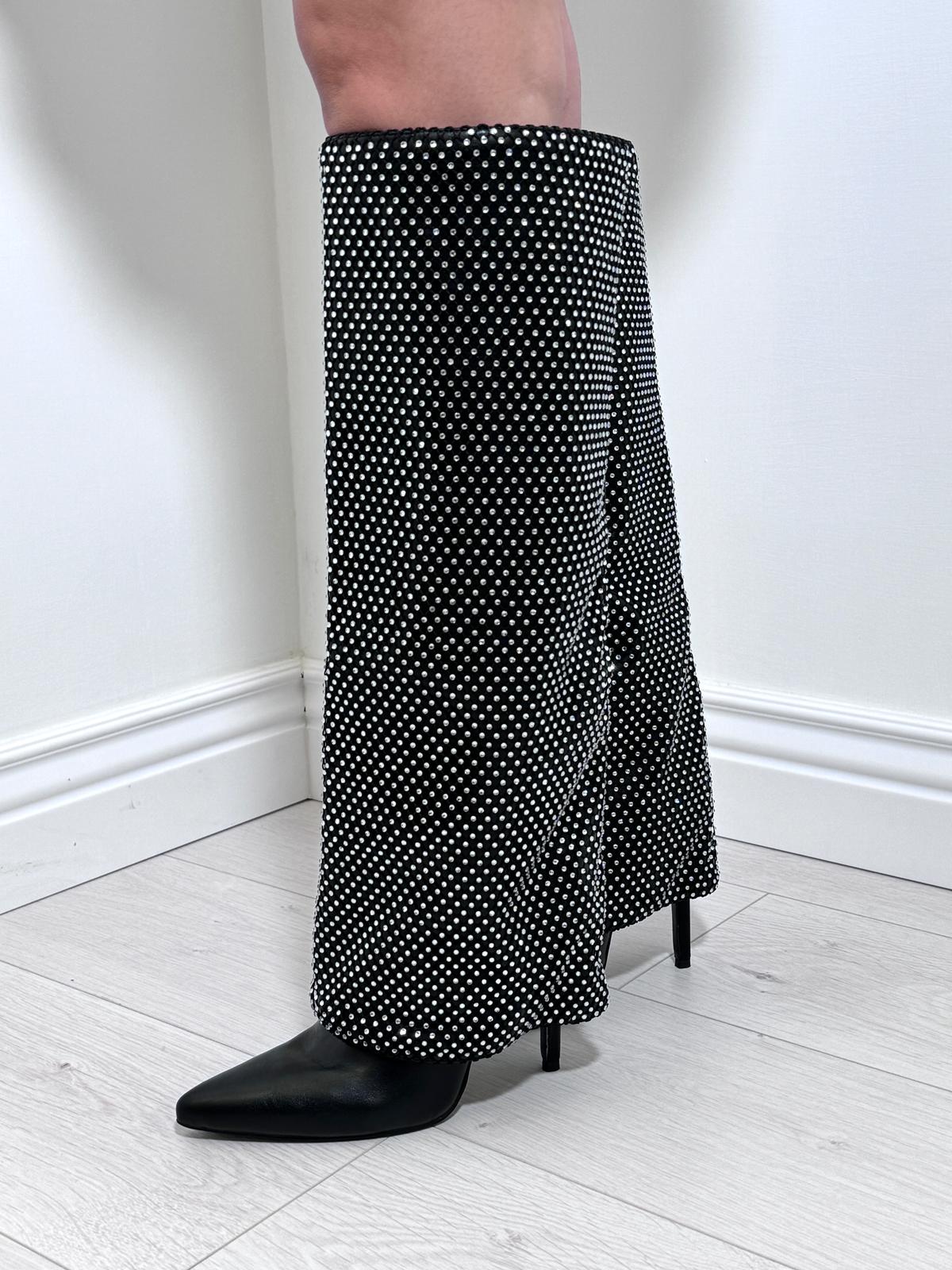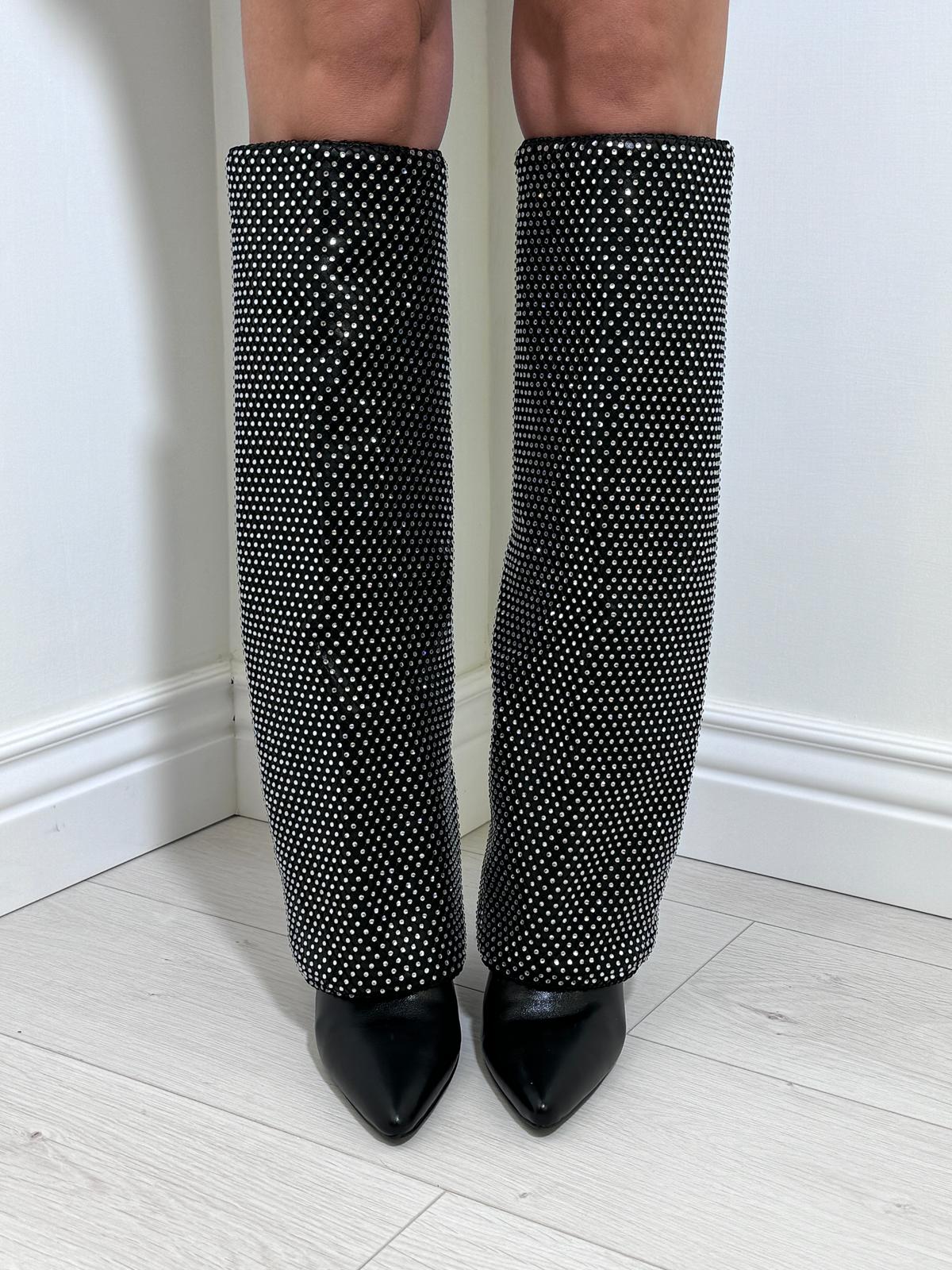 Stivali in ecopelle con brillantini, tacco 10cm.